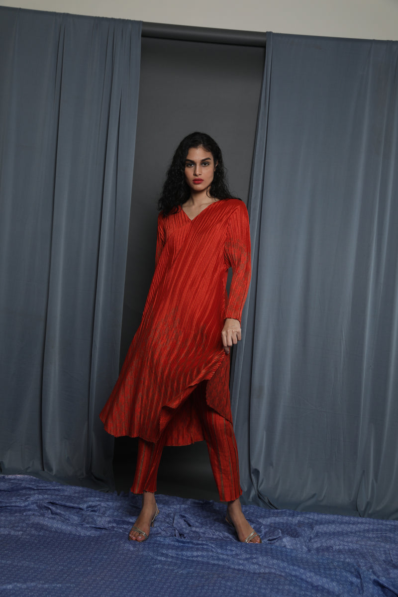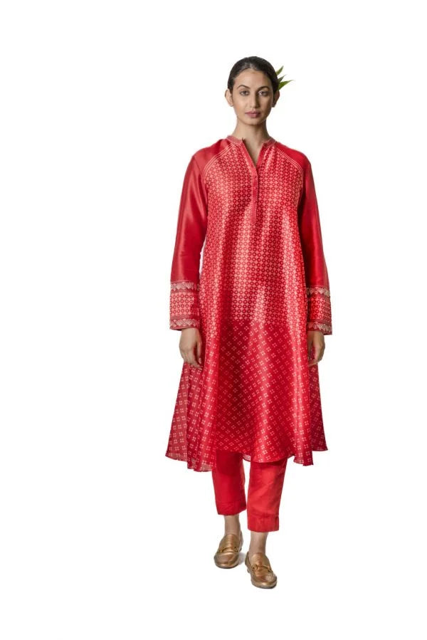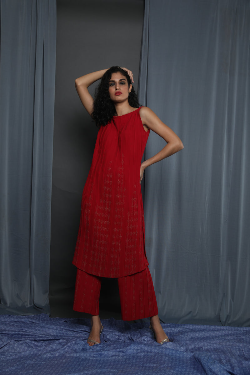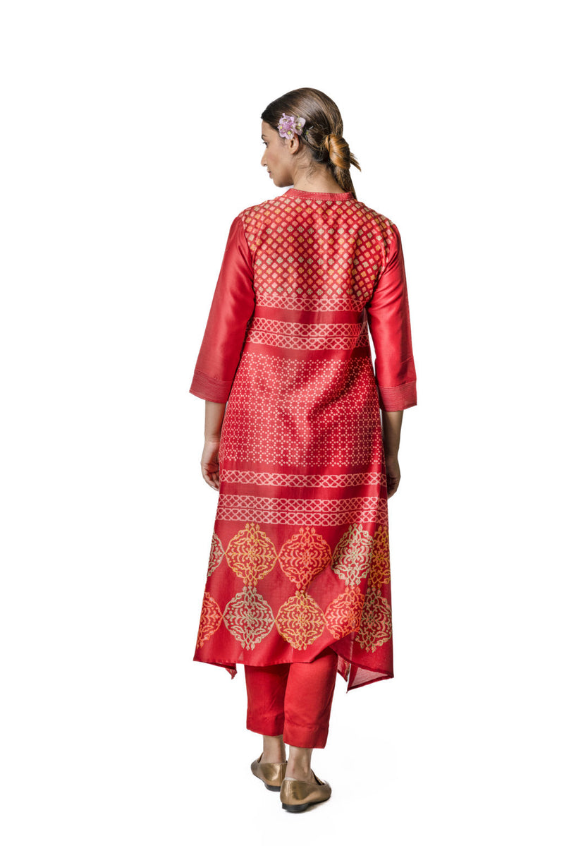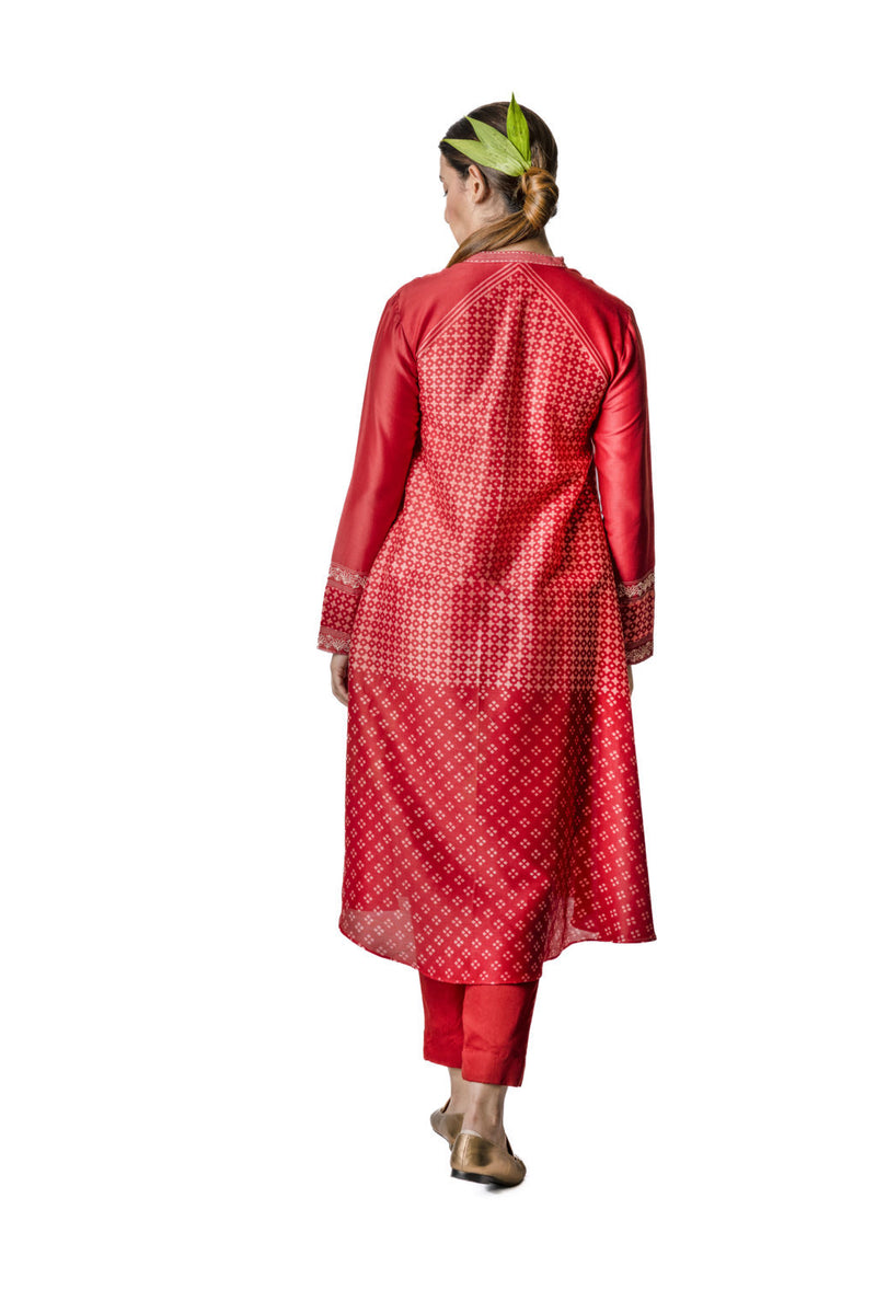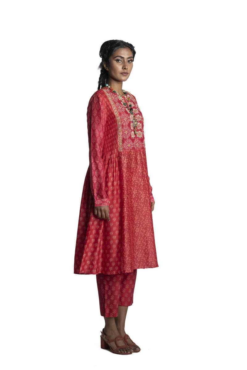 Red Modal Bandhej Embroidered Kaftan Tunic