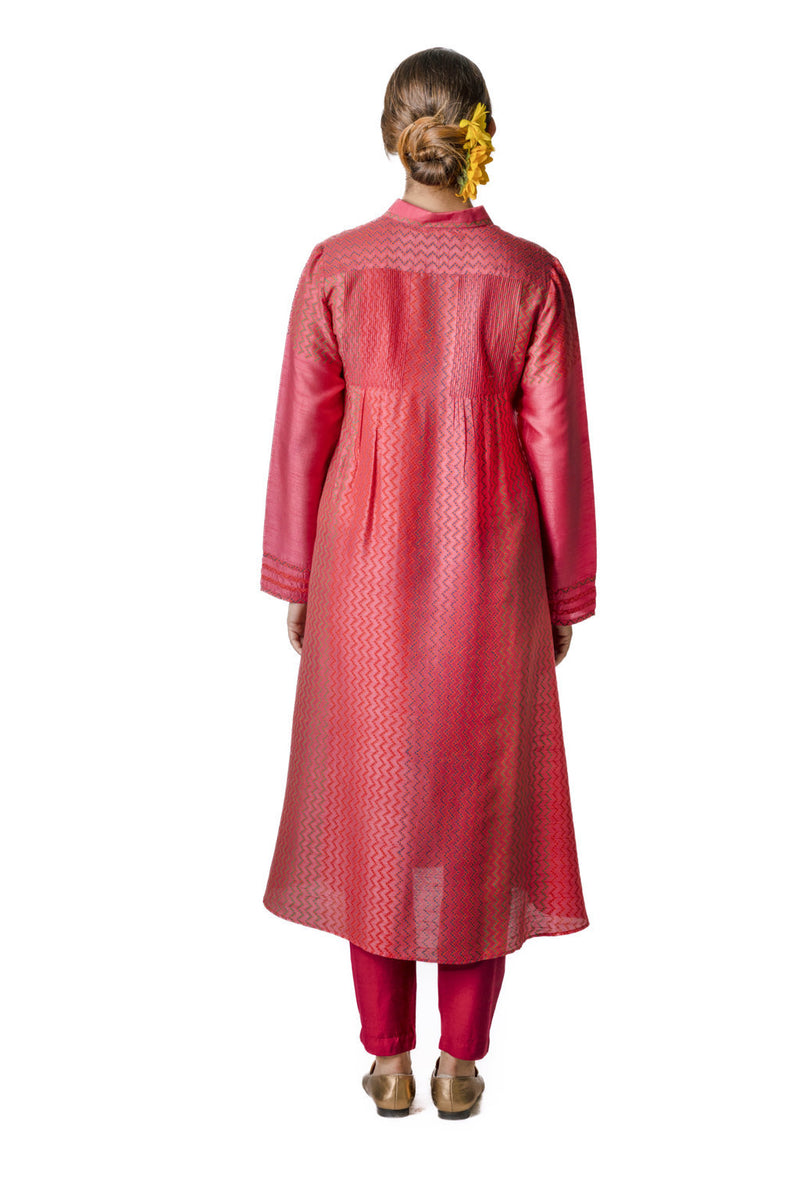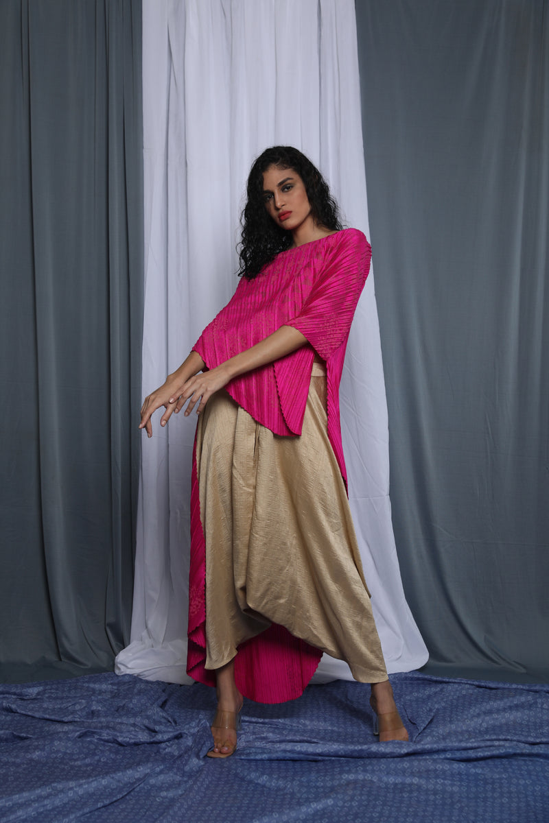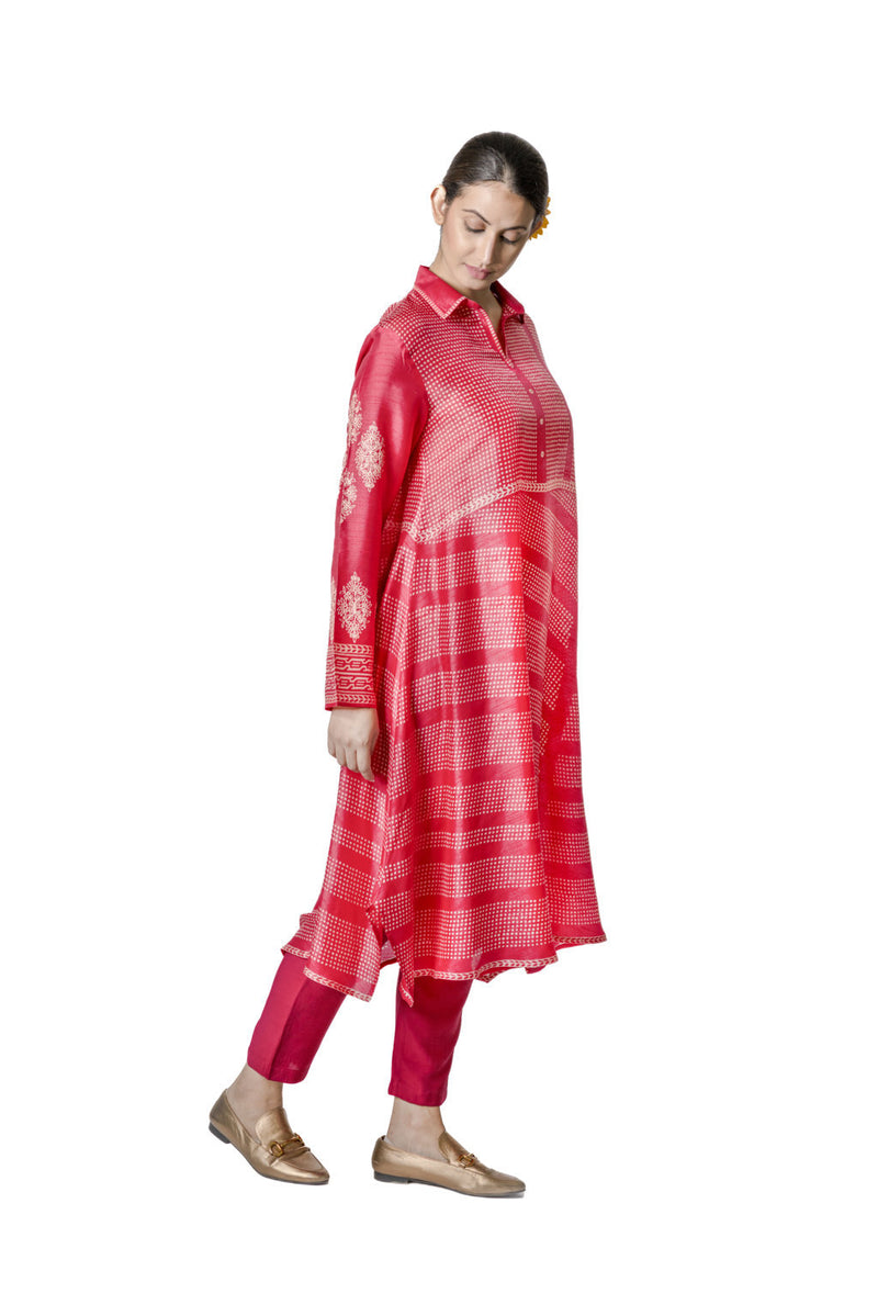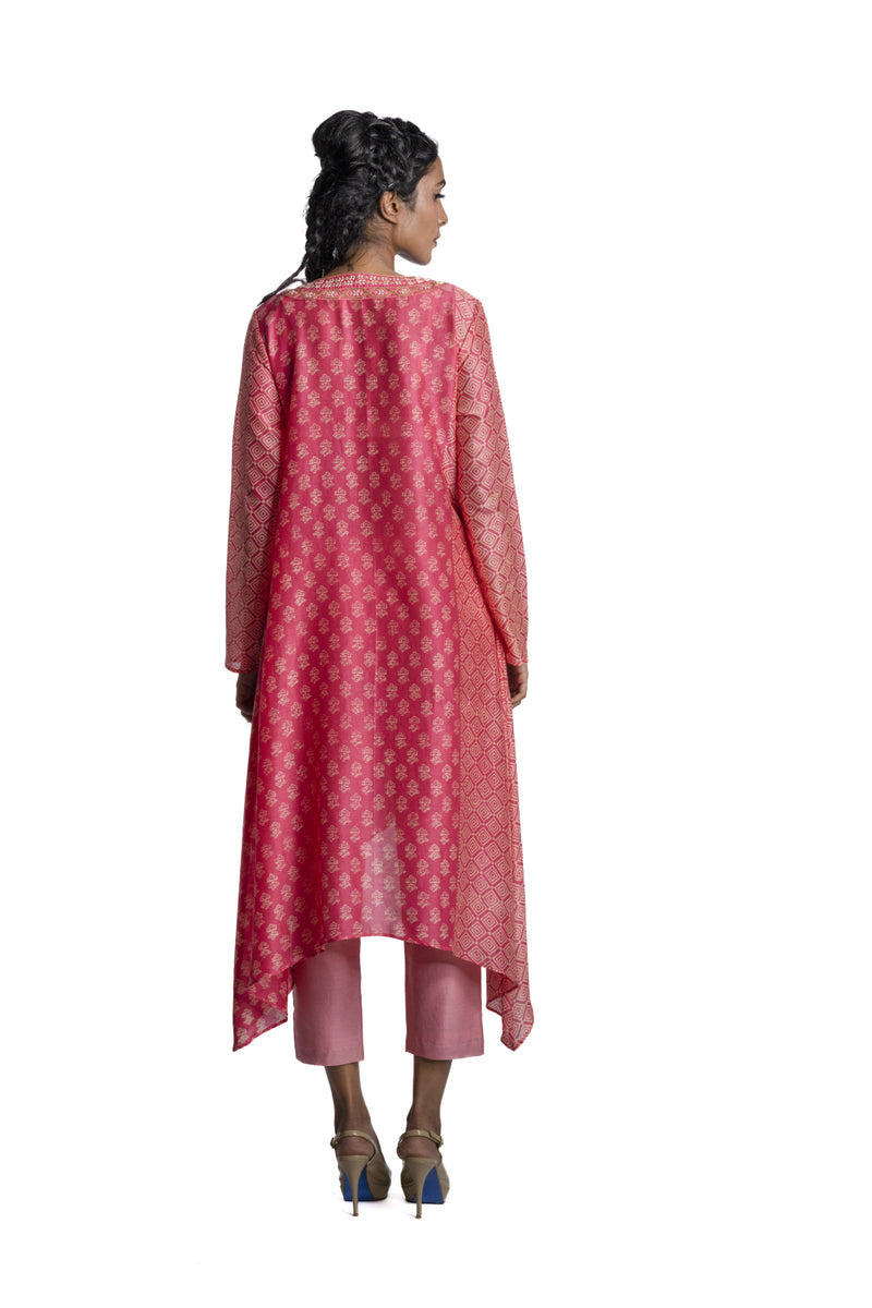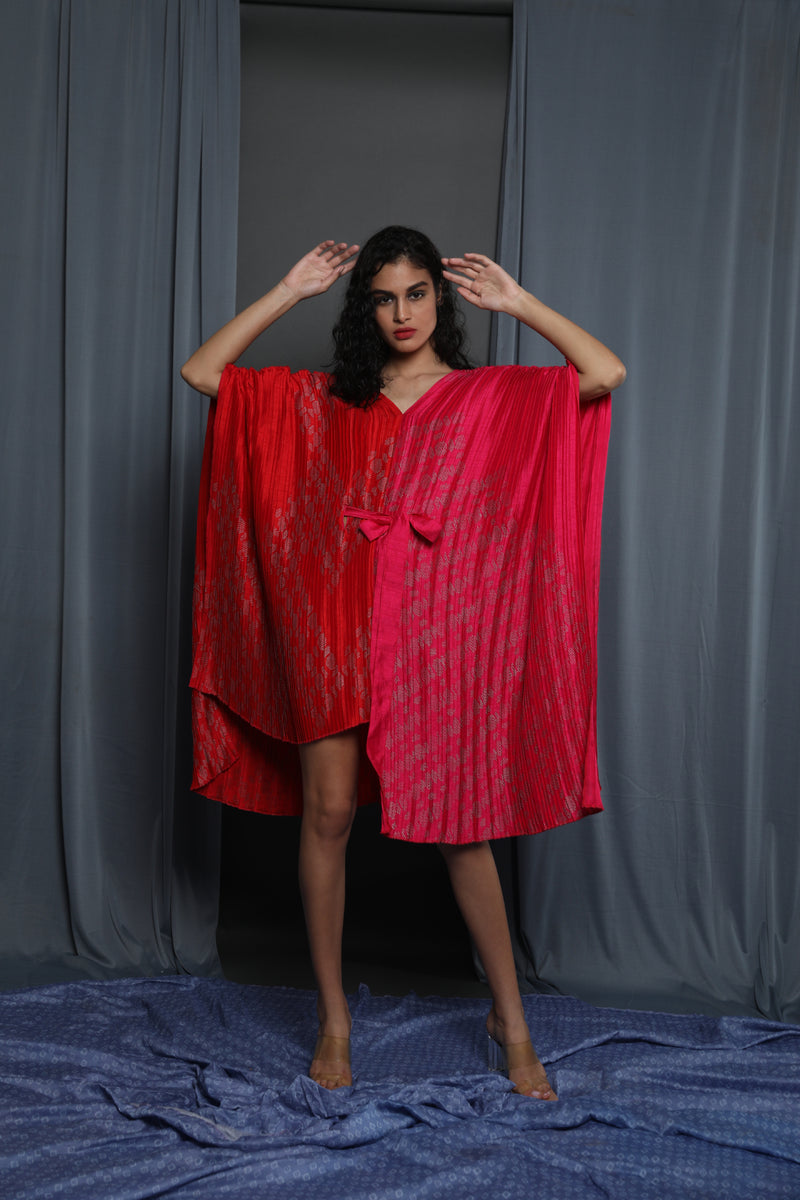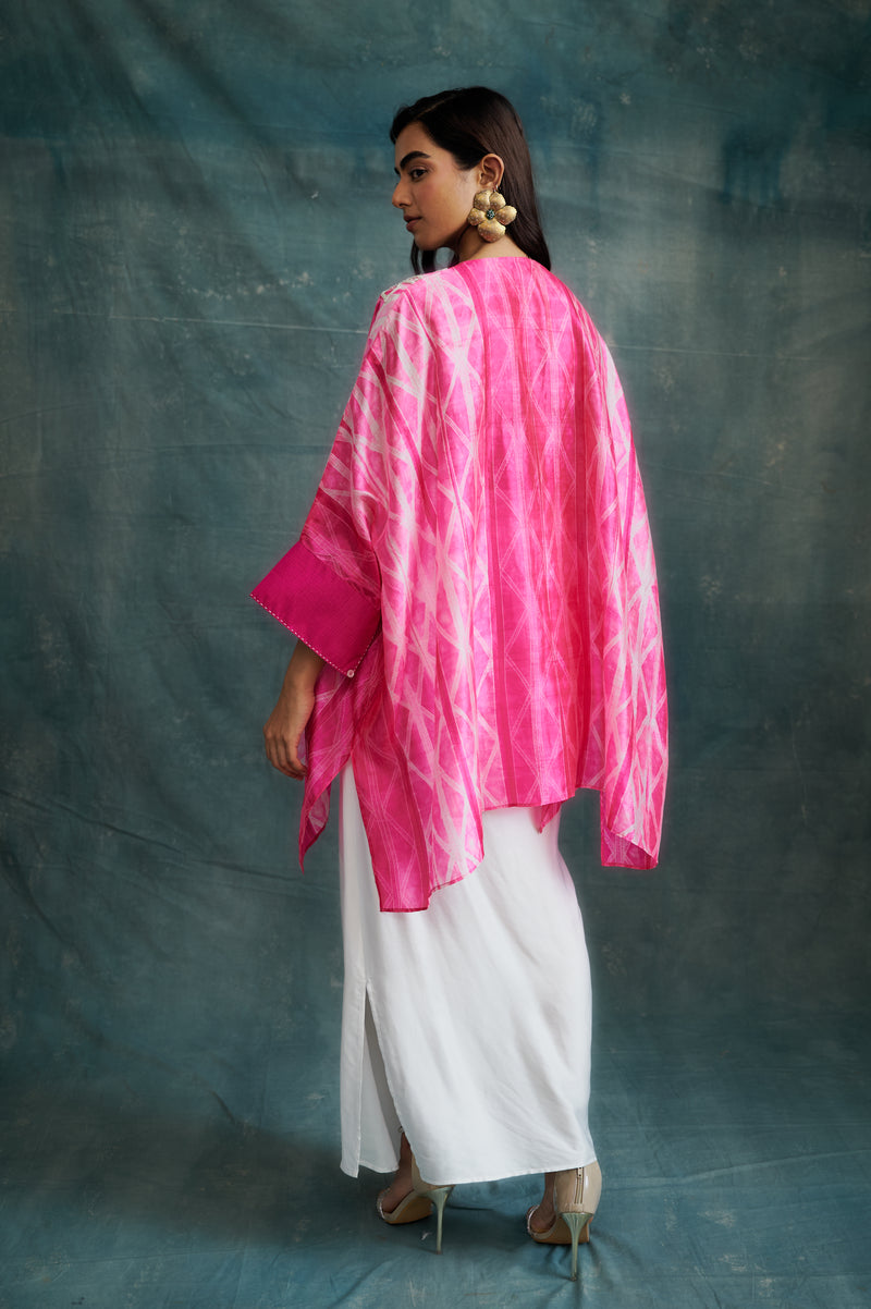 Hot Pink Tussar Hand Embroidered & Tie-Dyed Kaftan Tunic