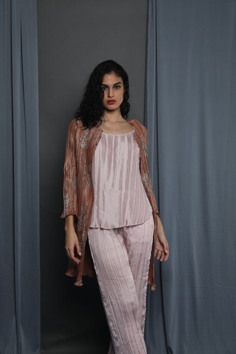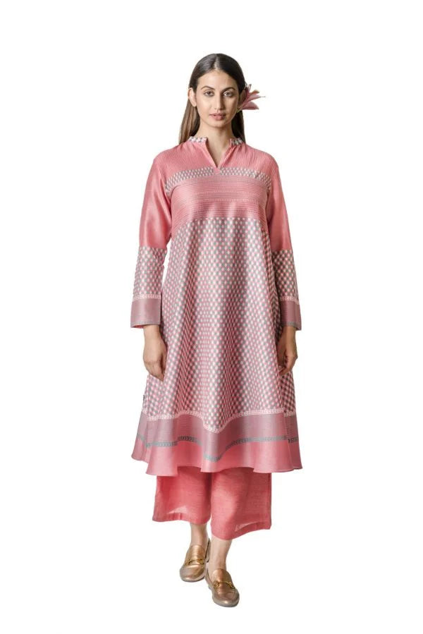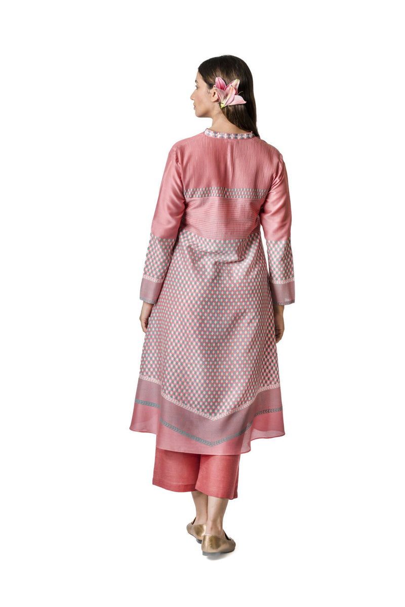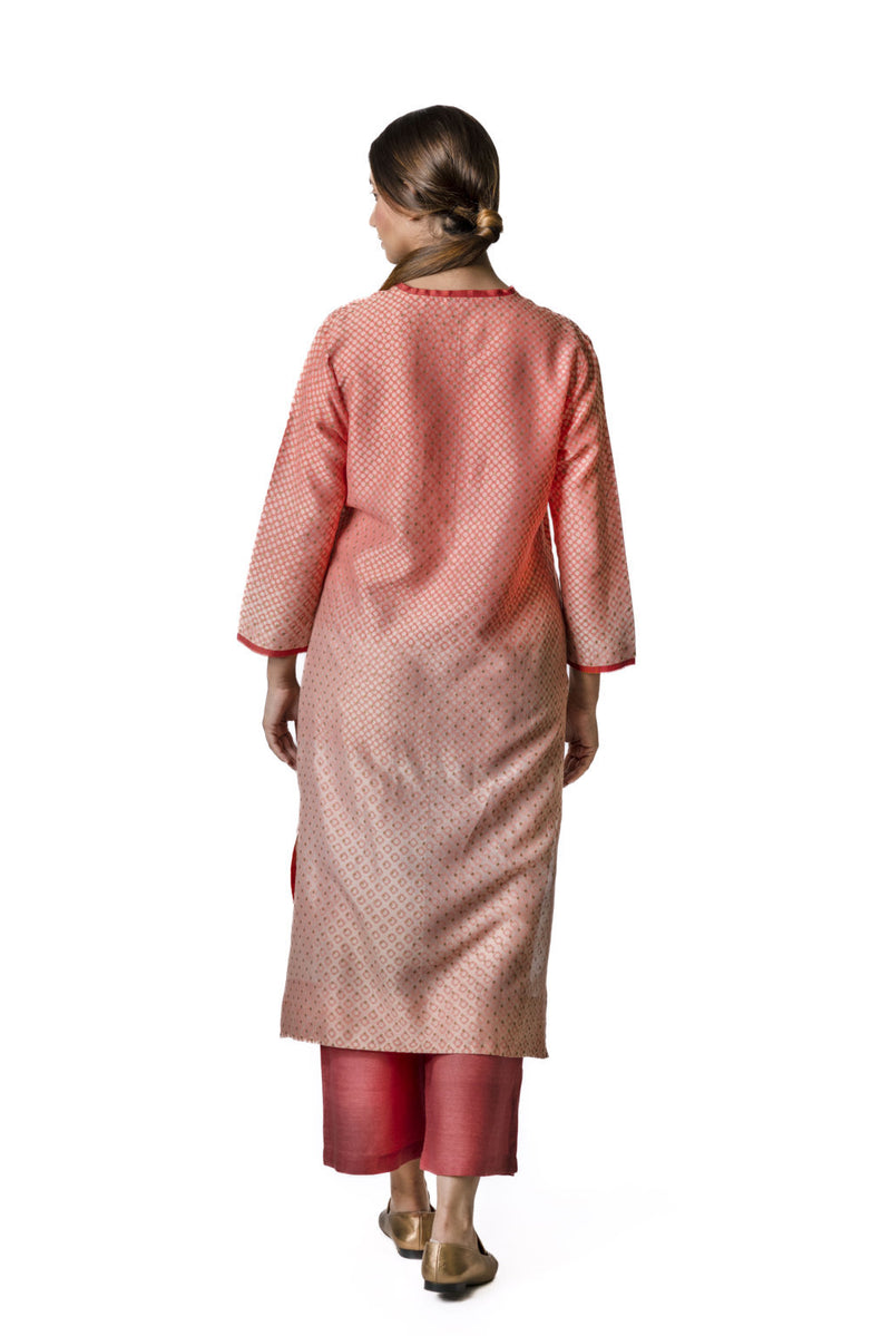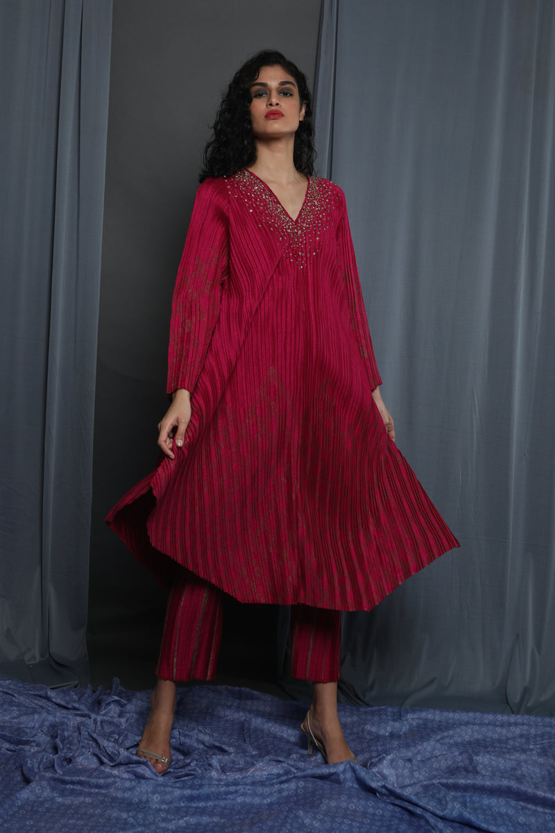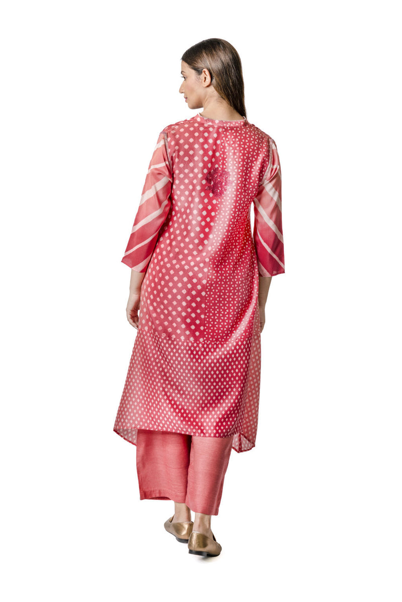 Hot Pink Tussar Hand Embroidered & Tie-Dyed Kaftan Tunic