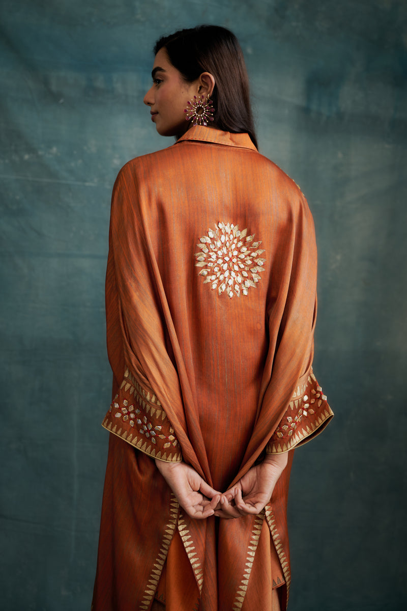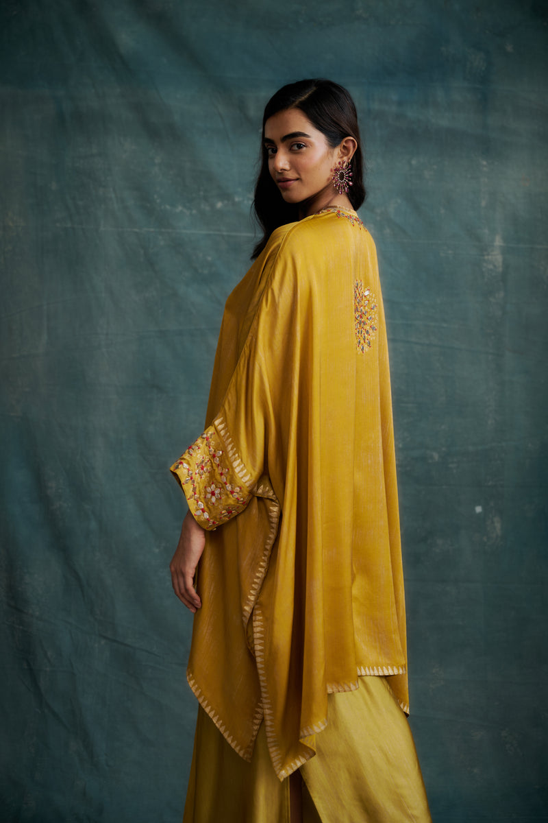 Mustard Modal Gota Embroidered & Block Printed Kaftan Tunic
