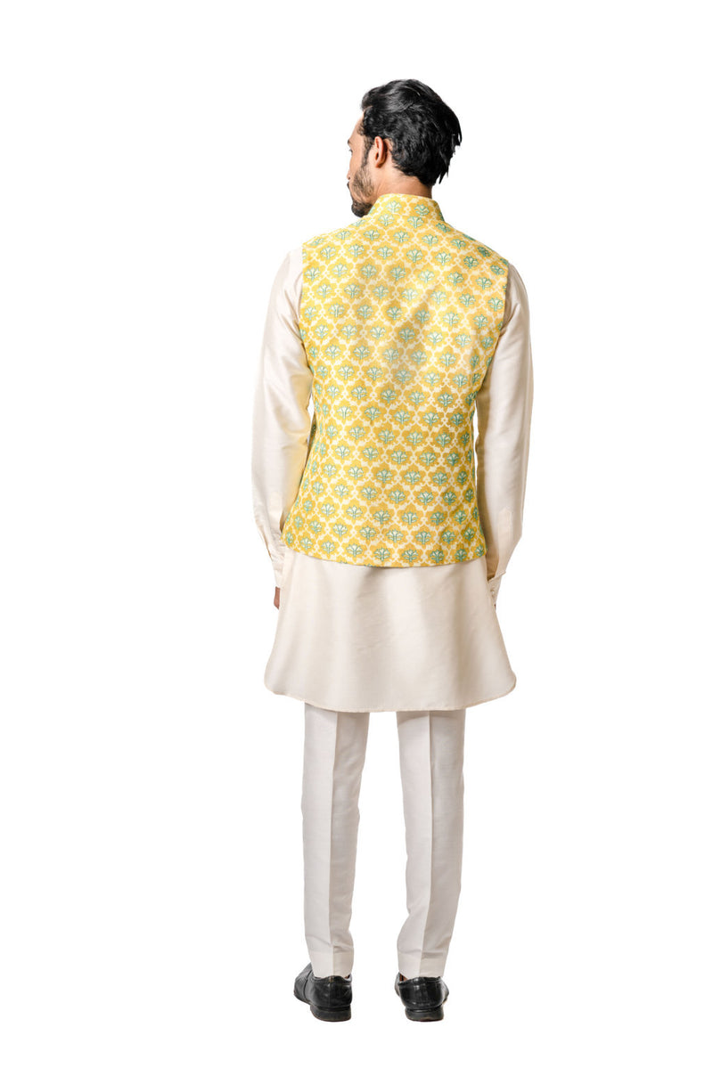 White Cotton Viscose Hand Embroidered Sherwani Set
