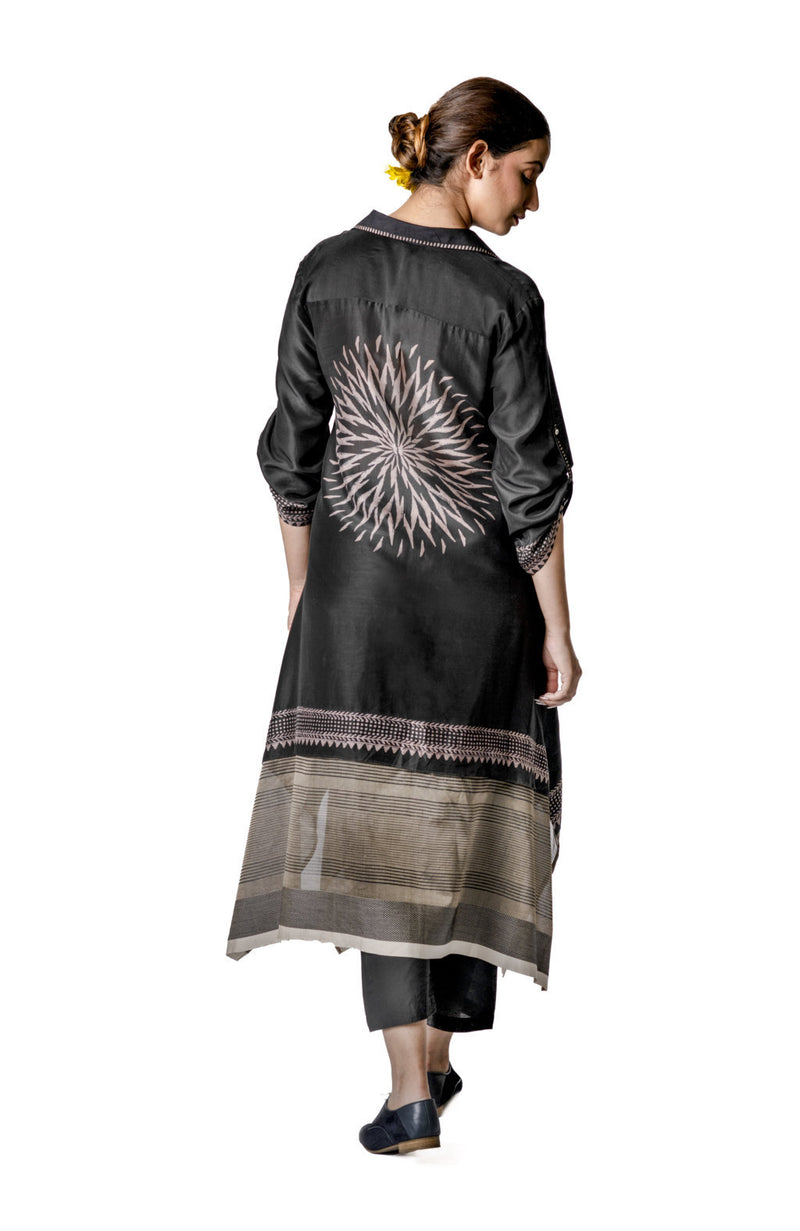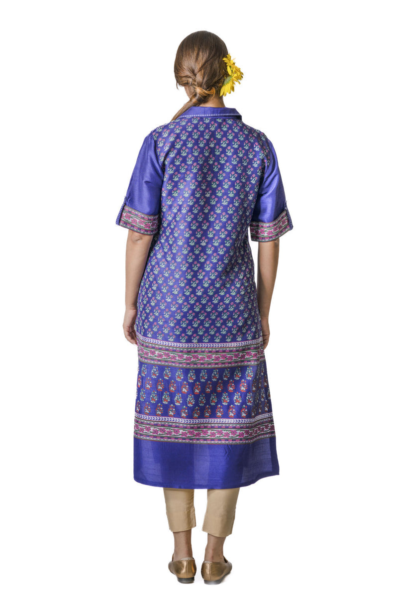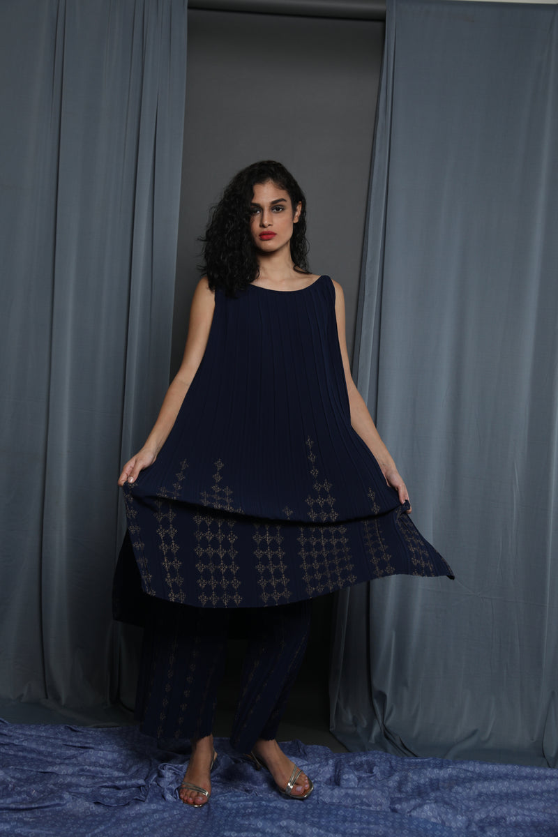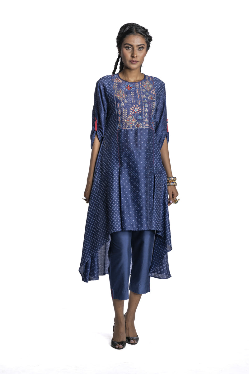 Navy Blue Cotton Viscose Embroidered Indowestern Set