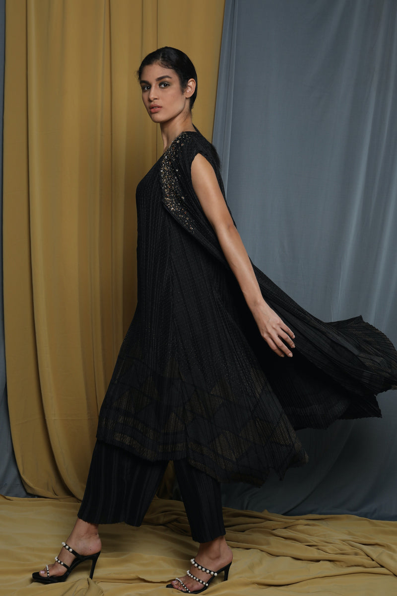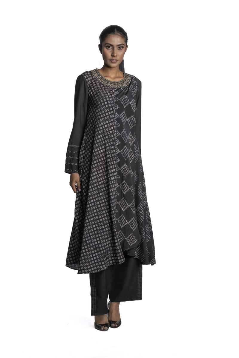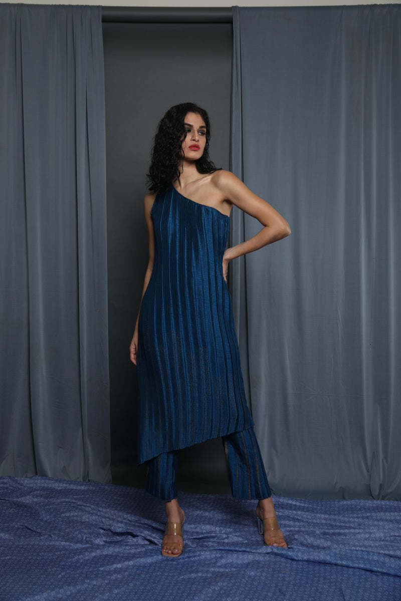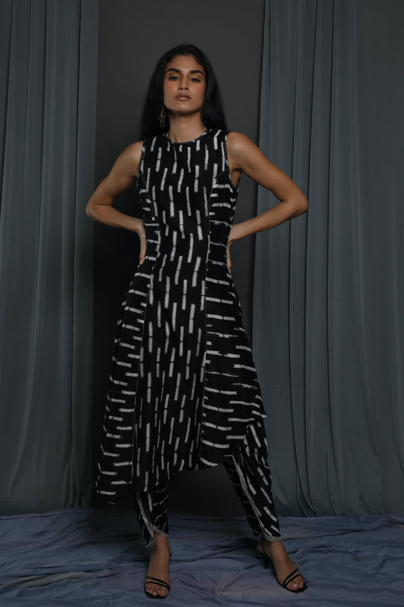 Navy Blue Cotton Viscose Embroidered Indowestern Set