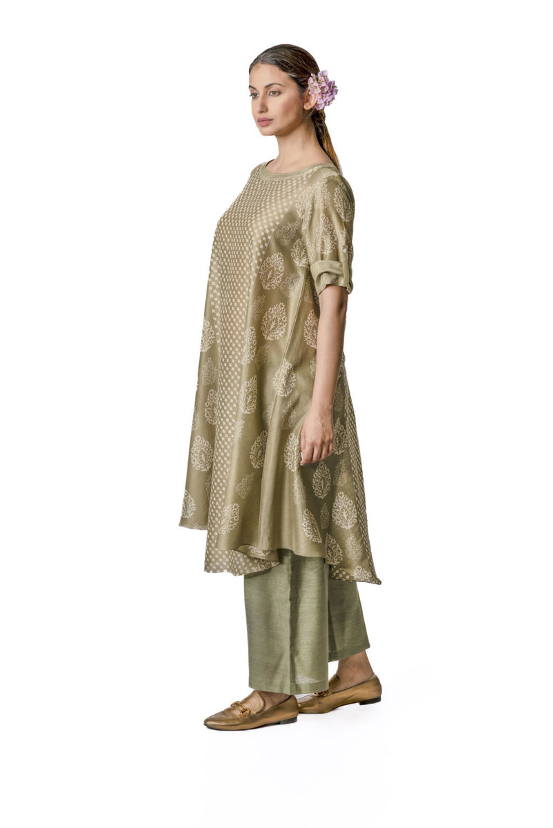 Olive Modal Gota Embroidered & Block Printed Kaftan Tunic