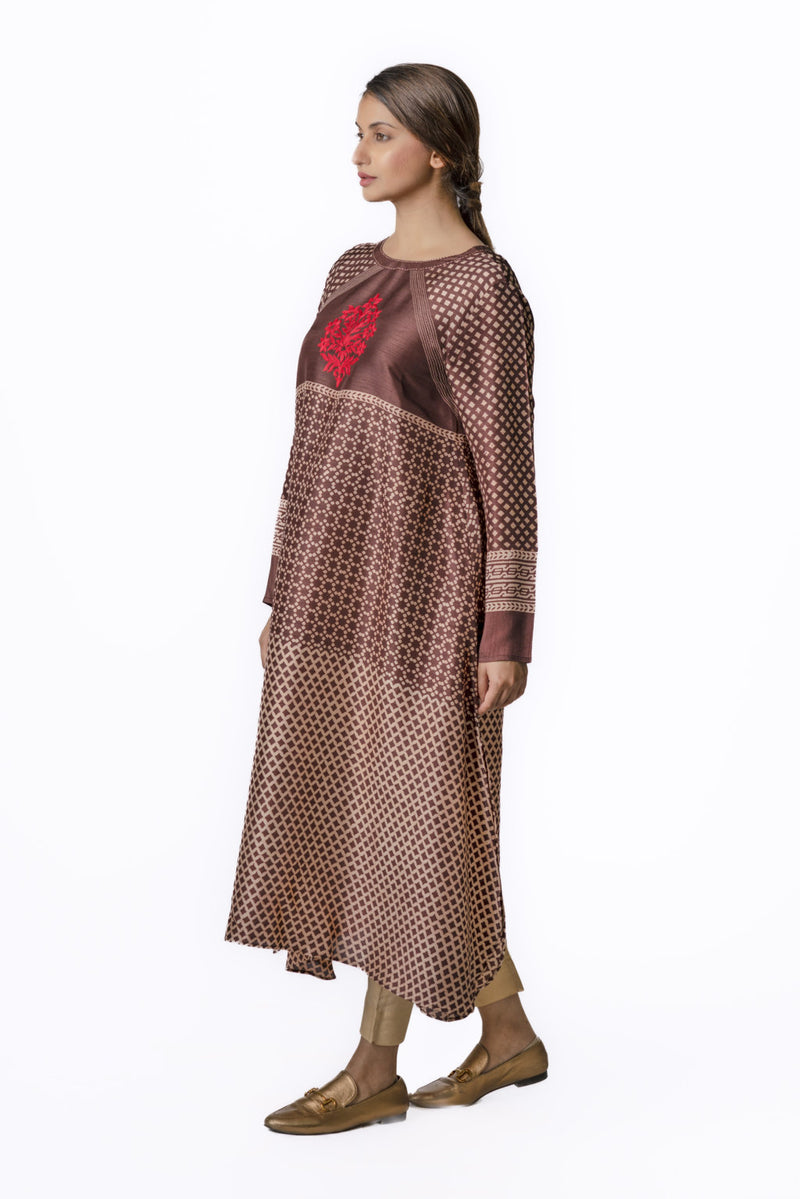 Berry Shaded Chanderi Tunic With Floral Embroidery