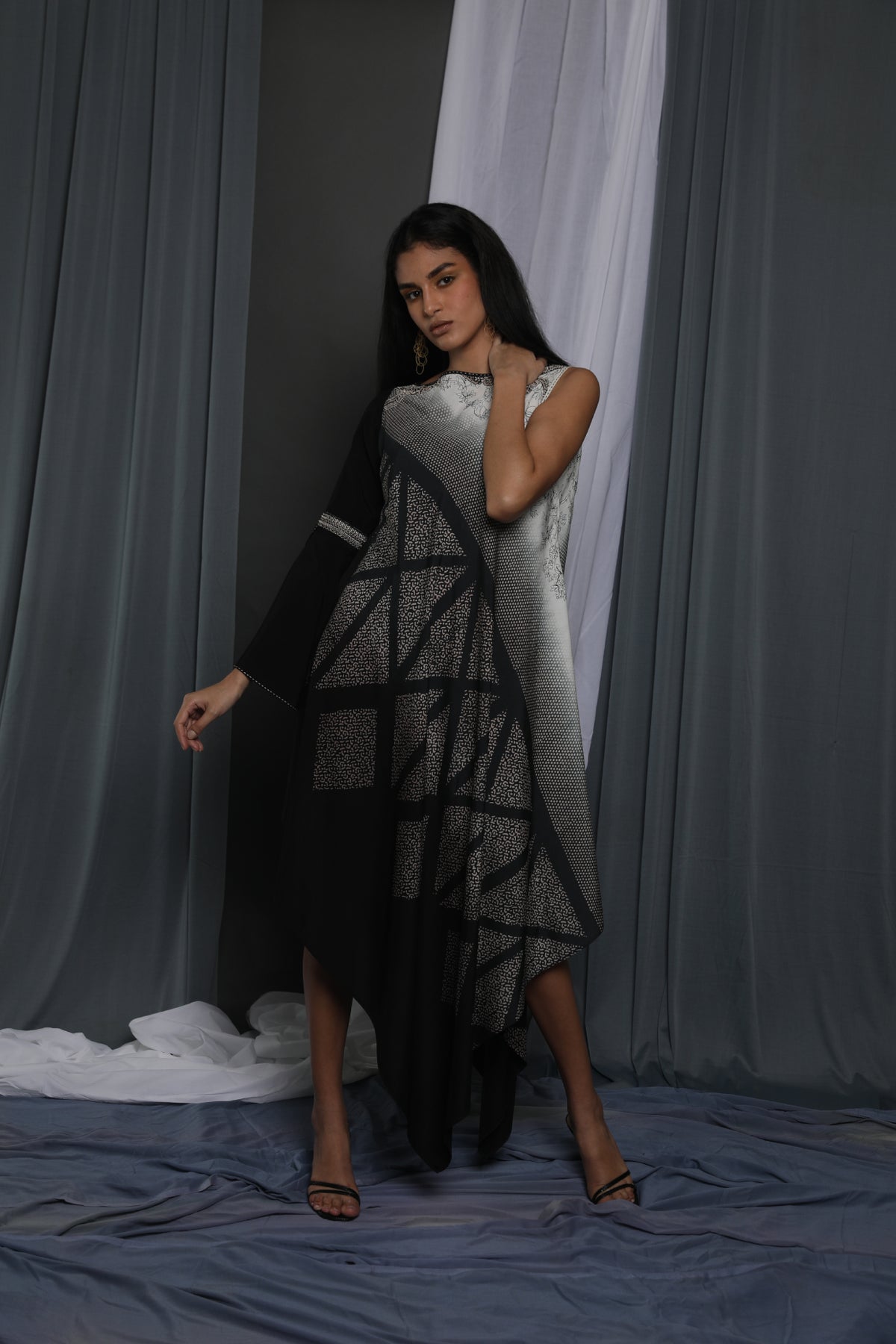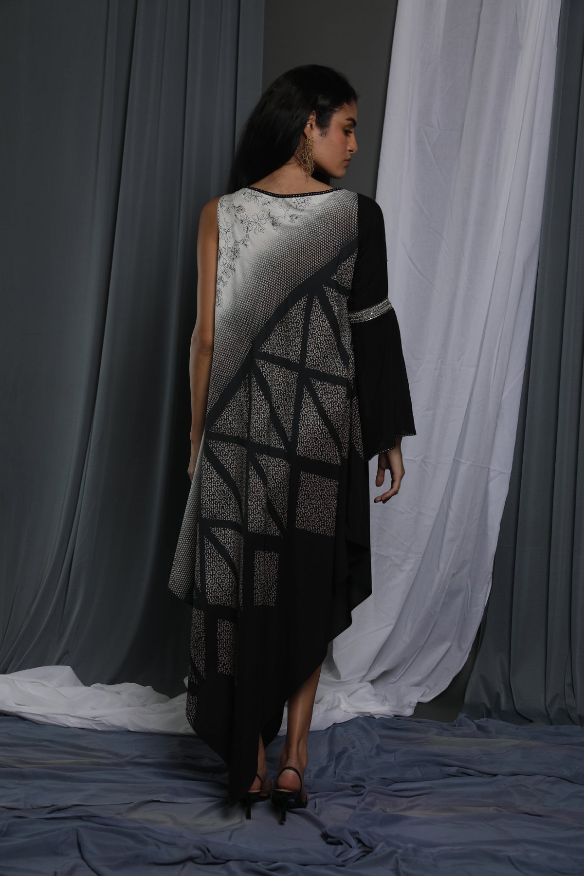 Black chanderi shaded tunic with one sleeve & embroidery on neckline