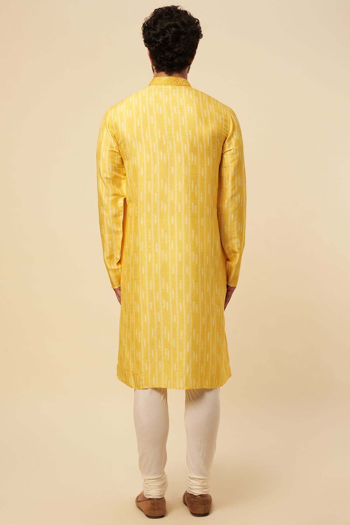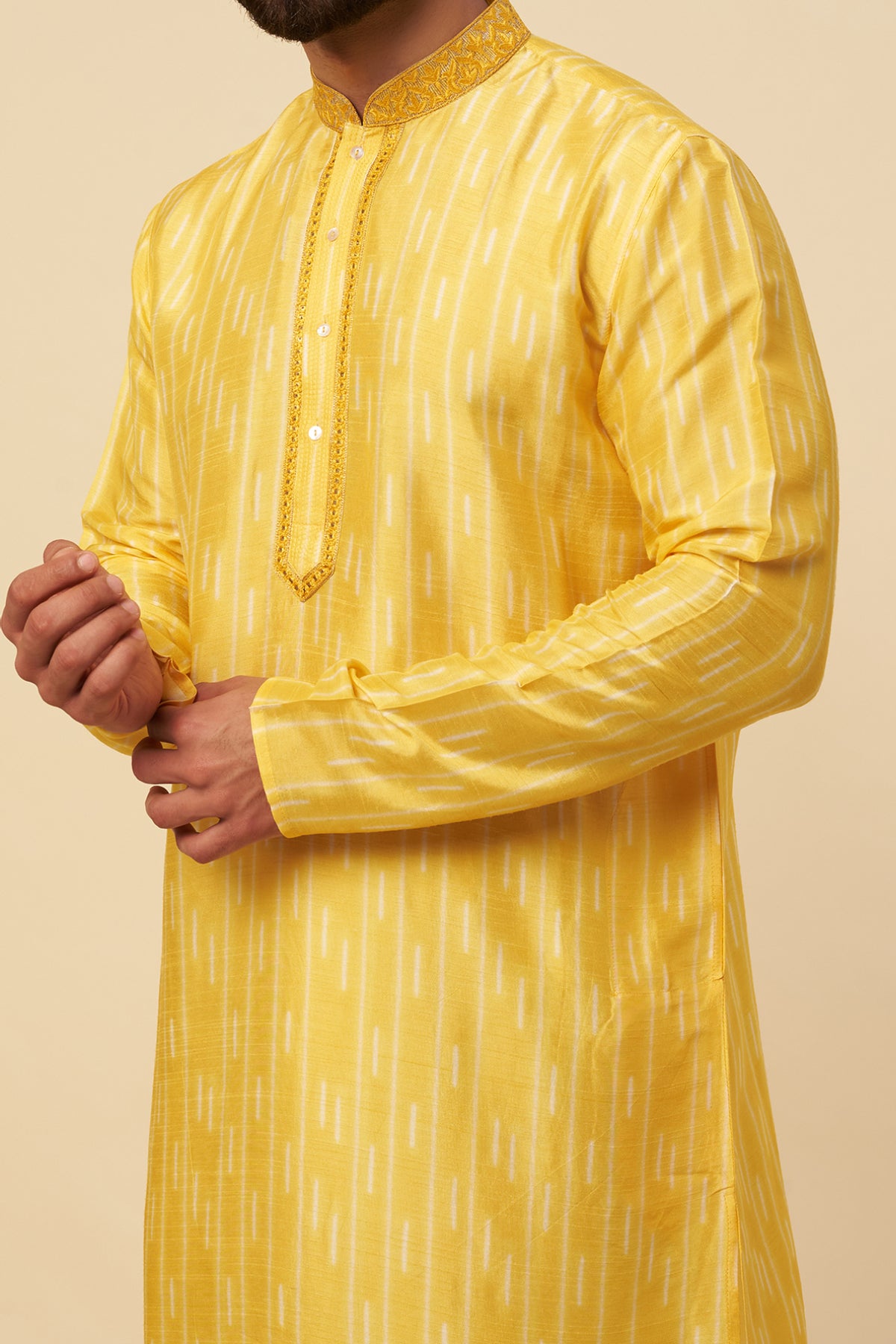 Printed kurta in tussar with hand emb zardosi work on neck band and around placket