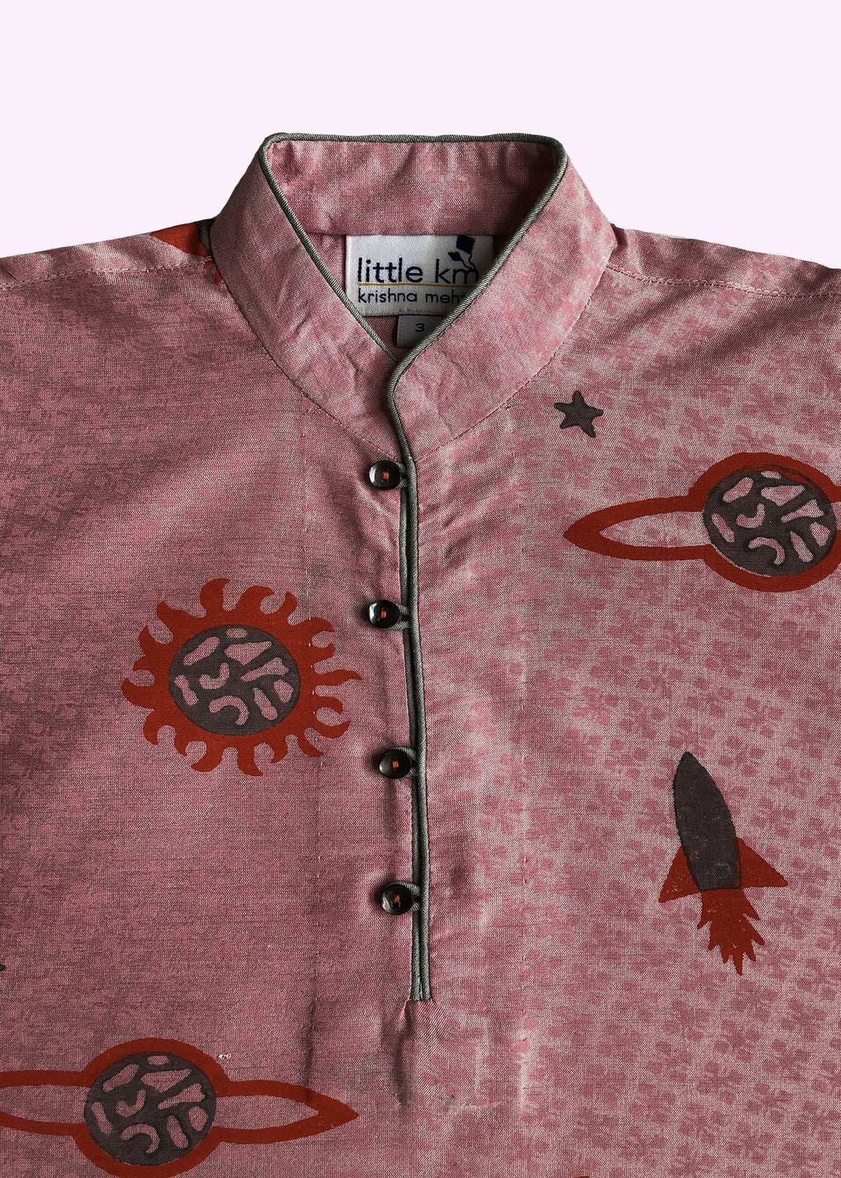 Featuring a block printed kurta set. This kurta comes with a matching churidar.