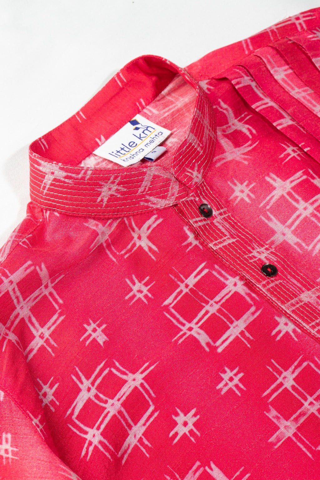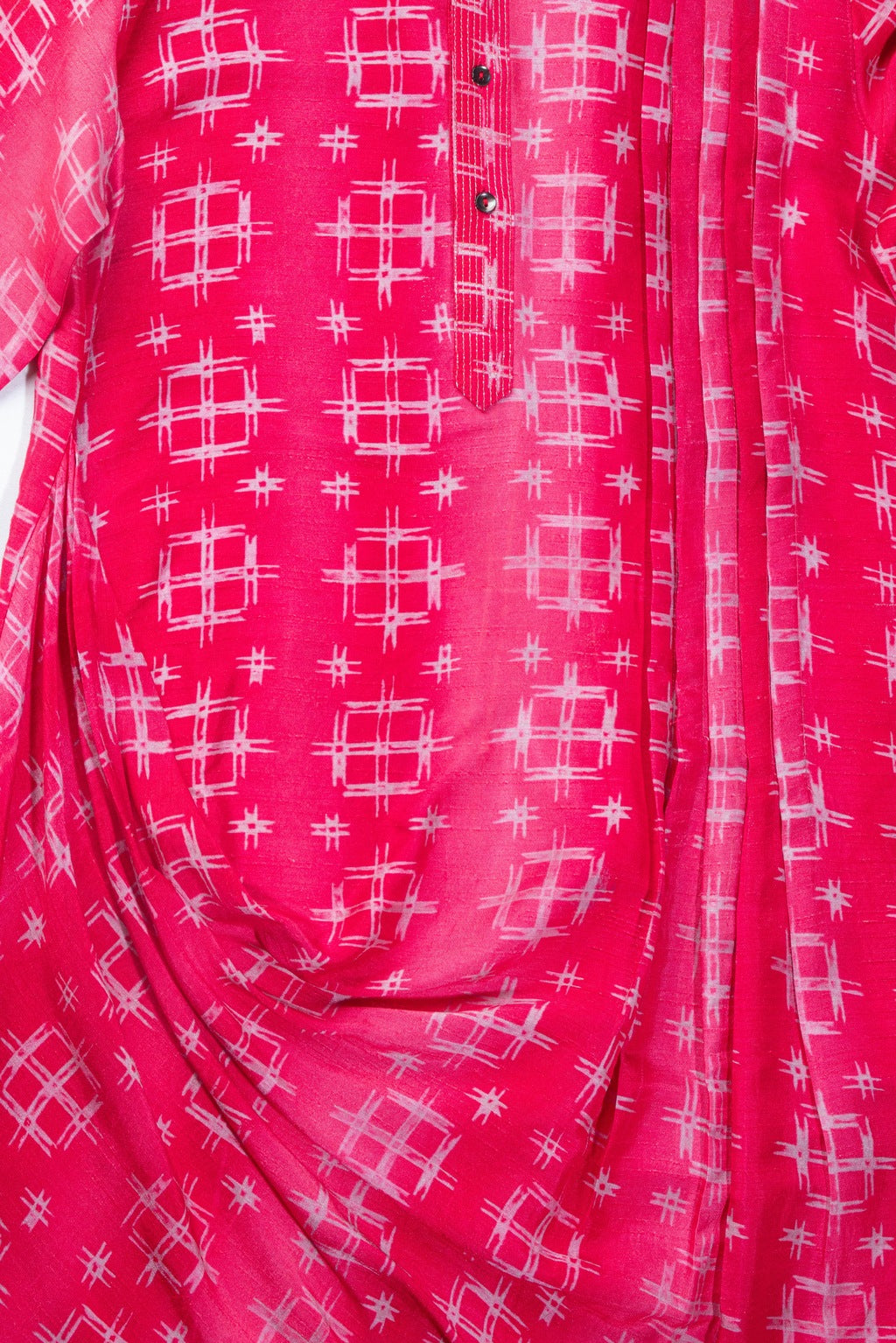 Featuring a red tie dye printed drape kurta set with a textured collar. .
