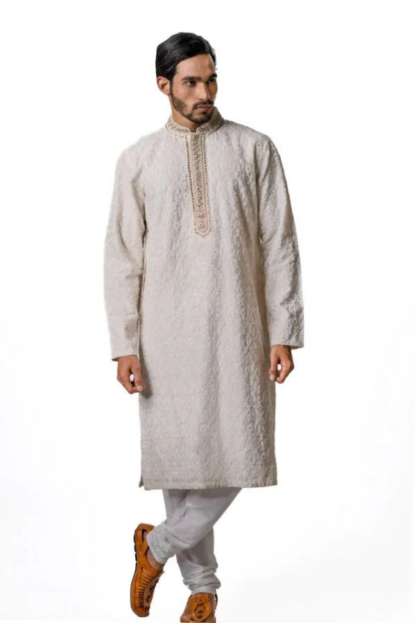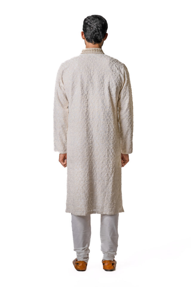 Off-White Embroidered Kurta Set