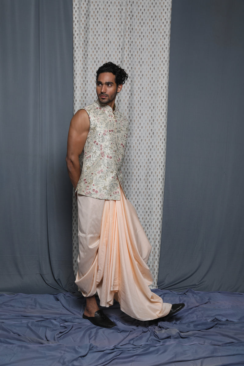 Persian Pink Tussar Print & Embroidered Bundi Jacket