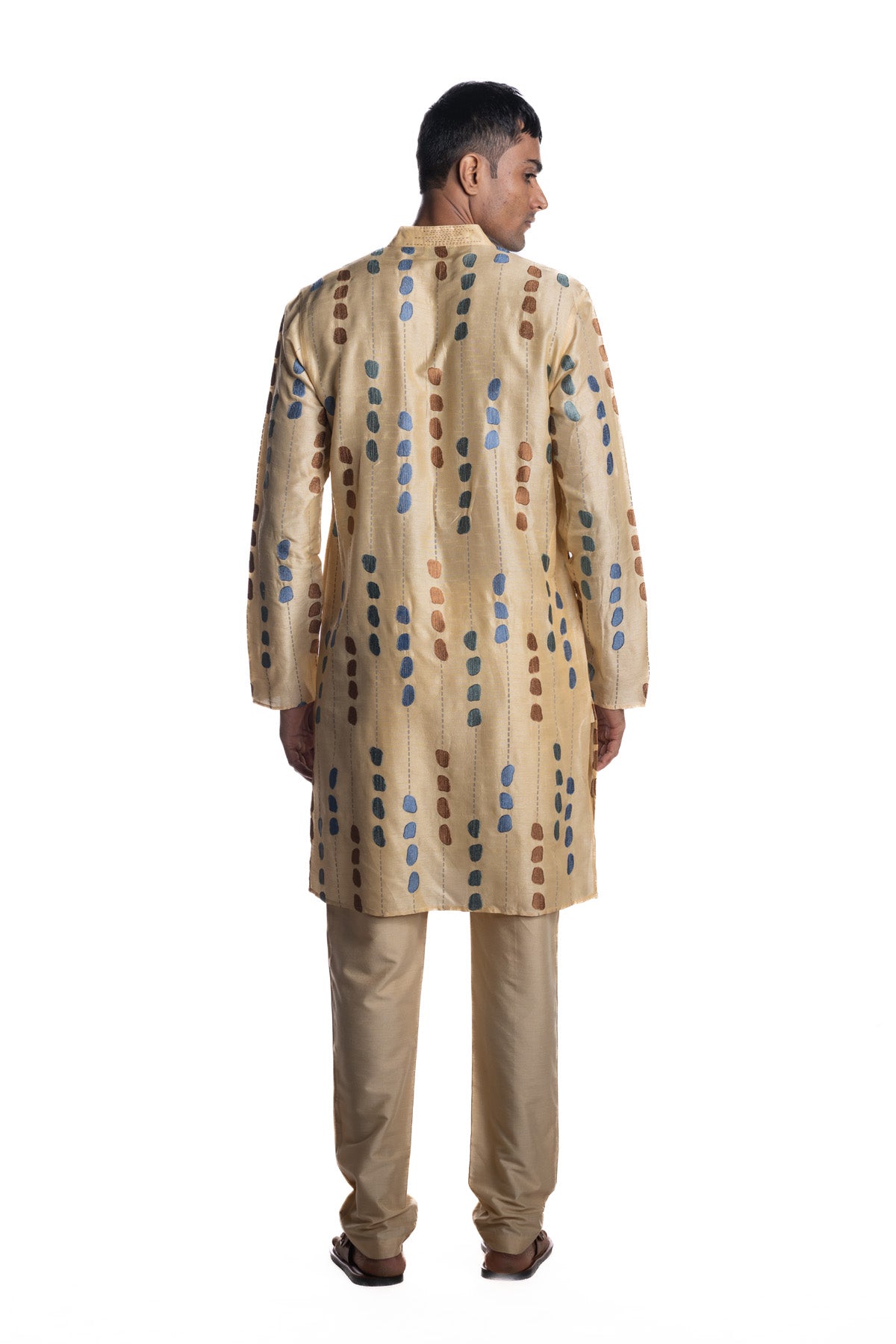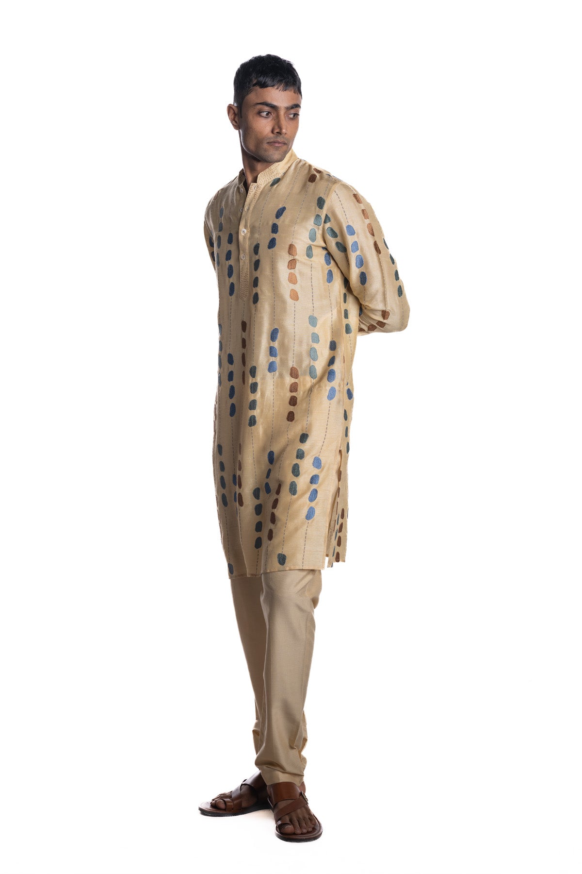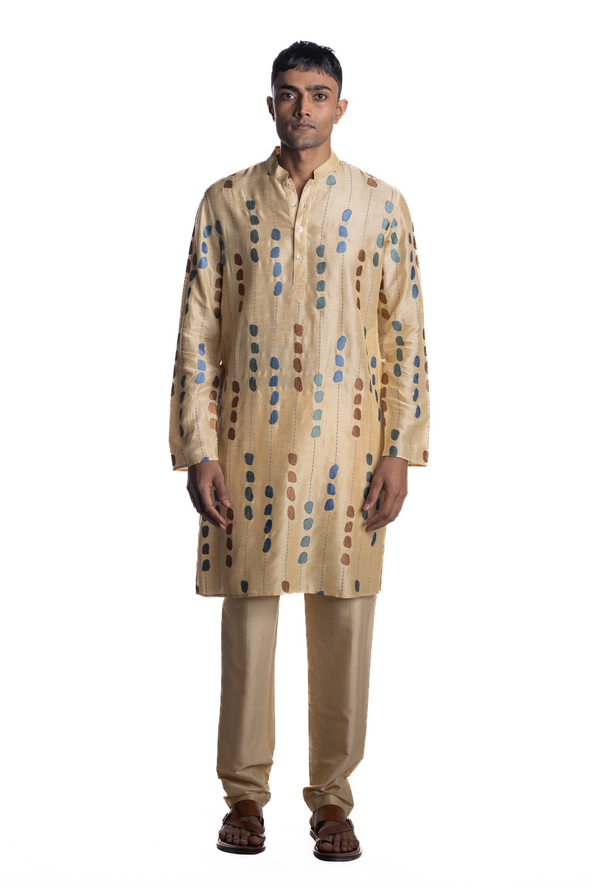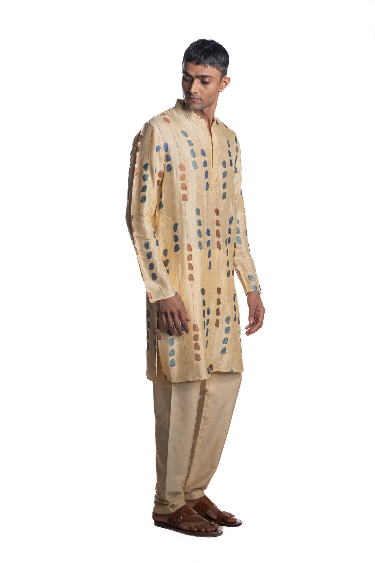 Beige kurta detailed with multicolour embroidered motifs