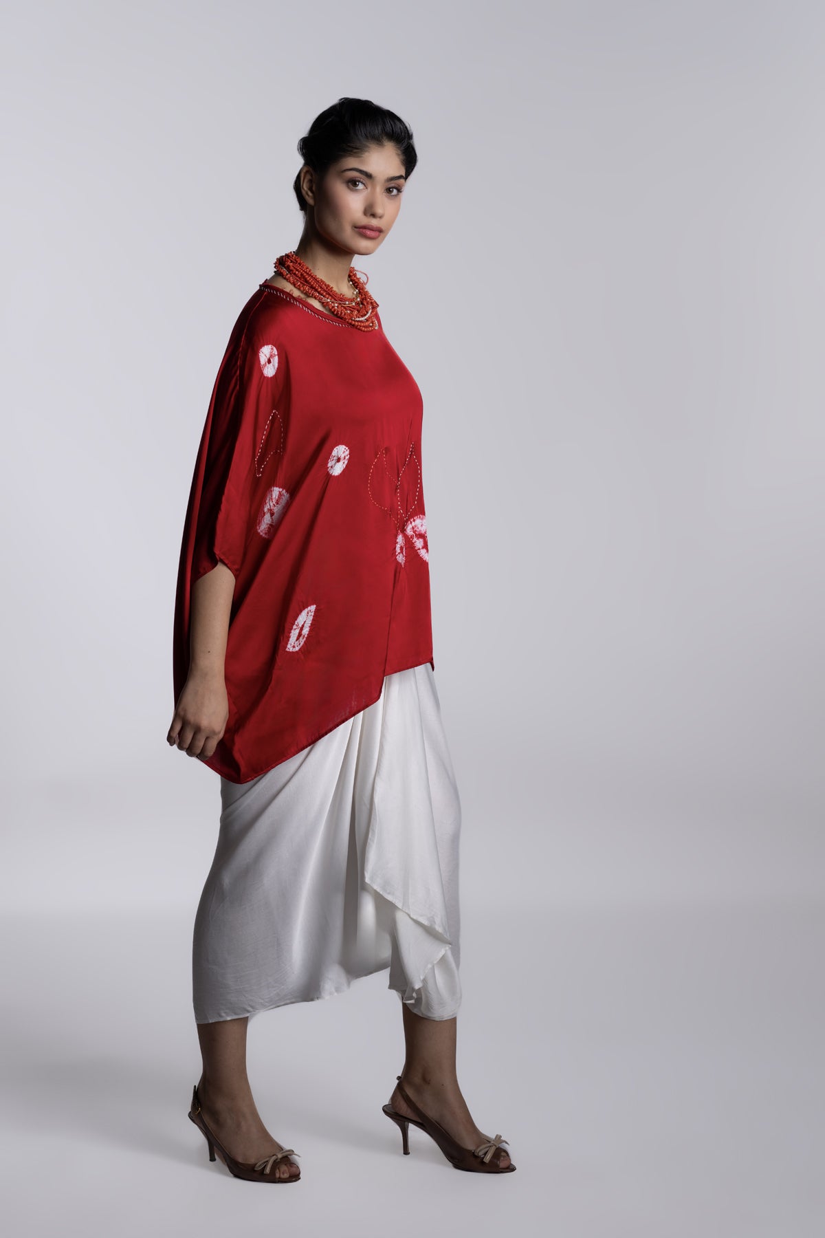 Red Easy-fit top with a relaxed, fluid silhouette. Detailed with handcrafted shibori motifs and subtle surface textures.