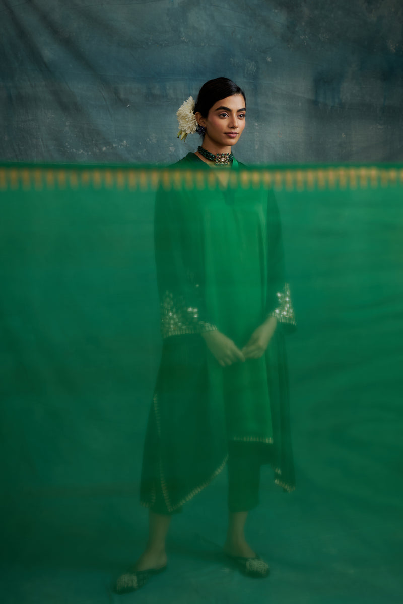 Orange-Red Modal Gota Embroidered & Block Printed Tunic Set