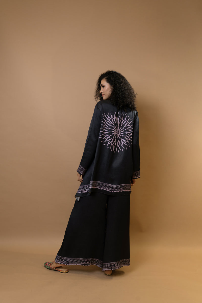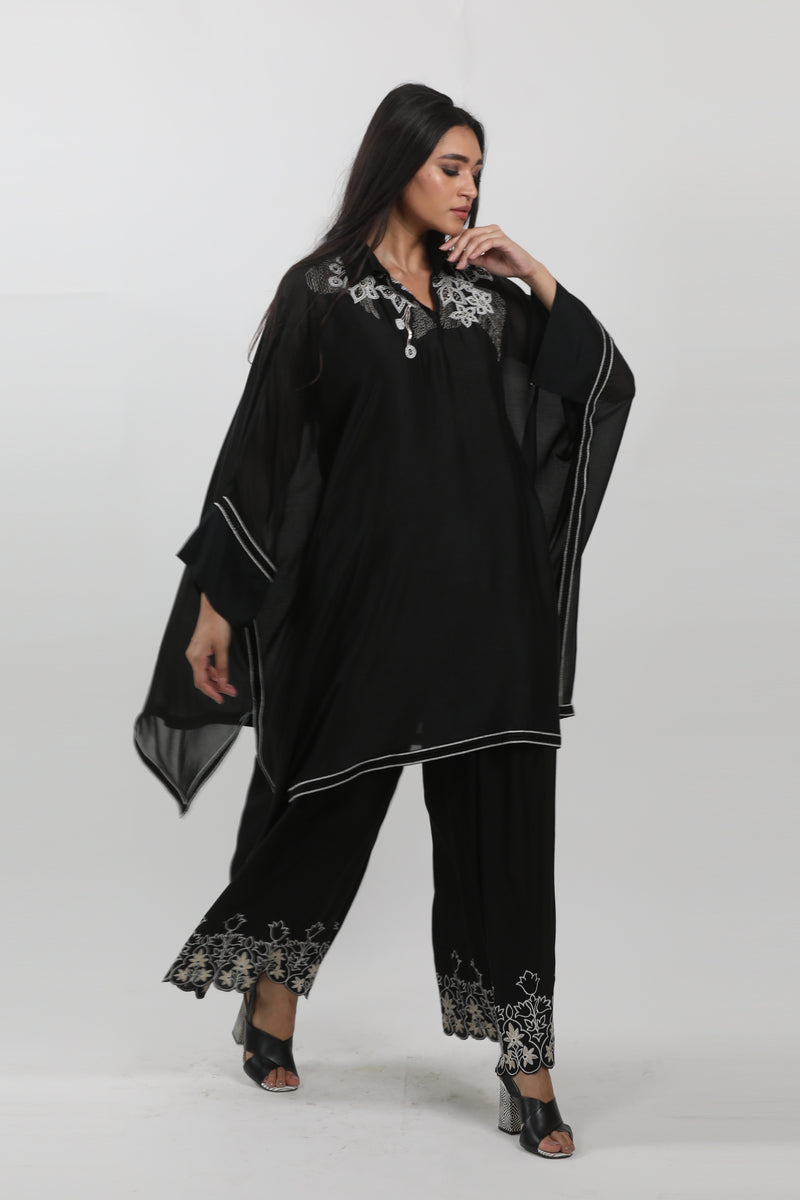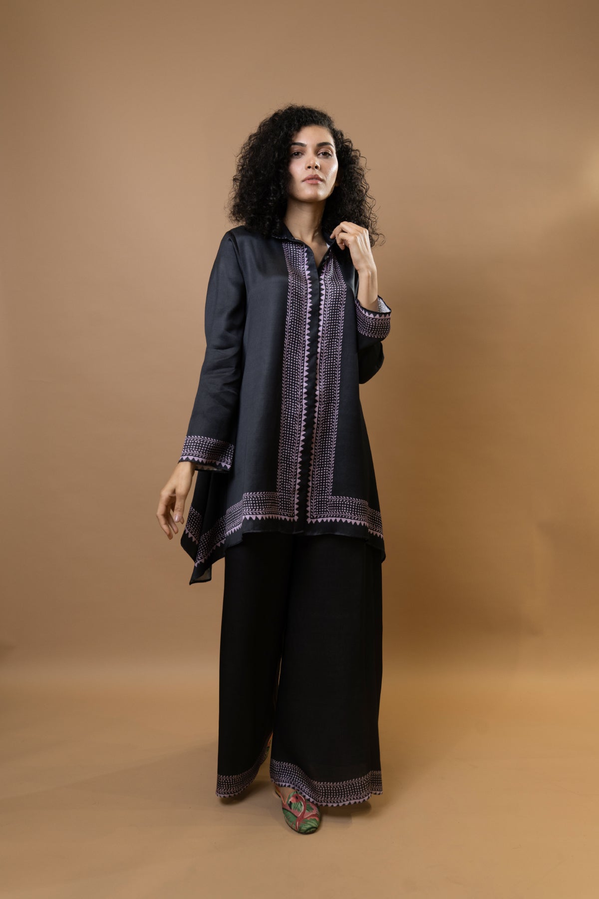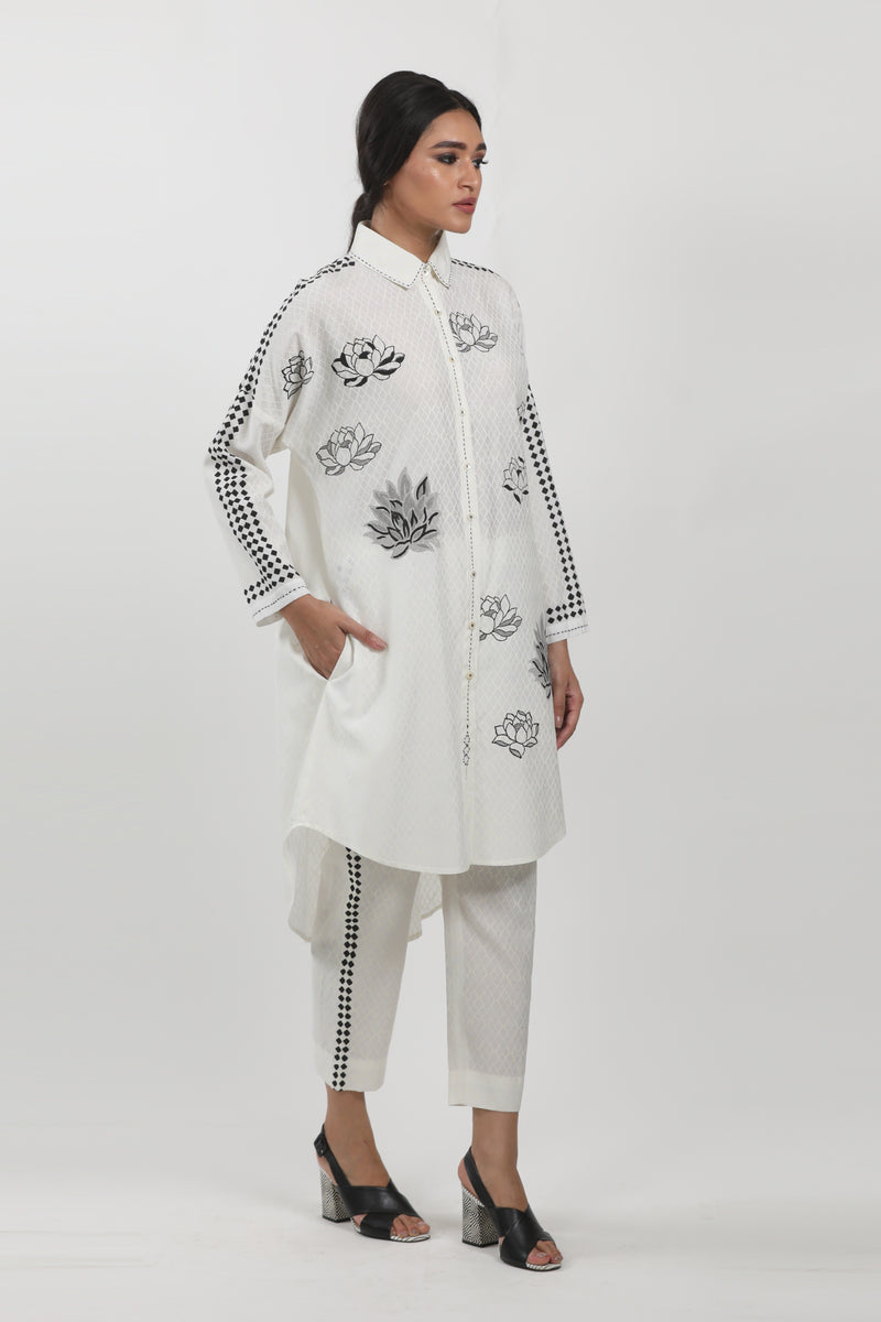 Black/White Shaded Block Printed & Embroidered Shirt Tunic