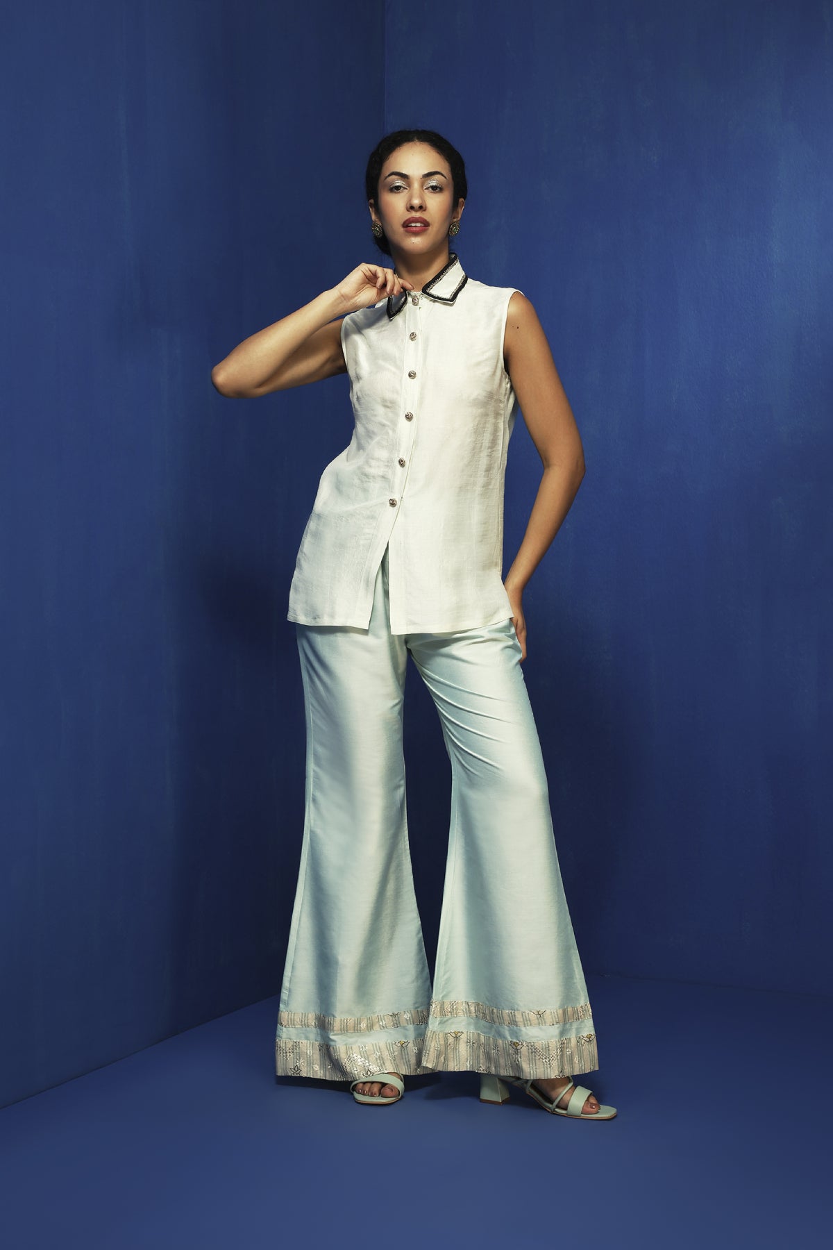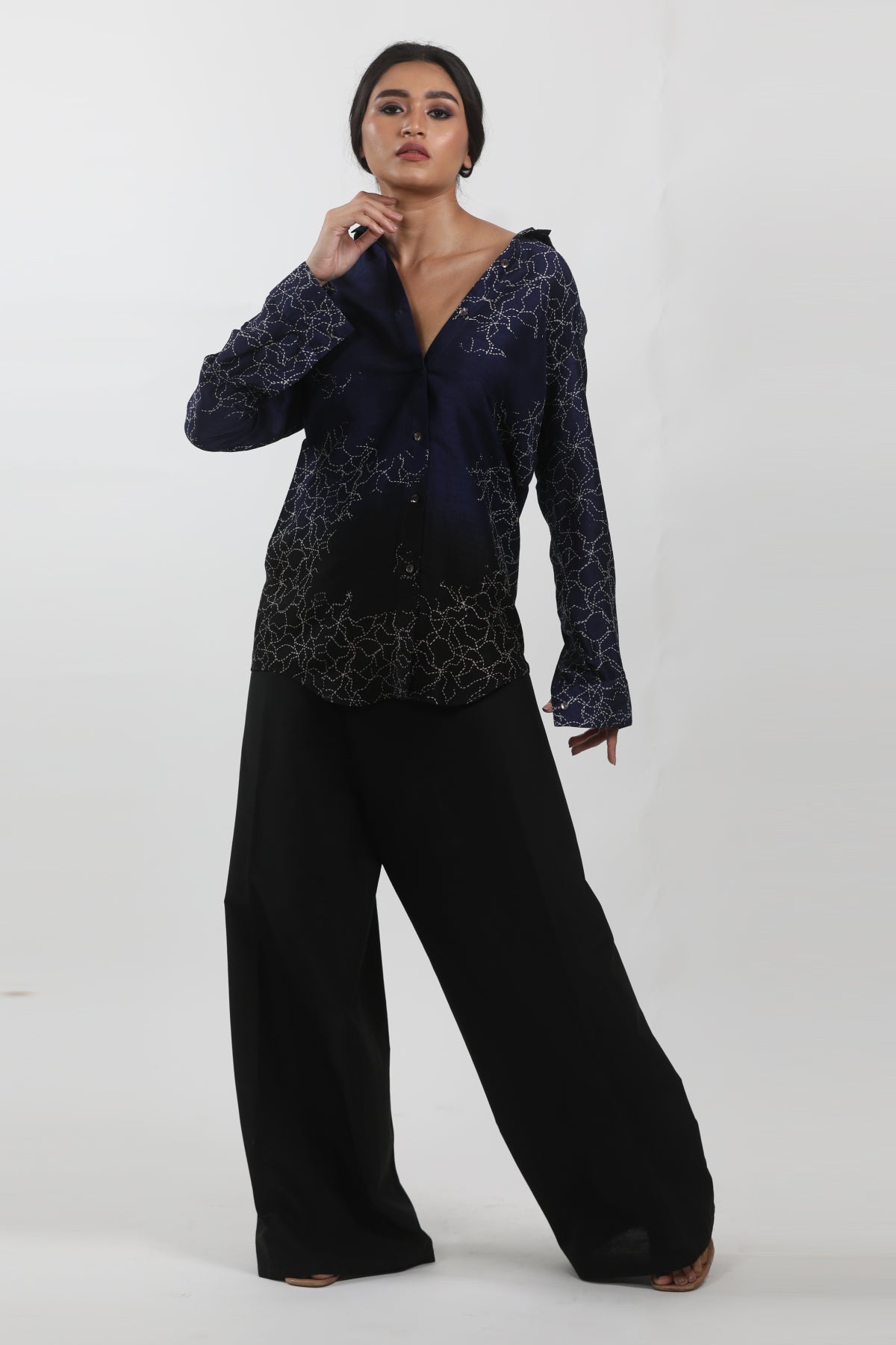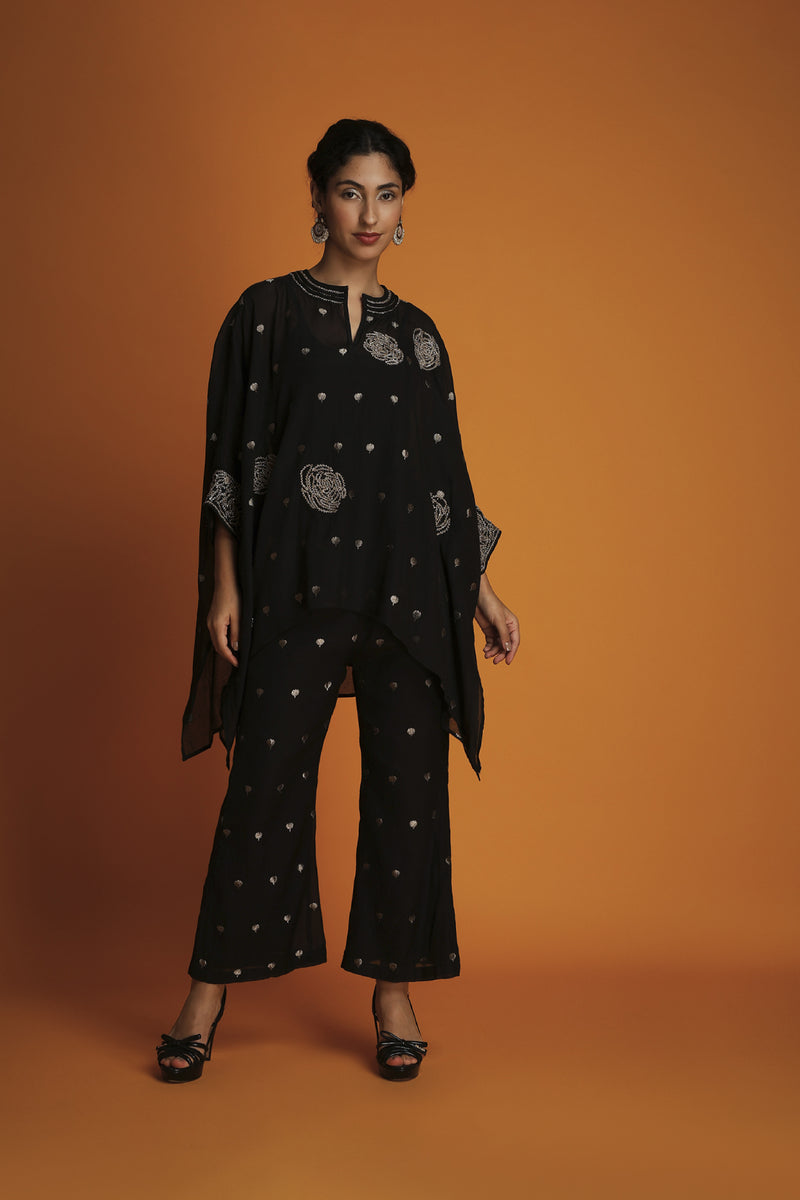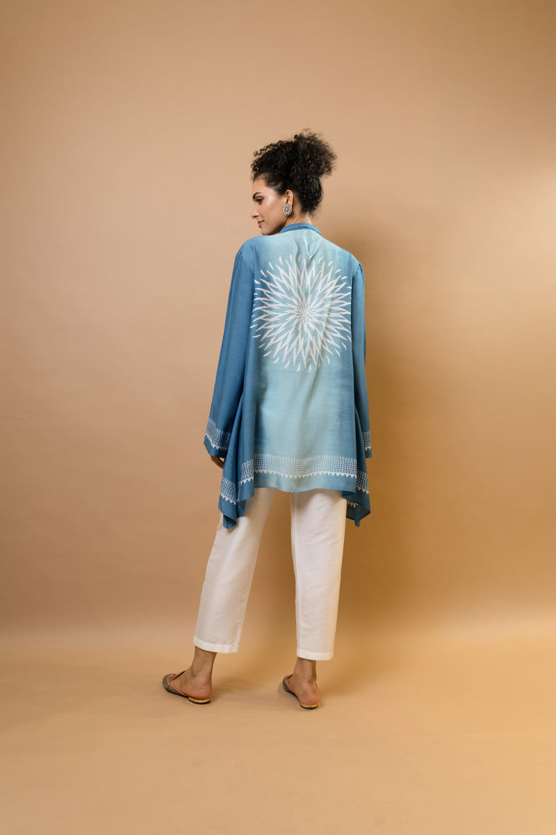 Black/White Shaded Block Printed & Embroidered Shirt Tunic