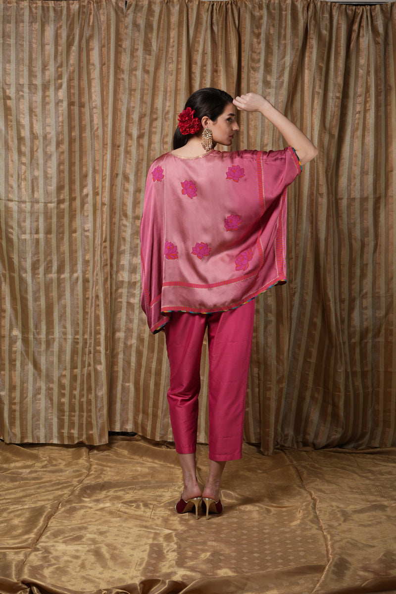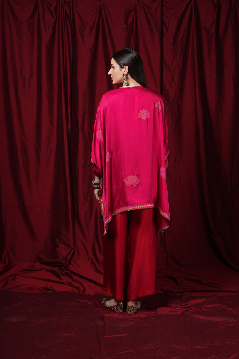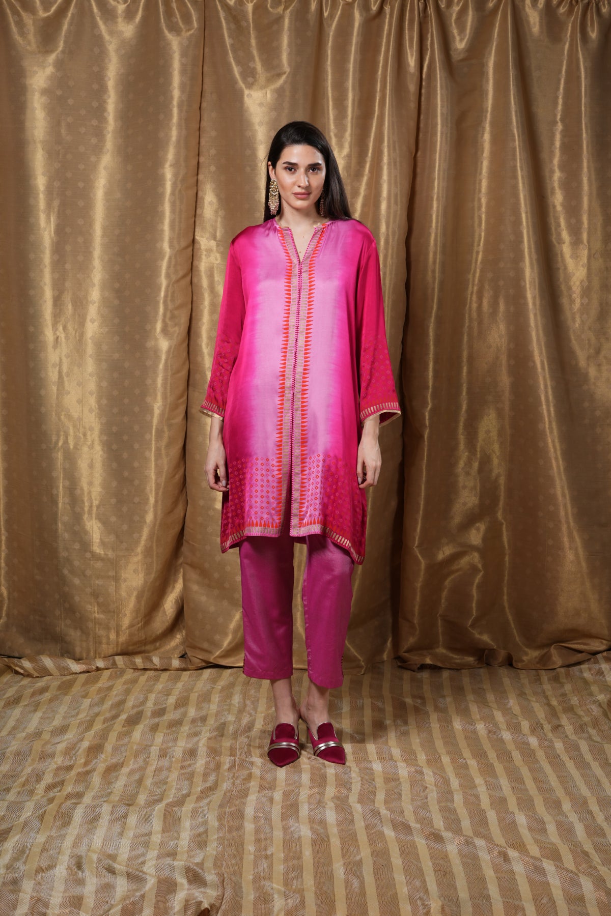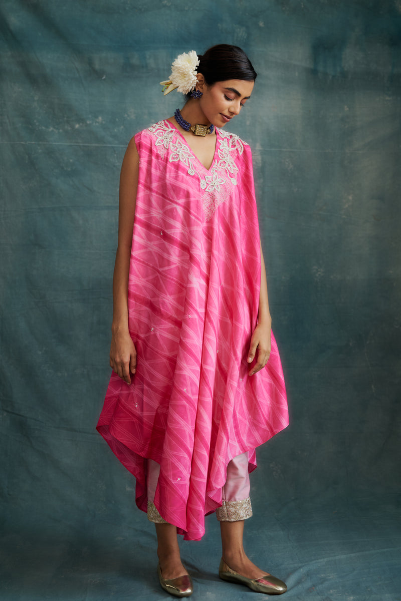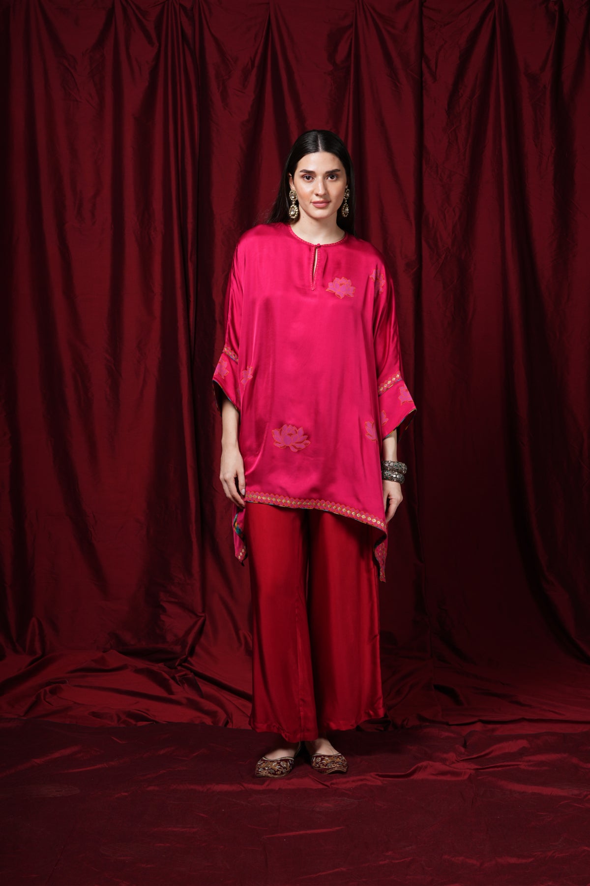 Fuchsia Pink Modal Gota Embroidered & Block Printed Kaftan Tunic