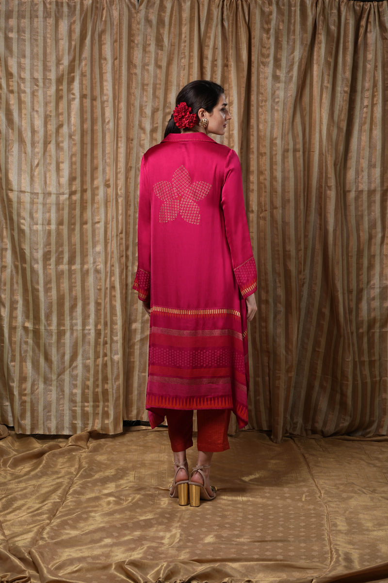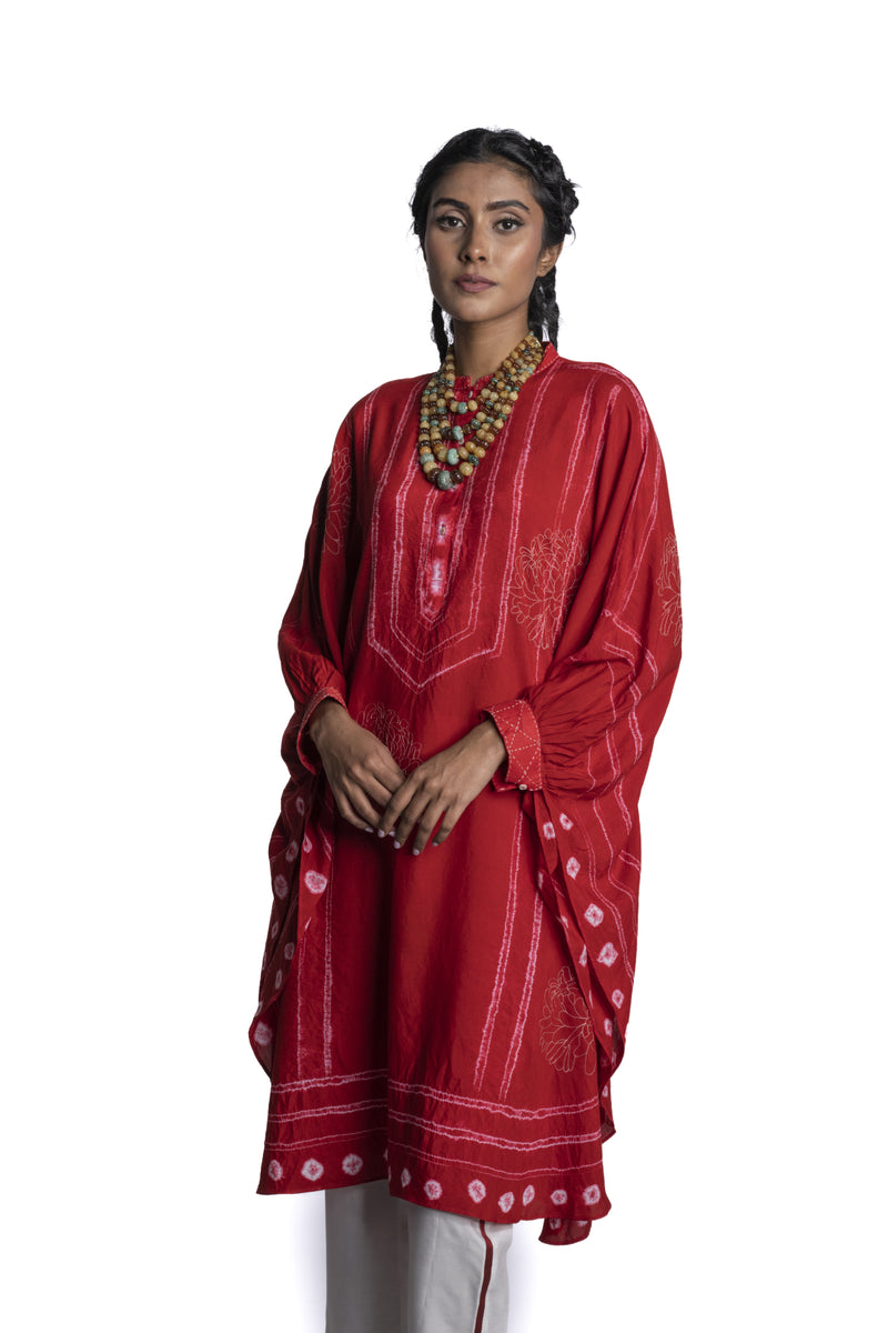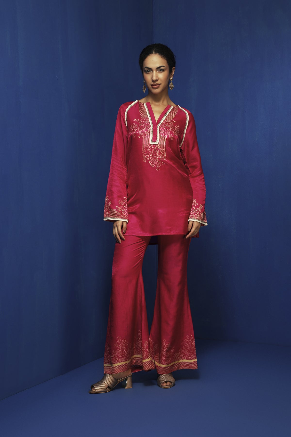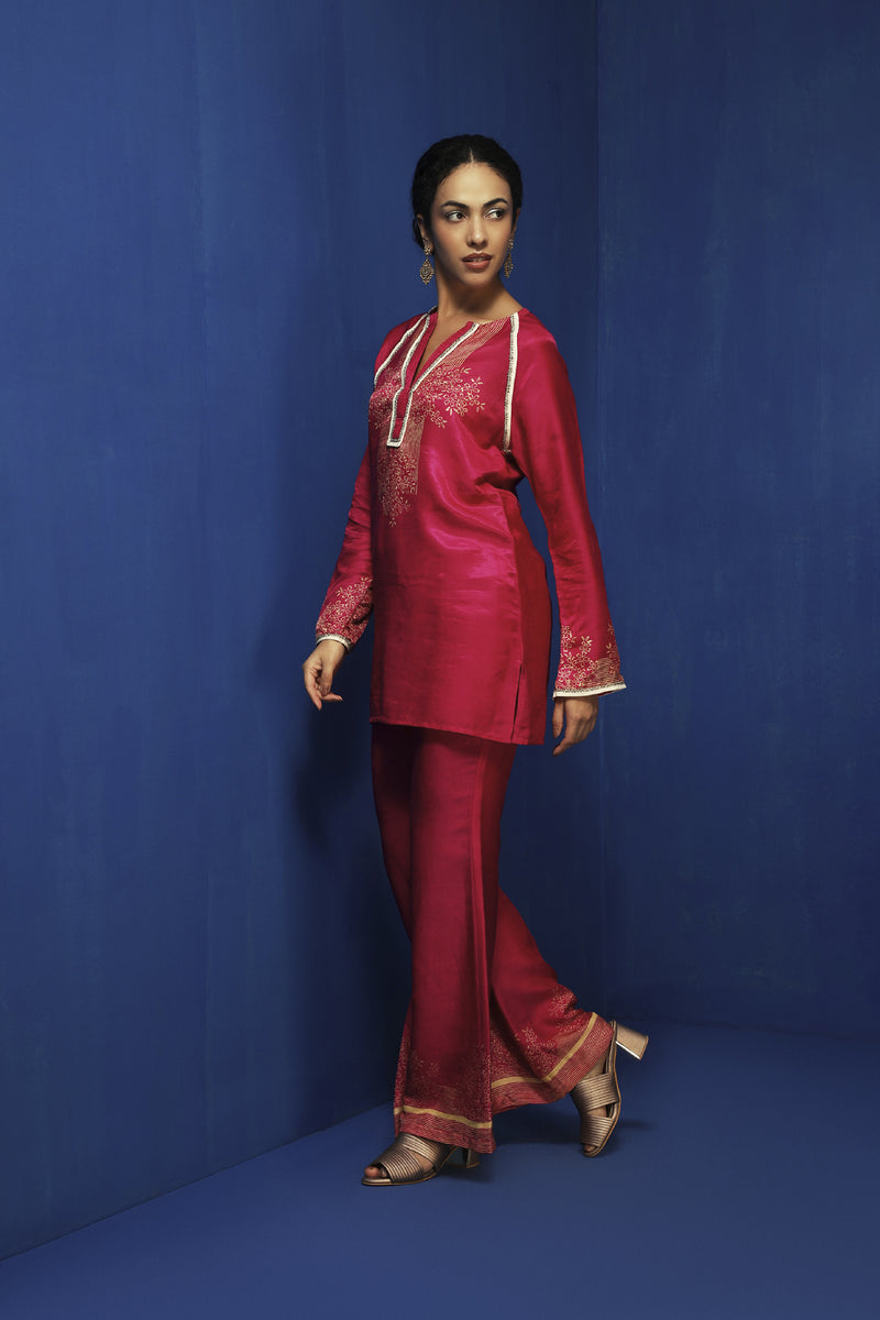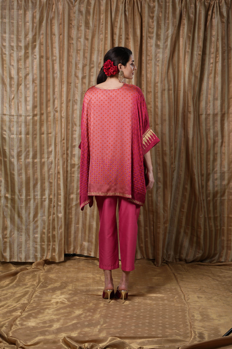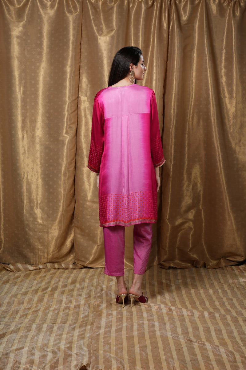 Fuchsia Pink Modal Gota Embroidered & Block Printed Kaftan Tunic