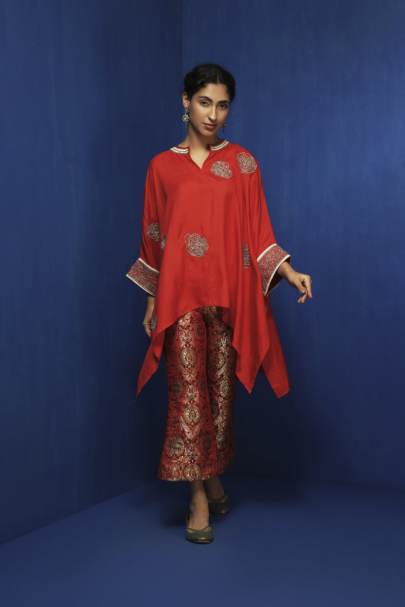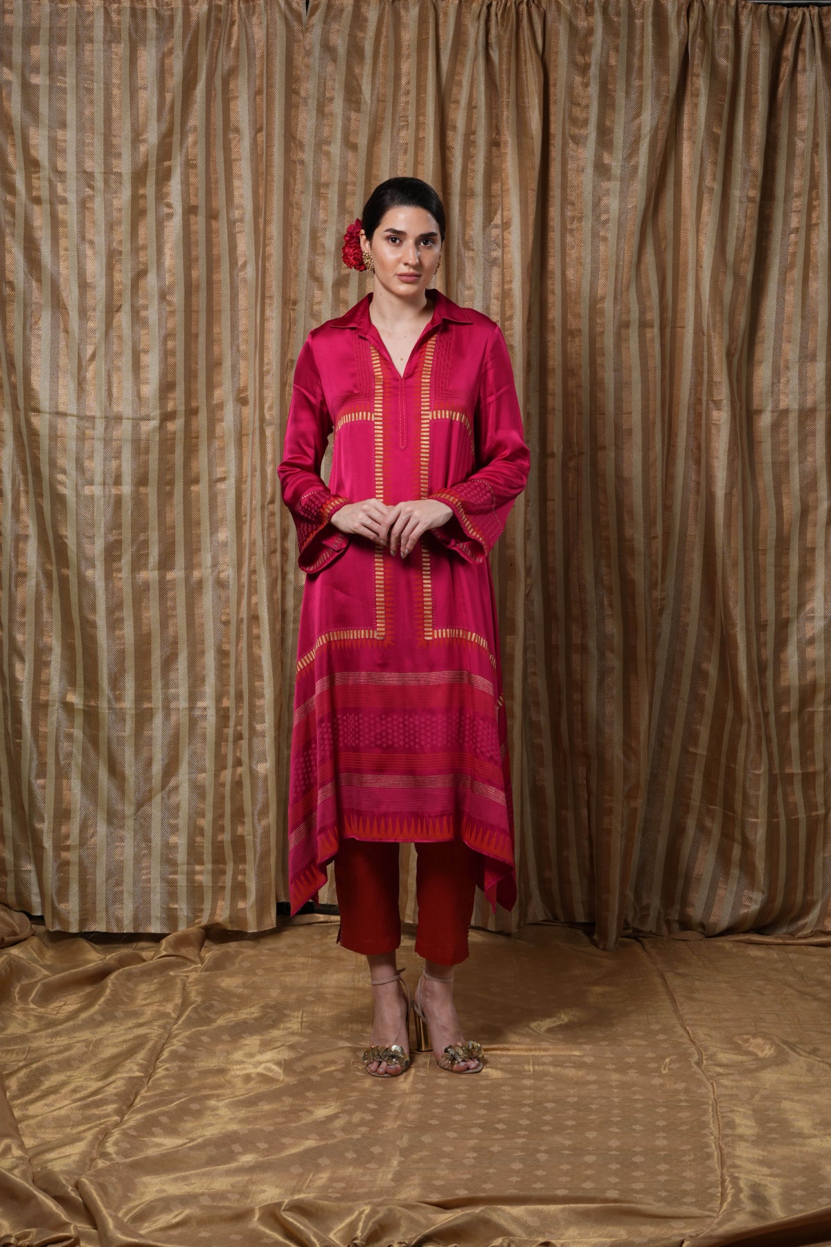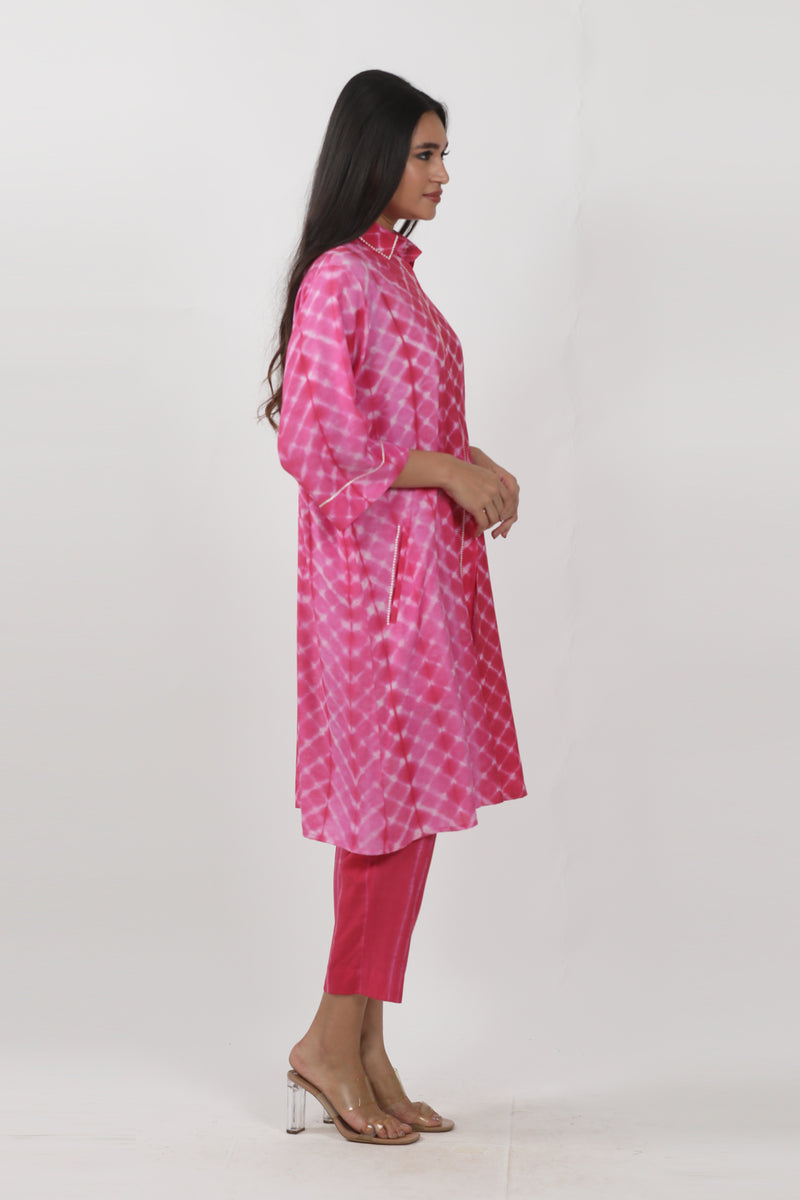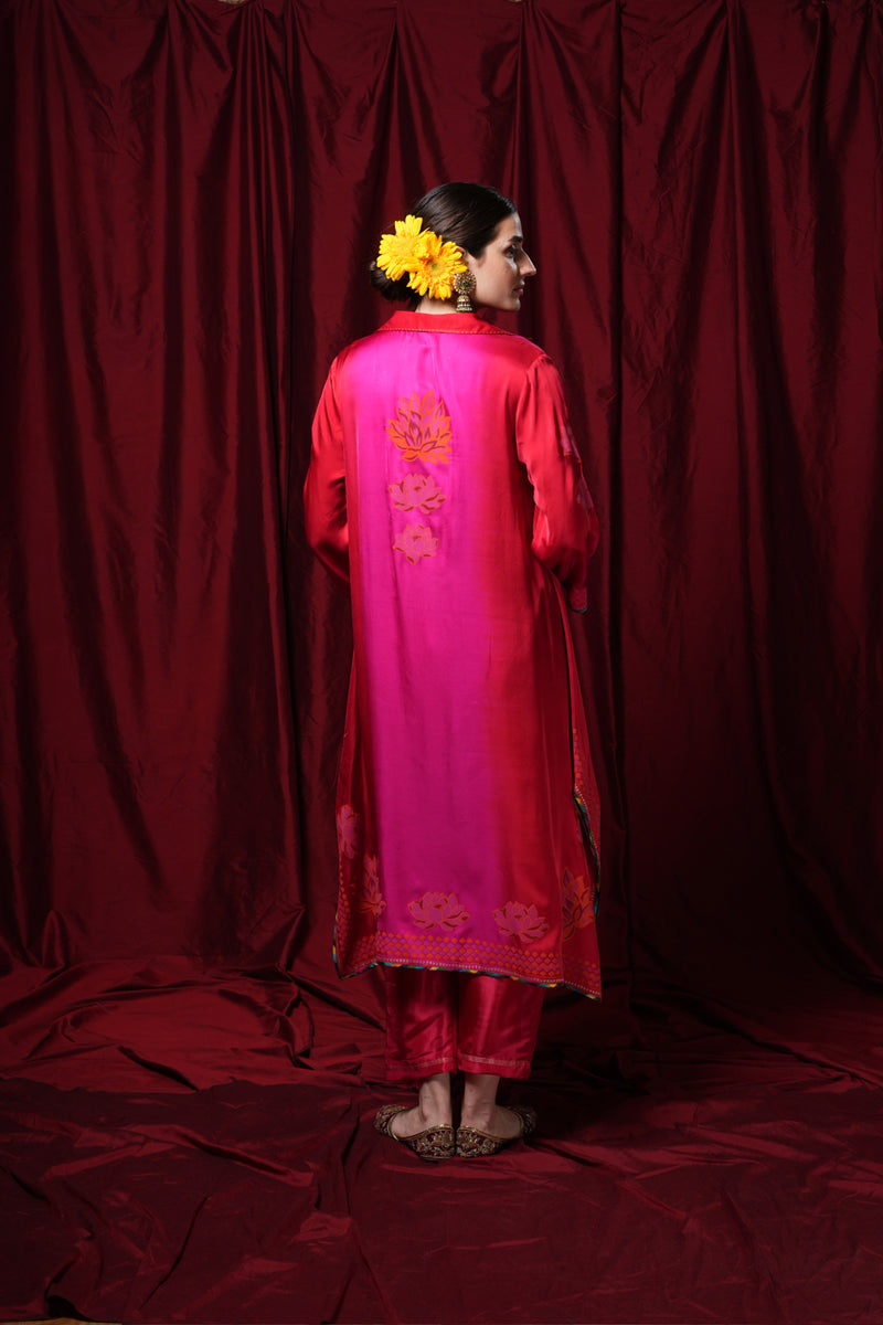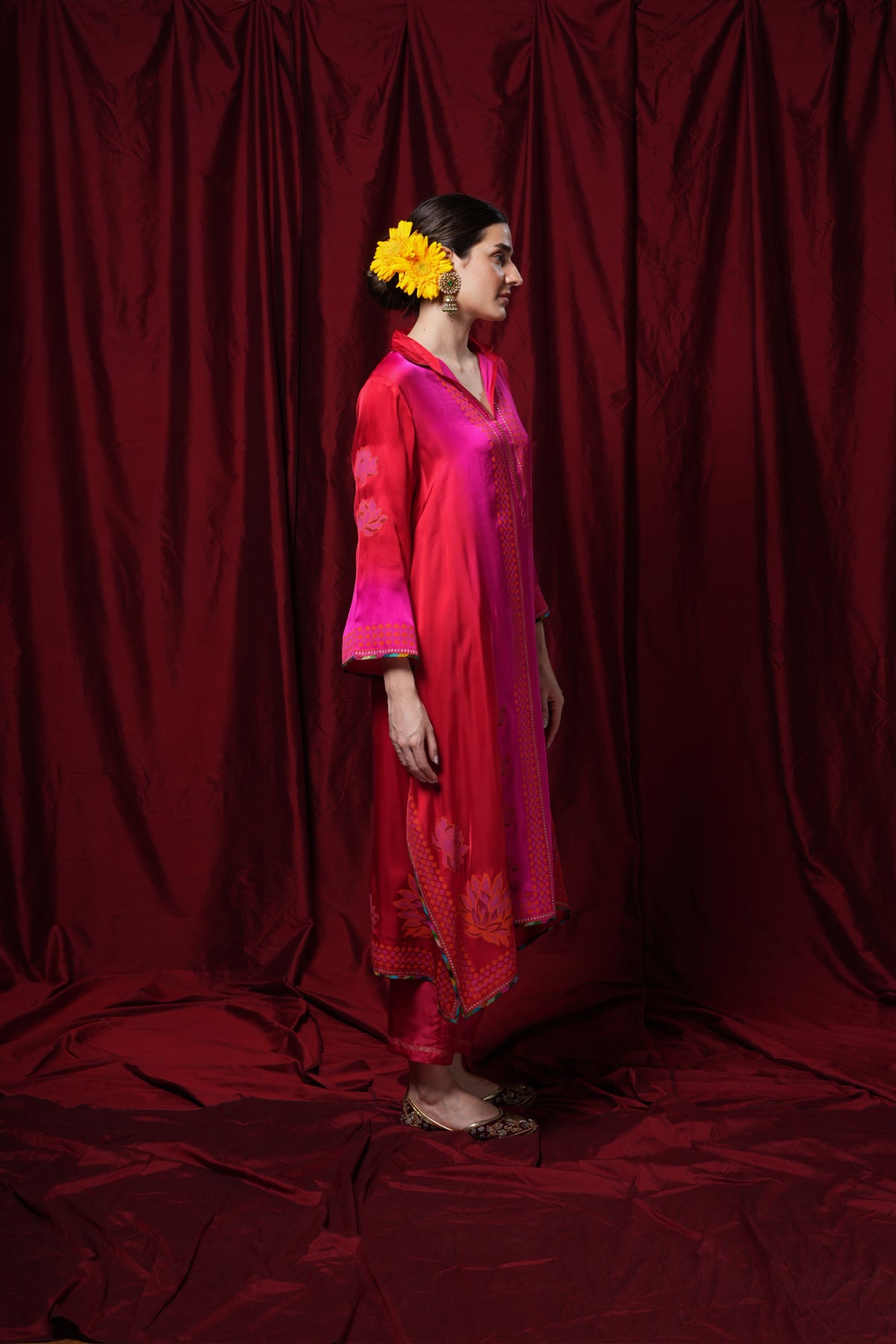 Fuchsia Pink Modal Gota Embroidered & Block Printed Kaftan Tunic