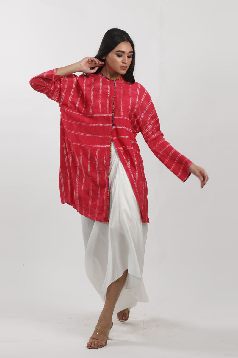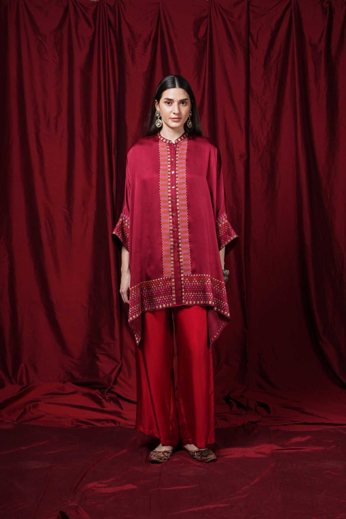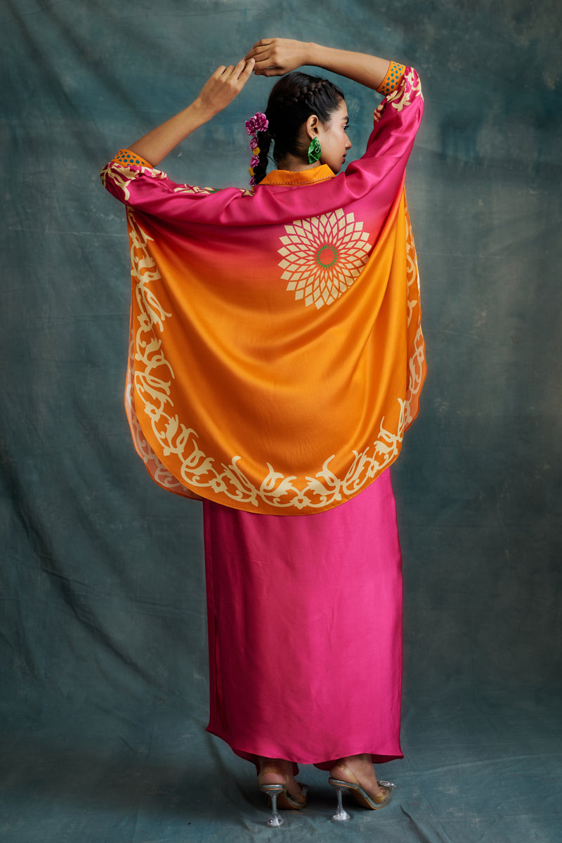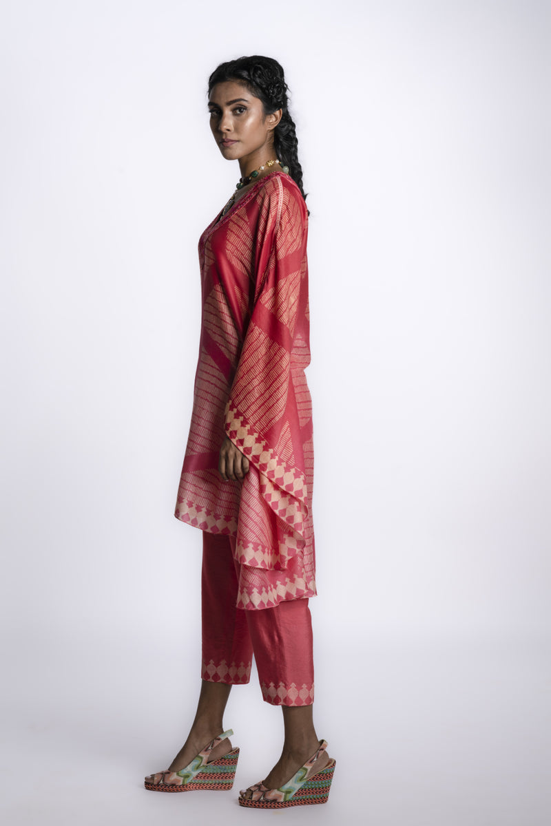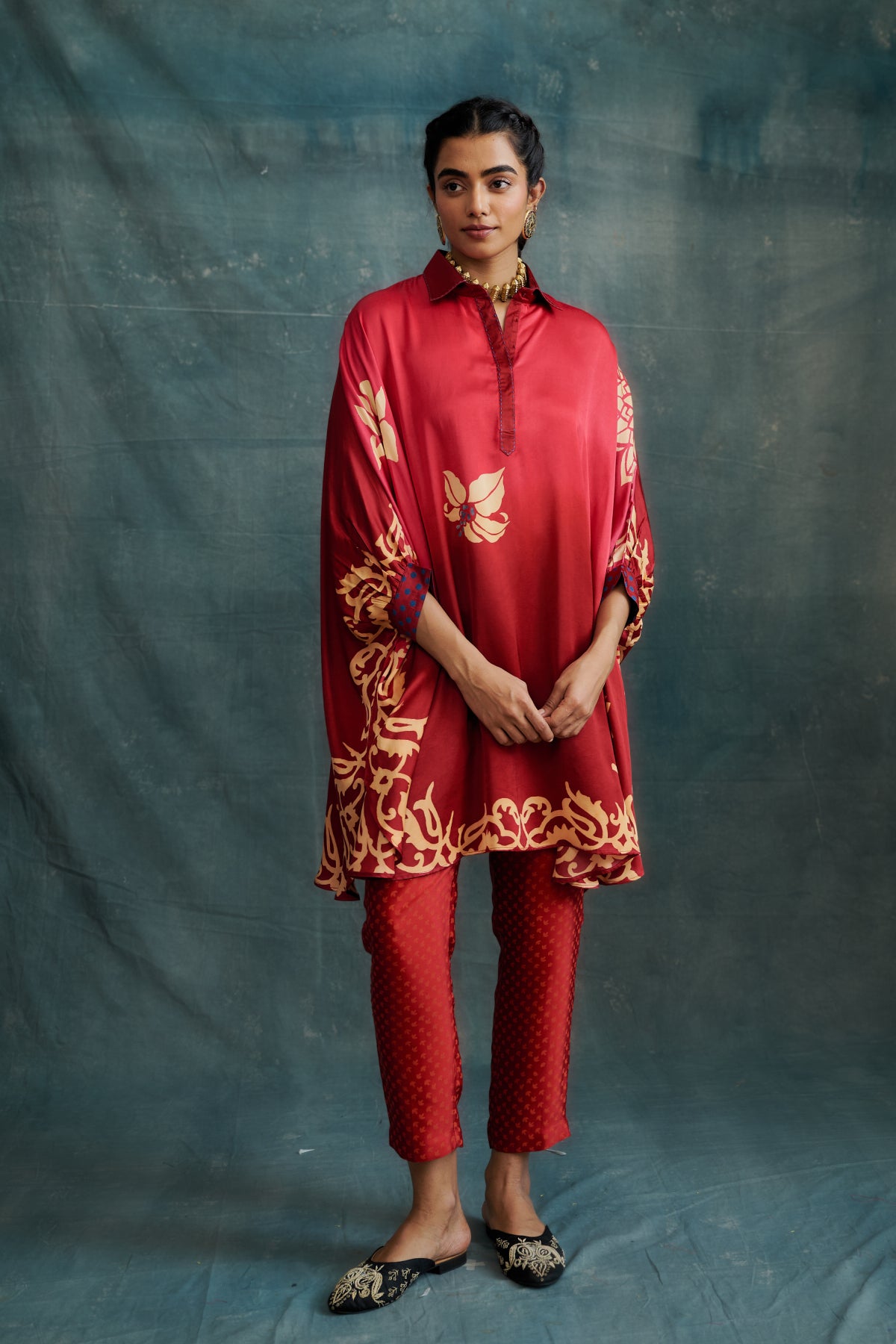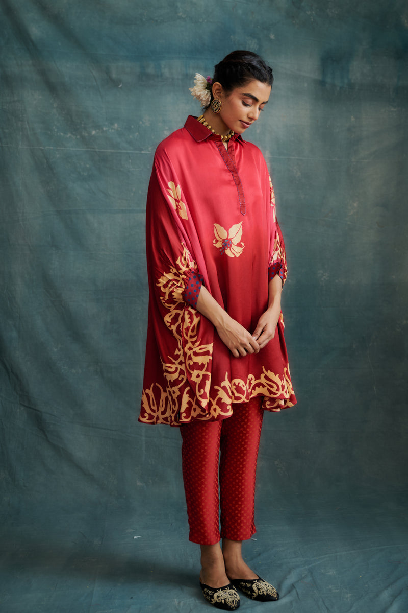 Fuchsia Pink Modal Gota Embroidered & Block Printed Kaftan Tunic
