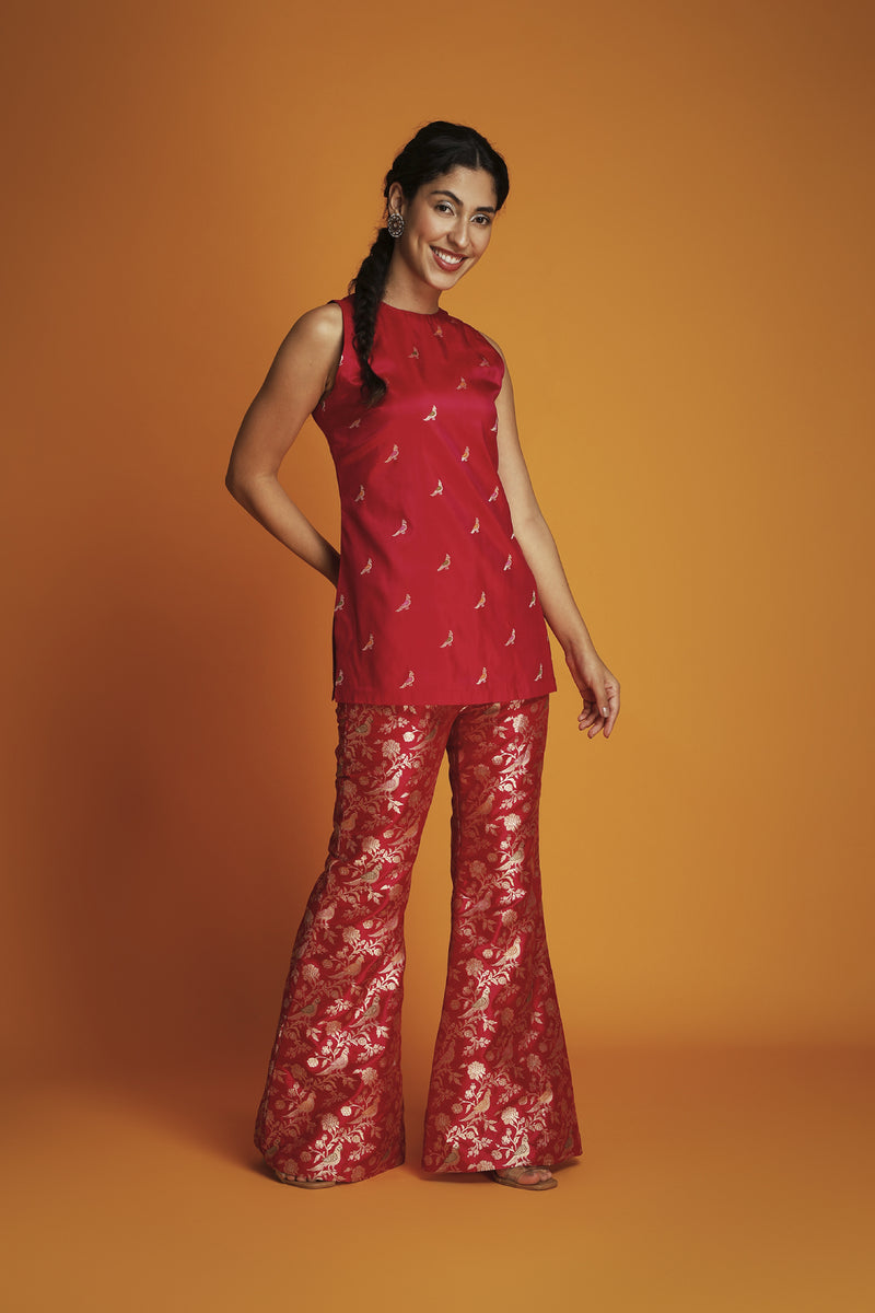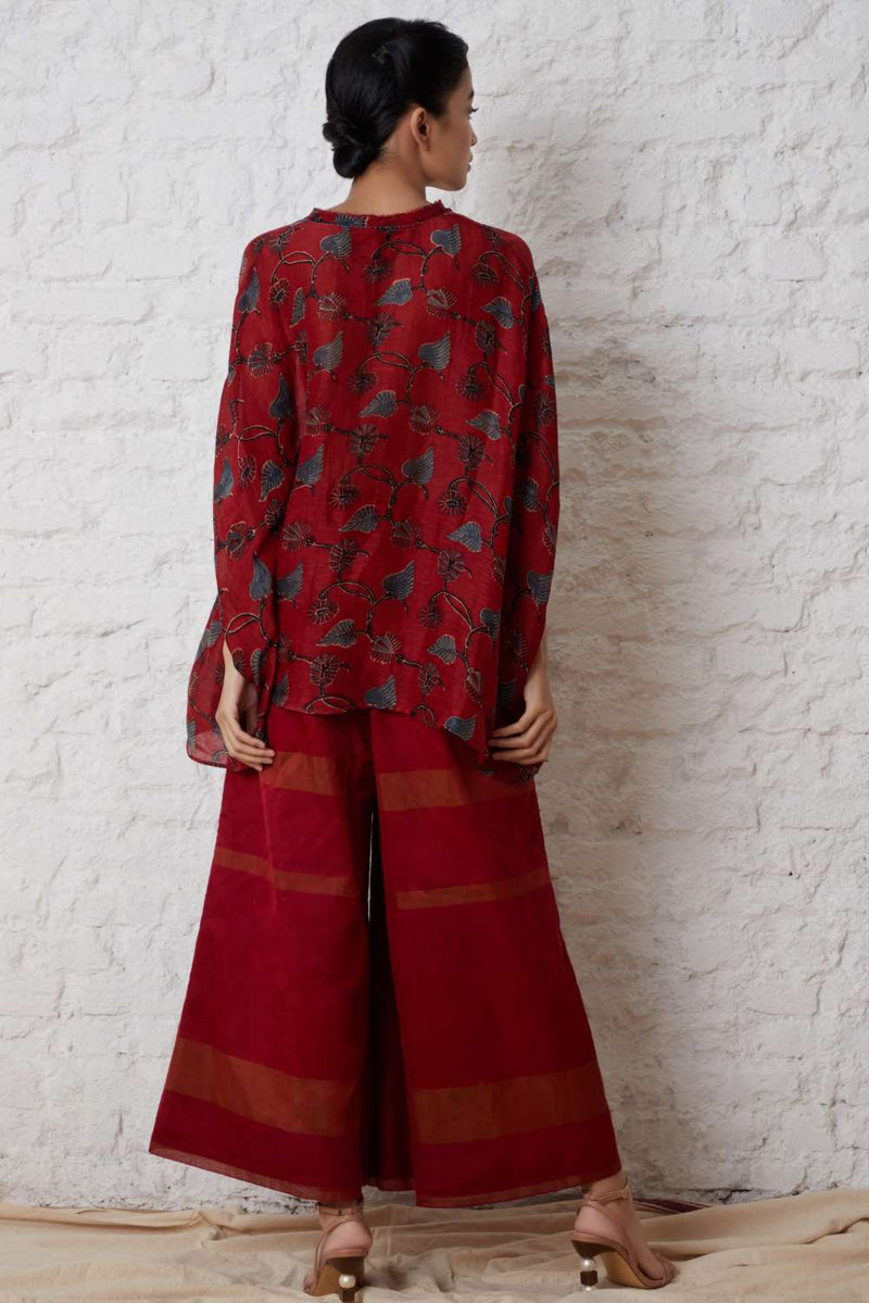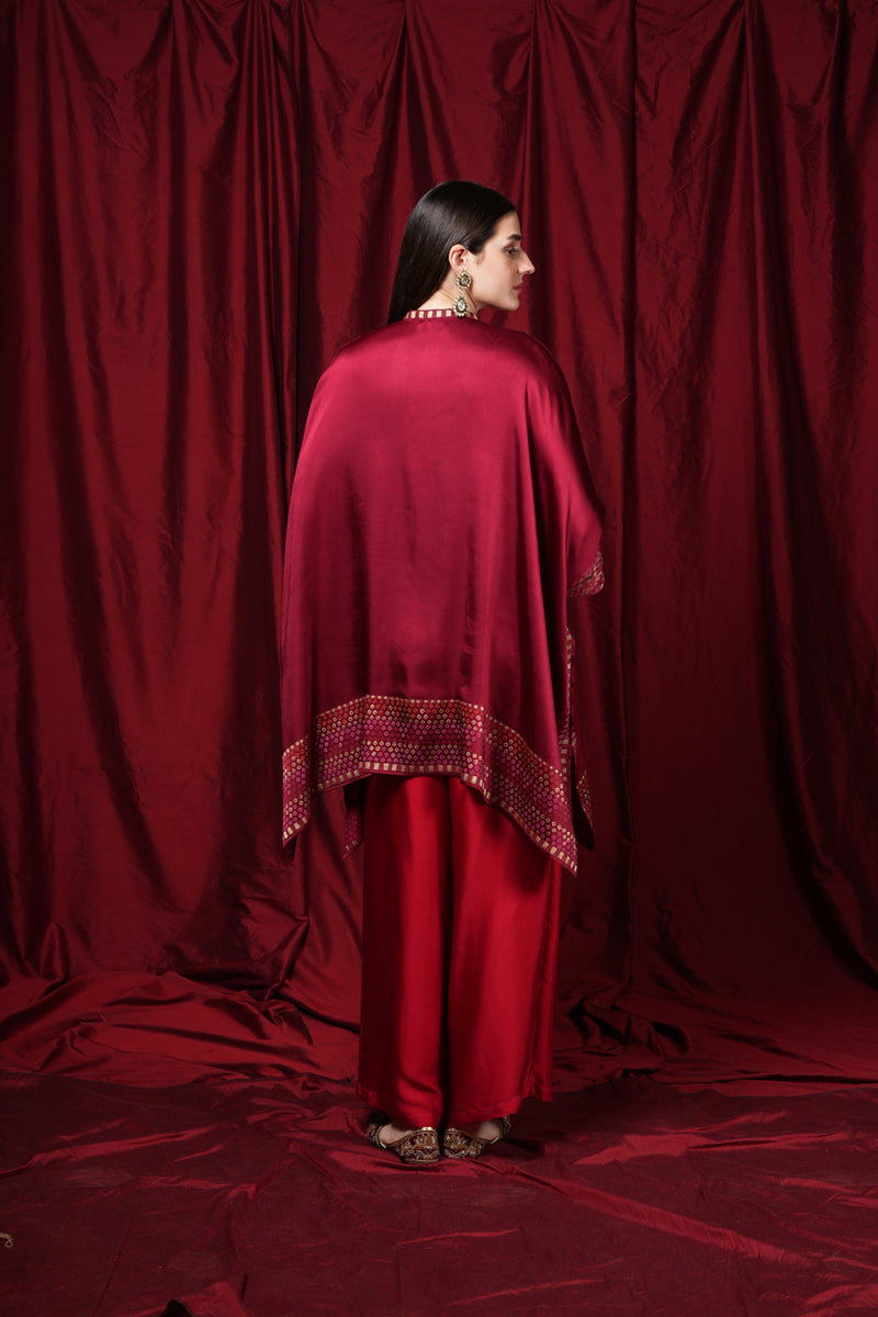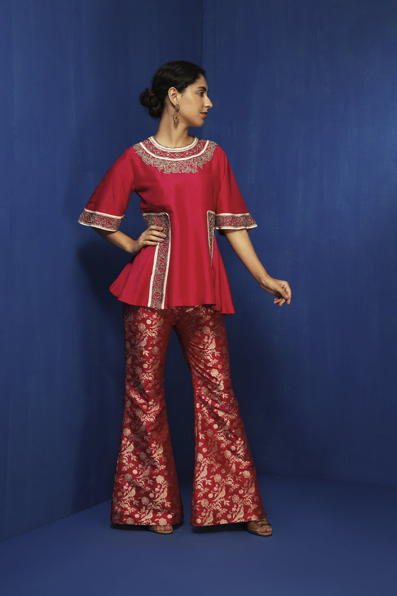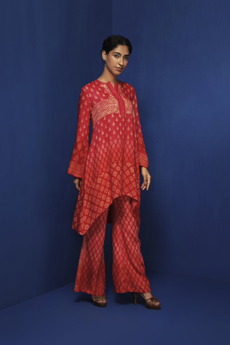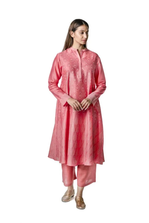 Fuchsia Pink Modal Gota Embroidered & Block Printed Kaftan Tunic