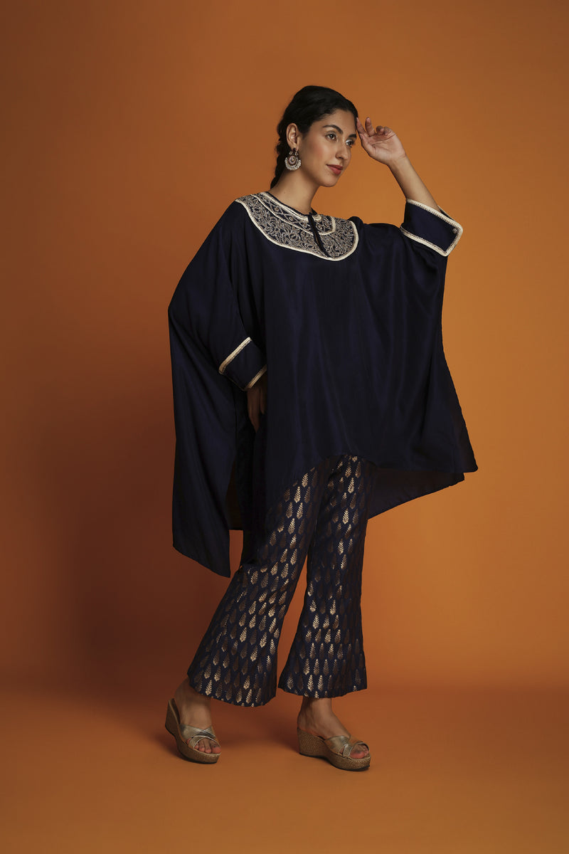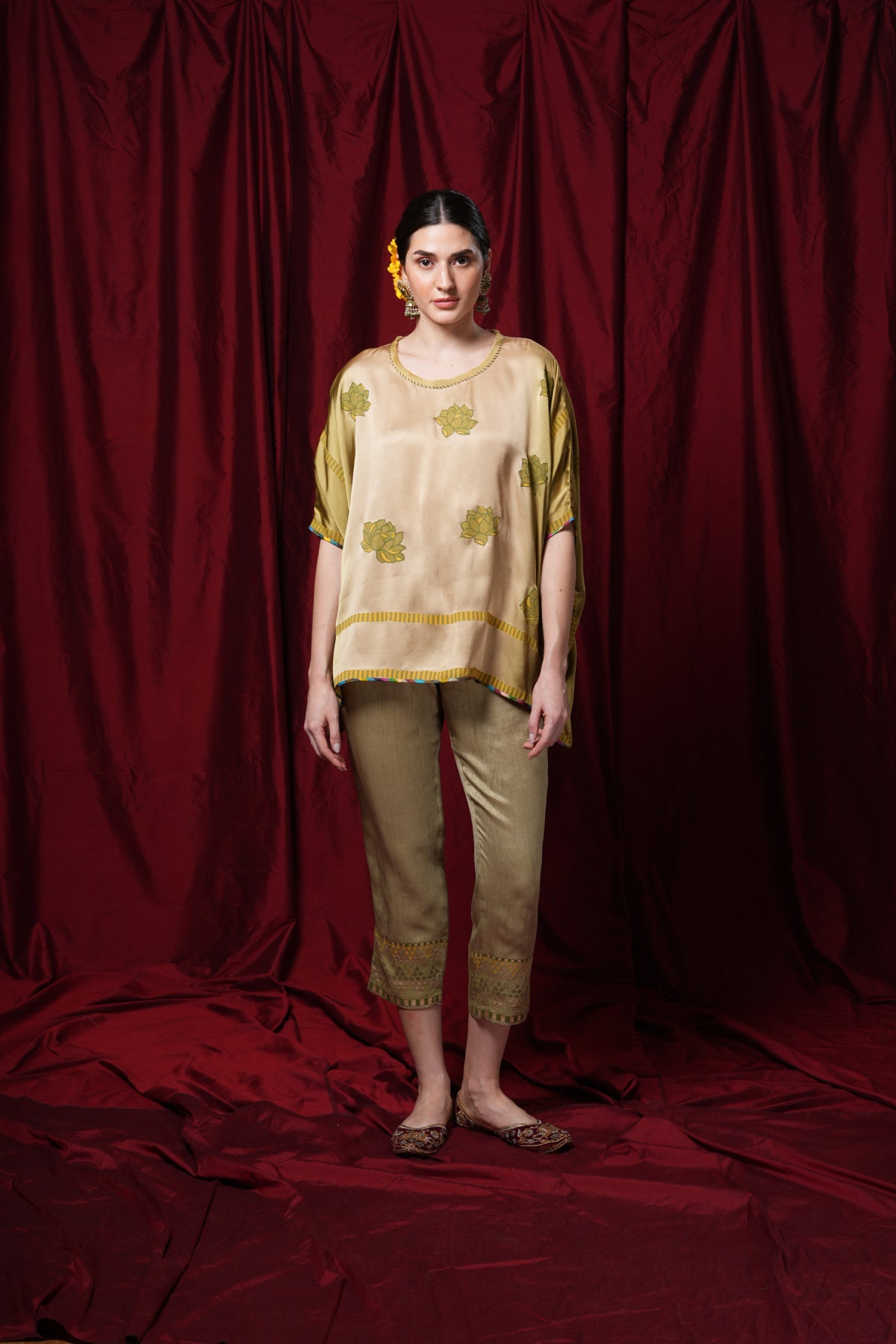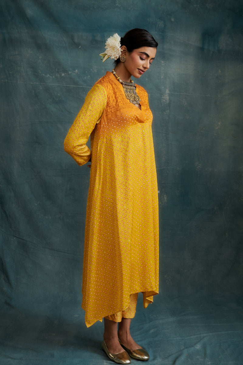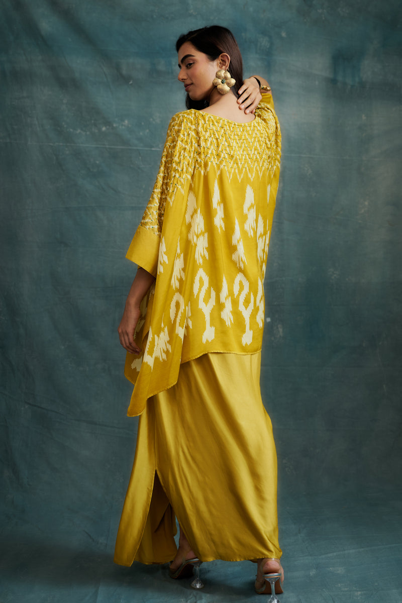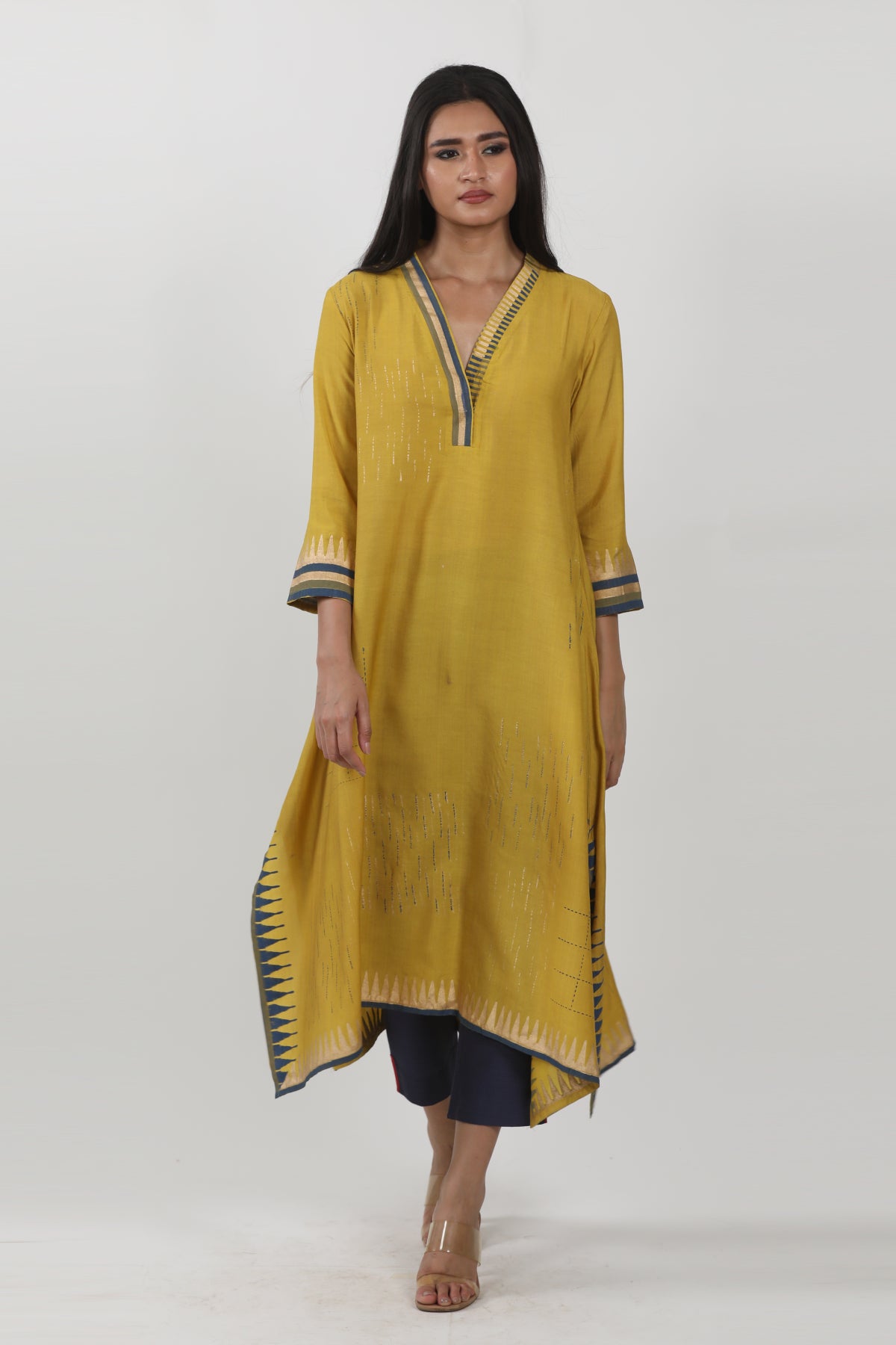 Mustard Modal Gota Embroidered & Block Printed Kaftan Tunic
