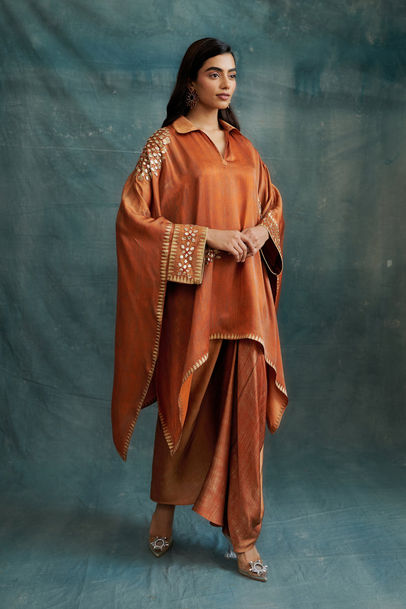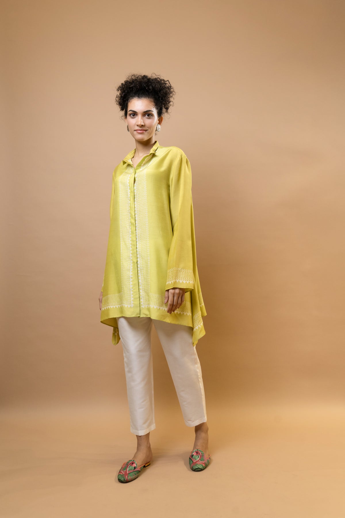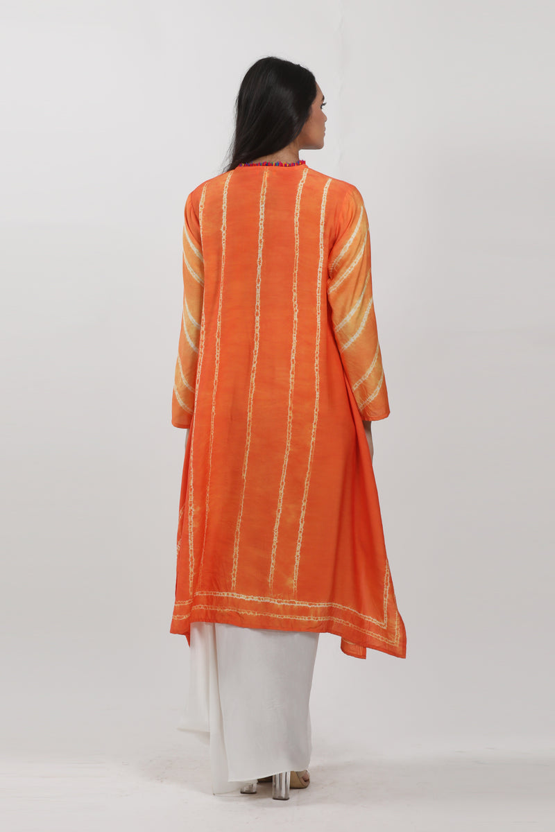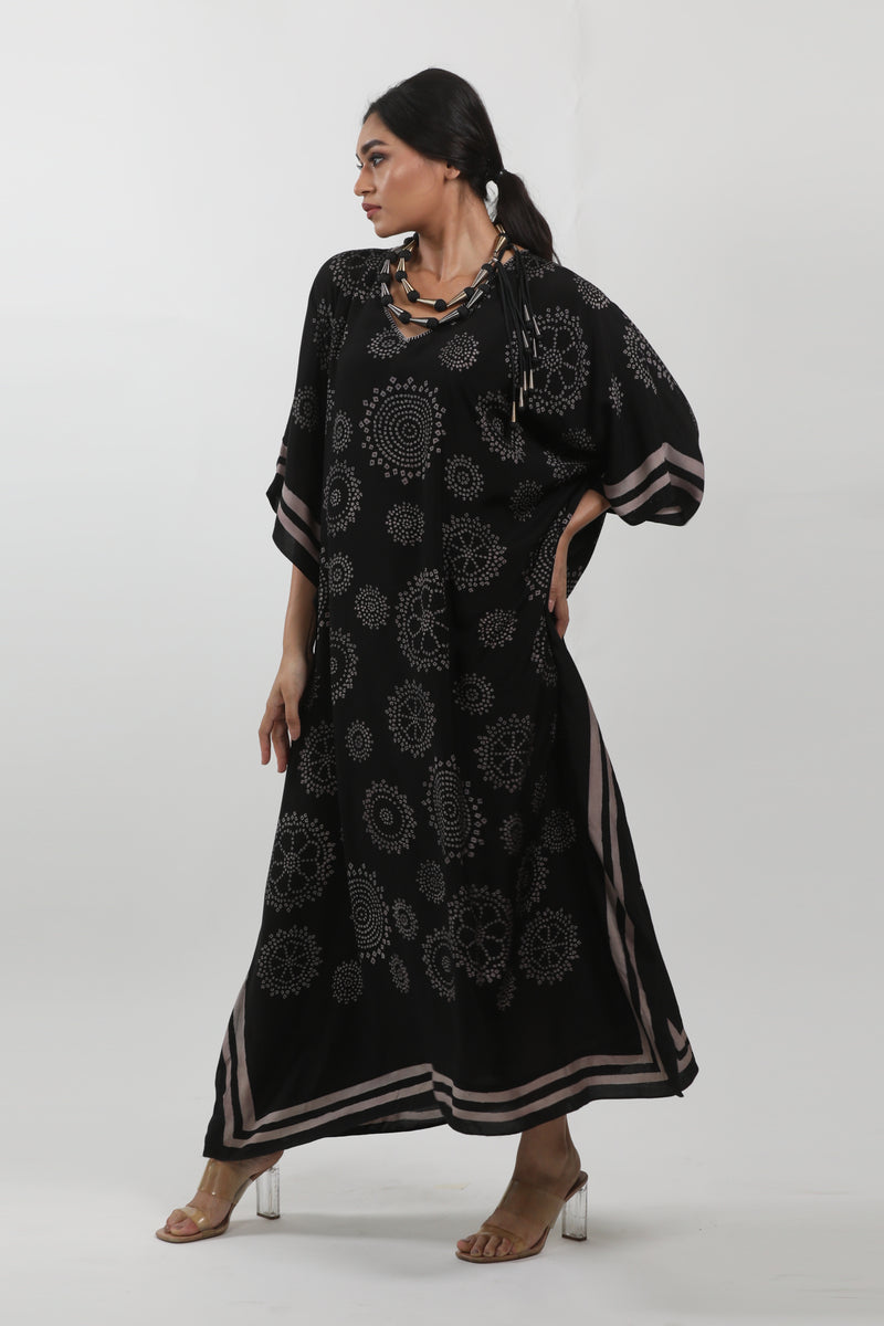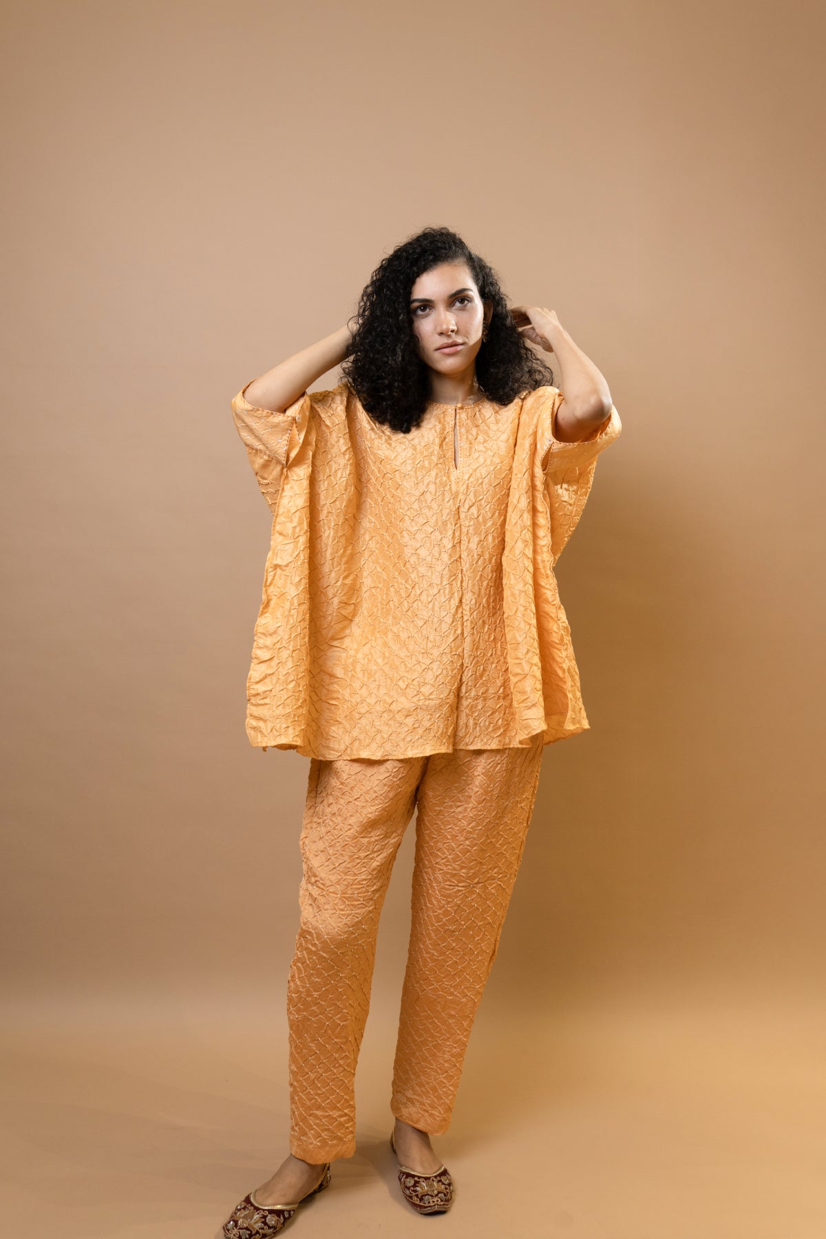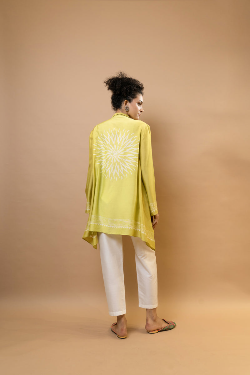 Mustard Modal Gota Embroidered & Block Printed Kaftan Tunic
