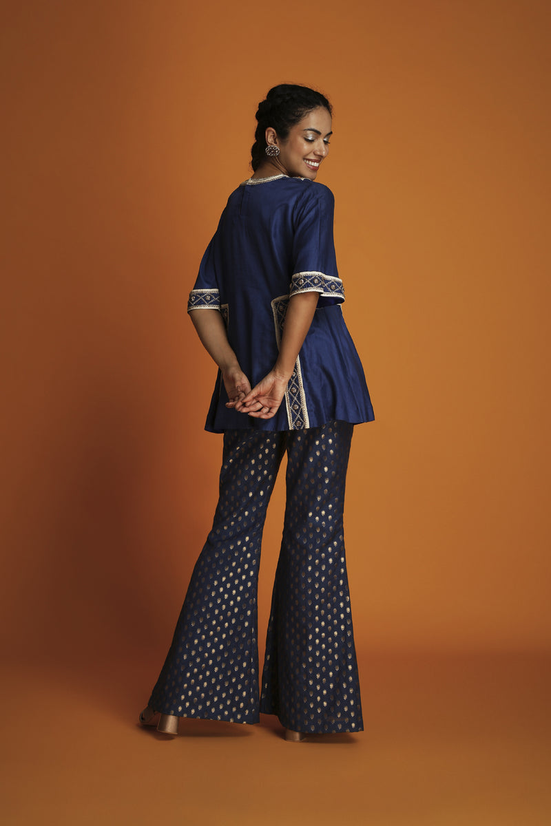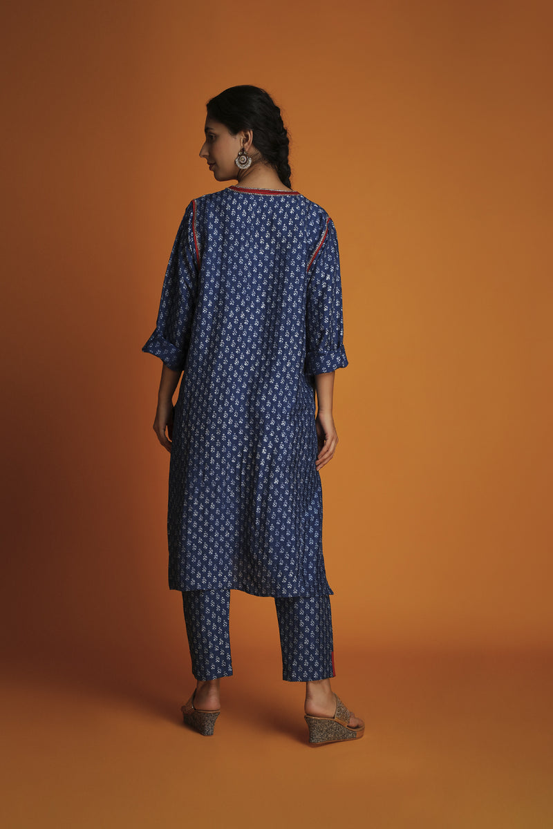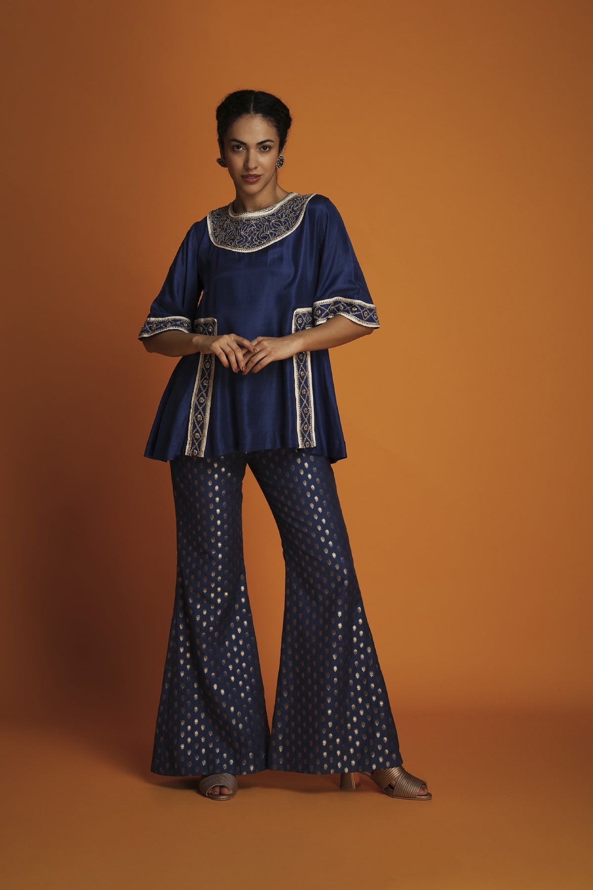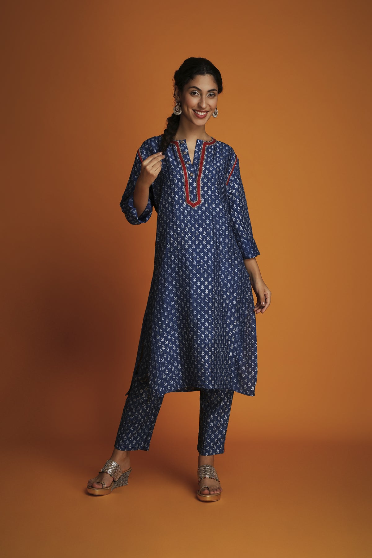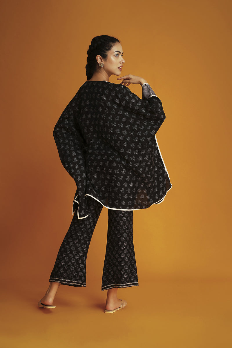 Mustard Modal Gota Embroidered & Block Printed Kaftan Tunic