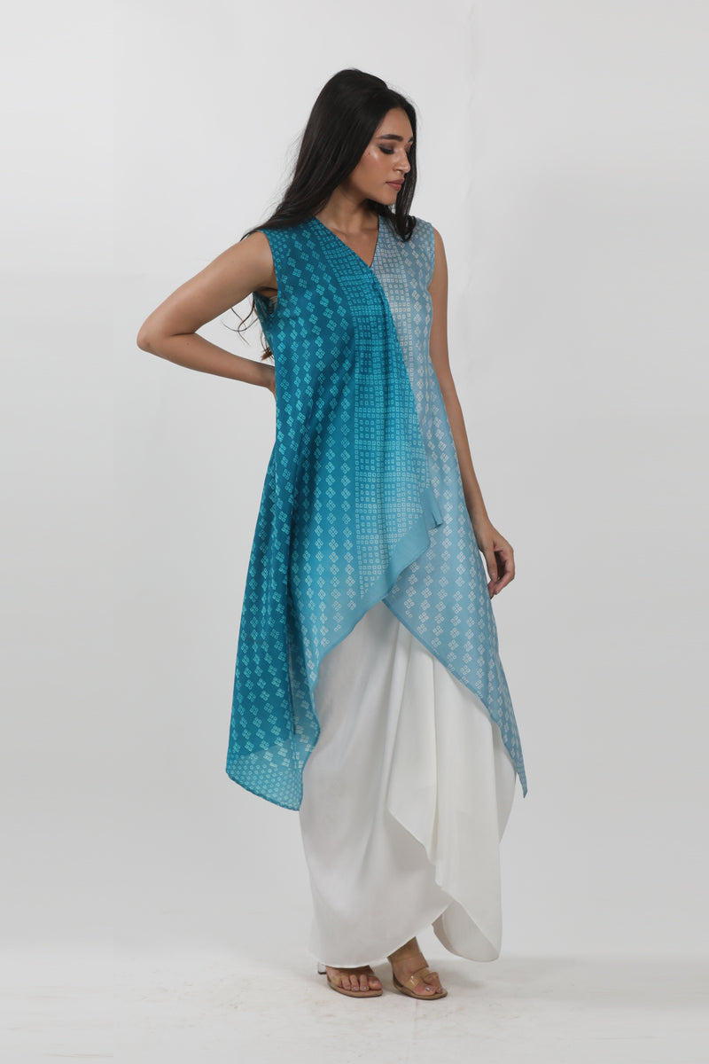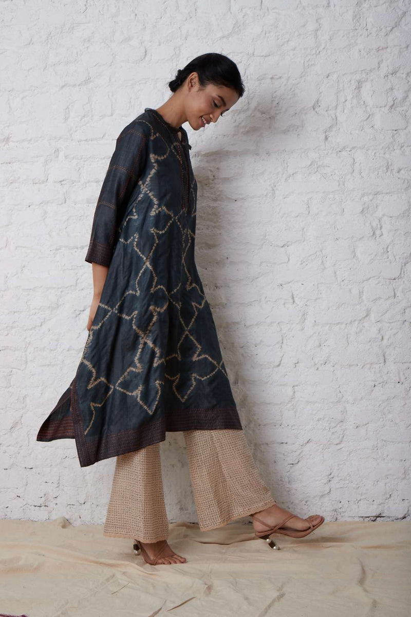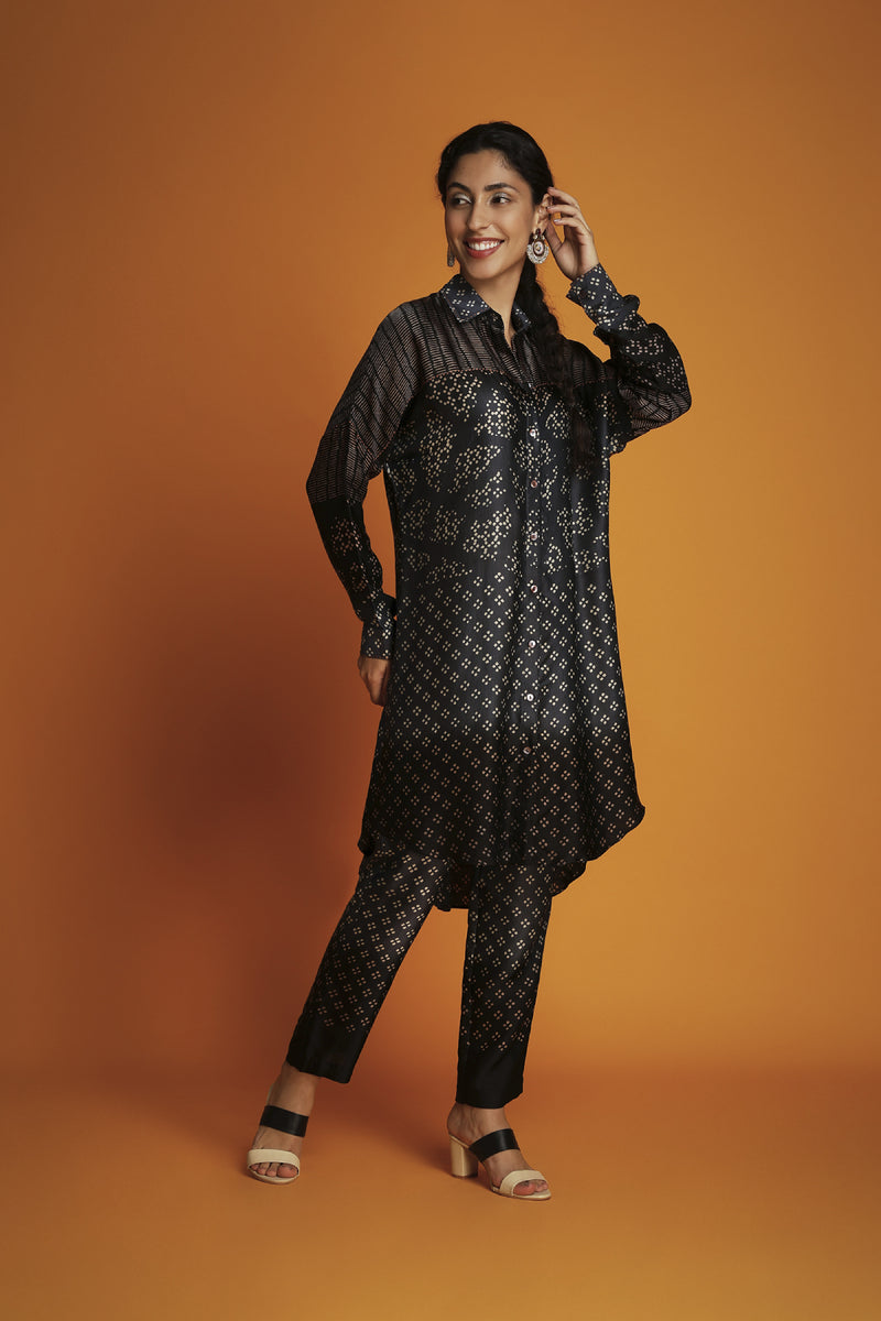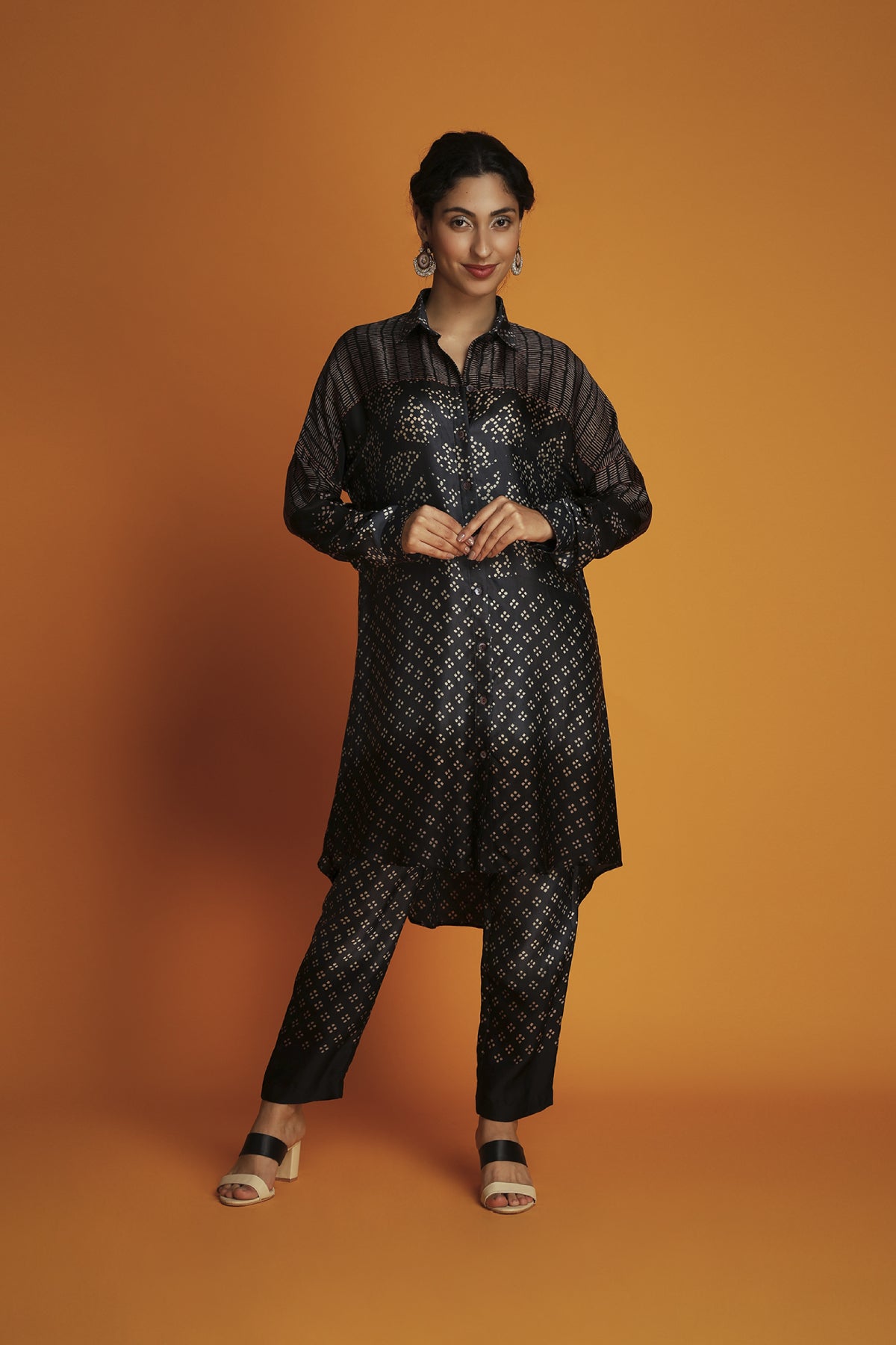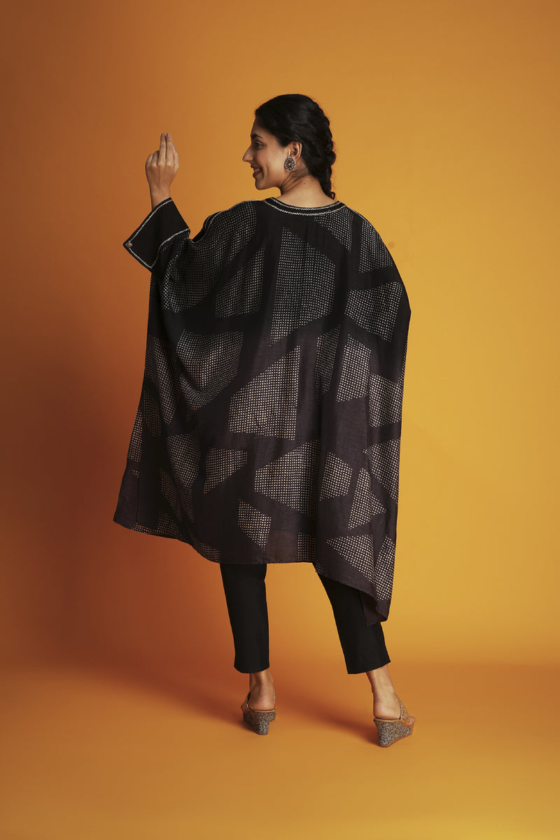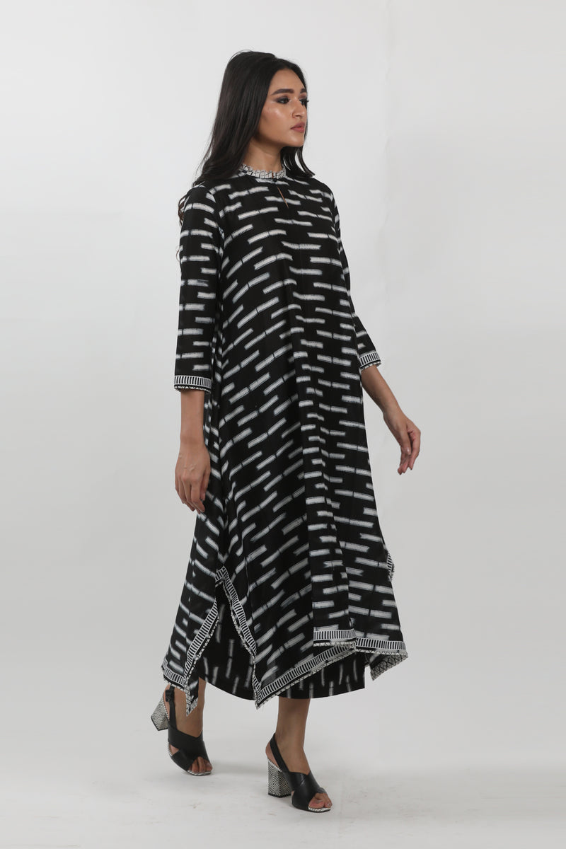 Black & White Chanderi Shibori Tie-Dye A-Line Tunic