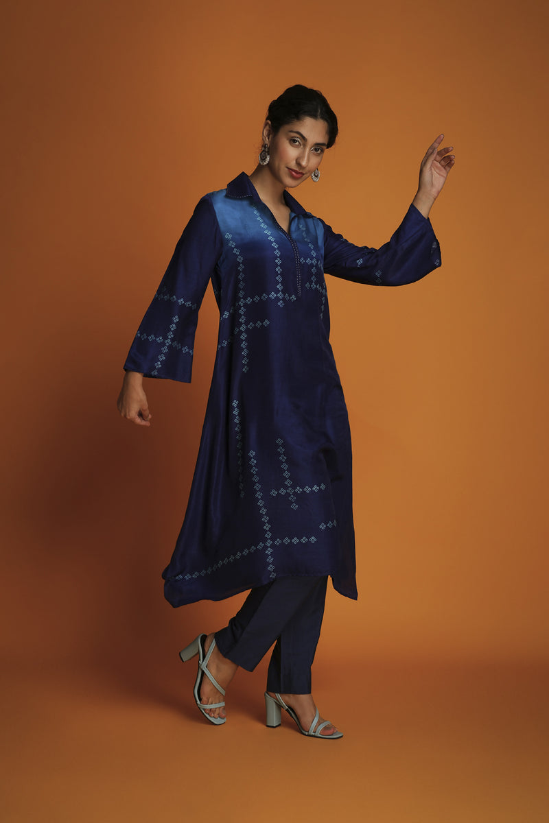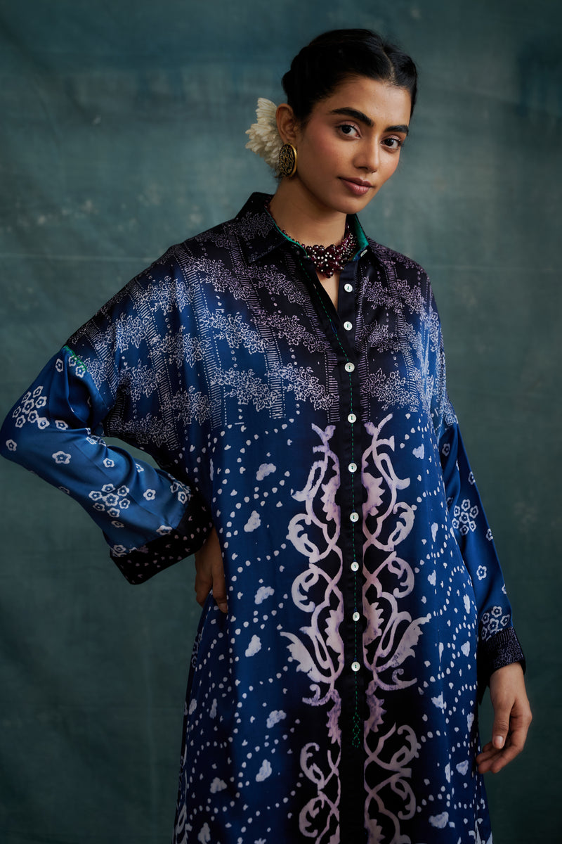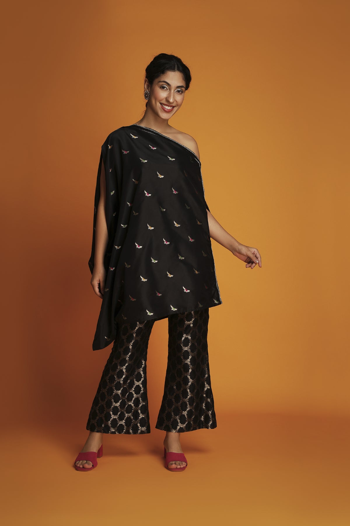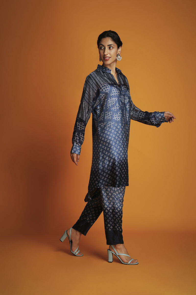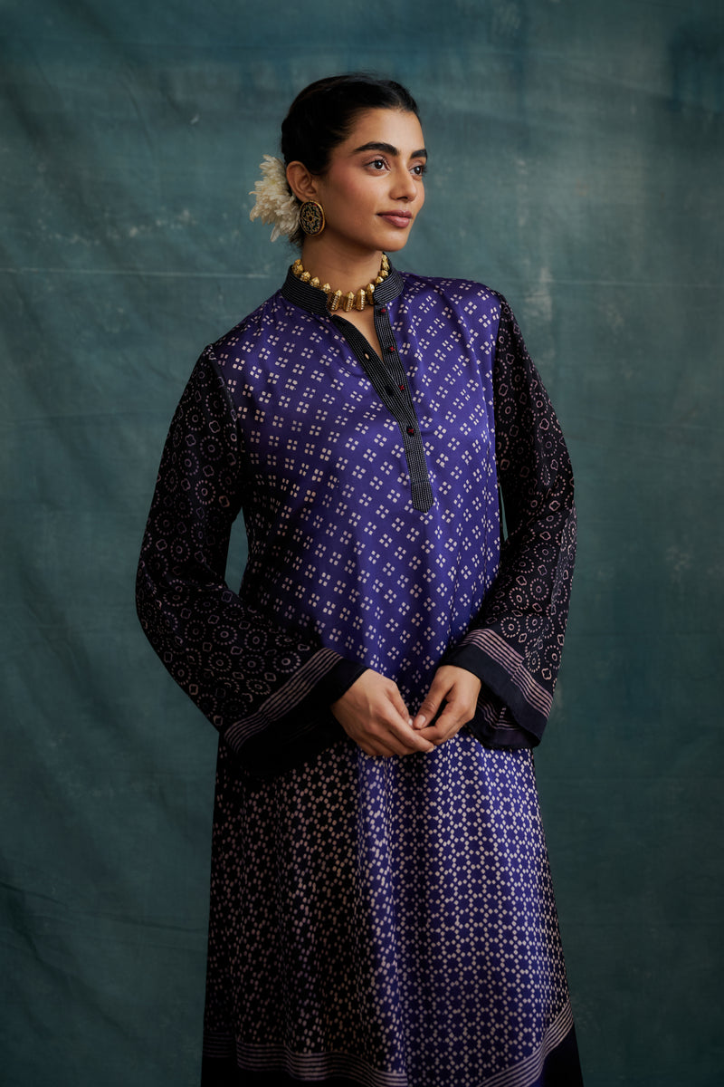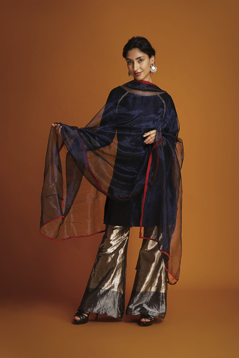 Black & White Chanderi Shibori Tie-Dye A-Line Tunic