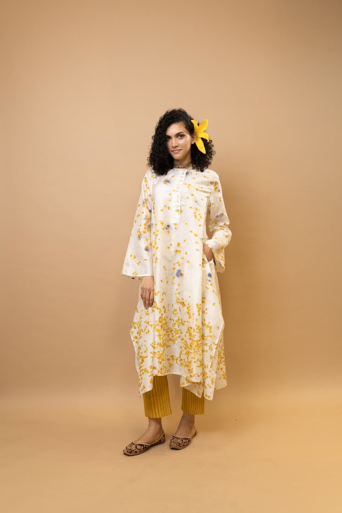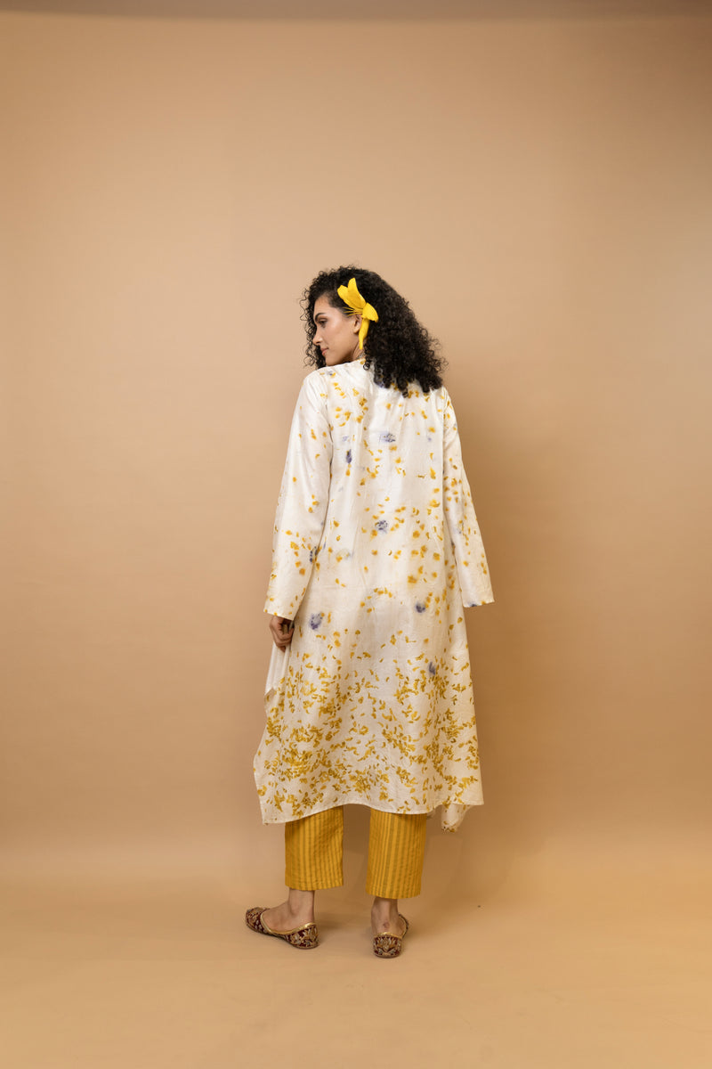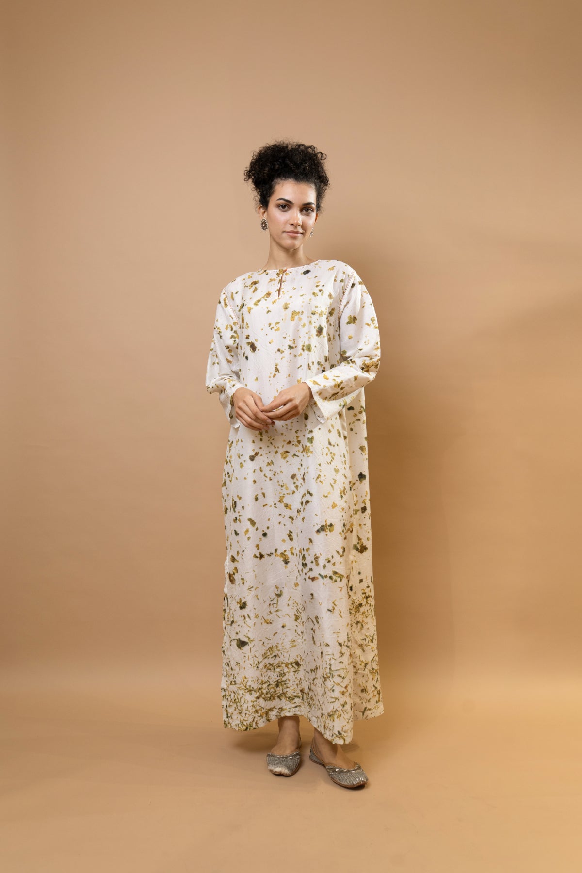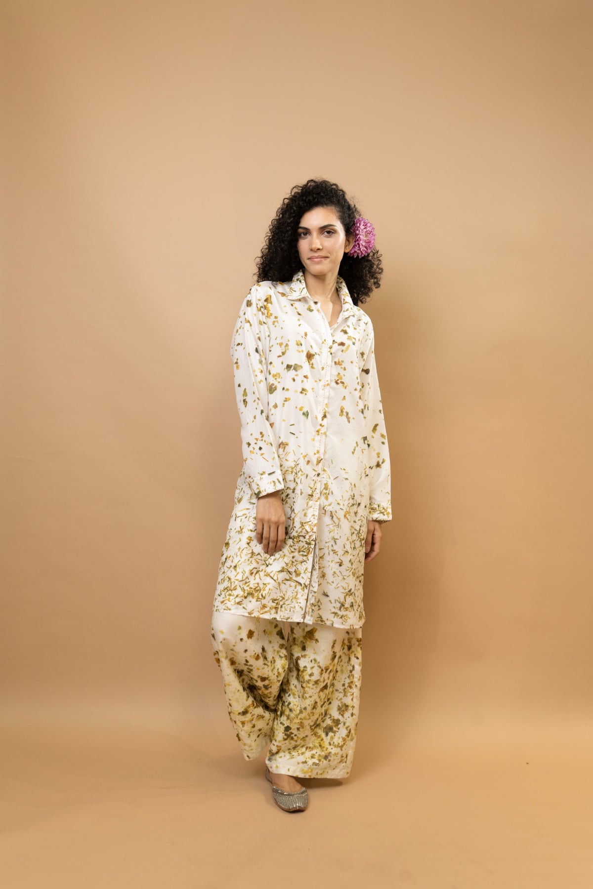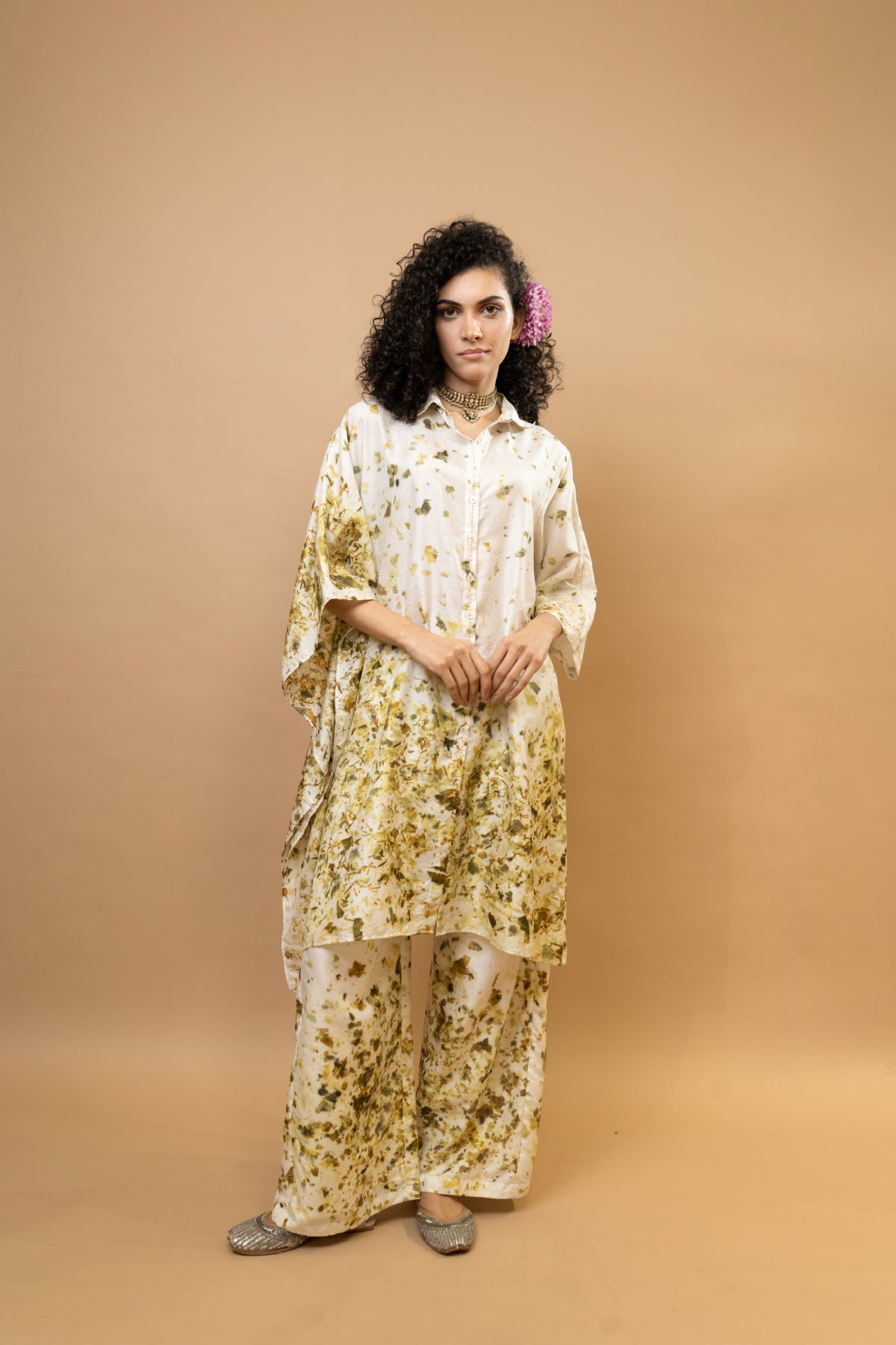 Ivory Pure Silk & Cotton Silk Printed Long Kaftan Set