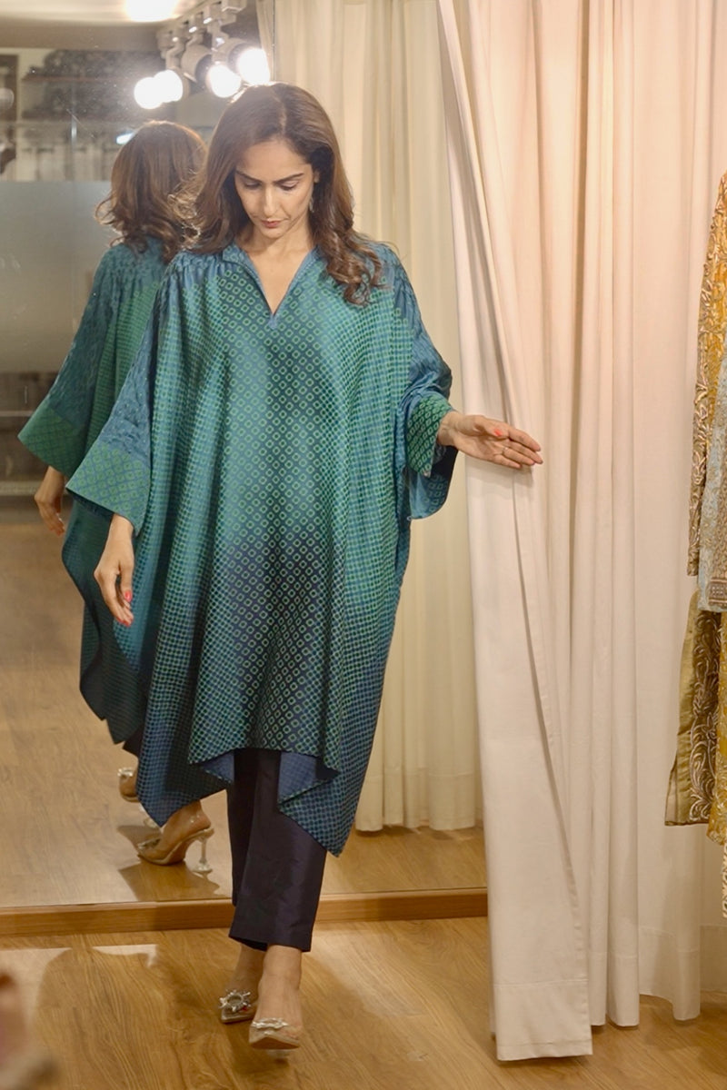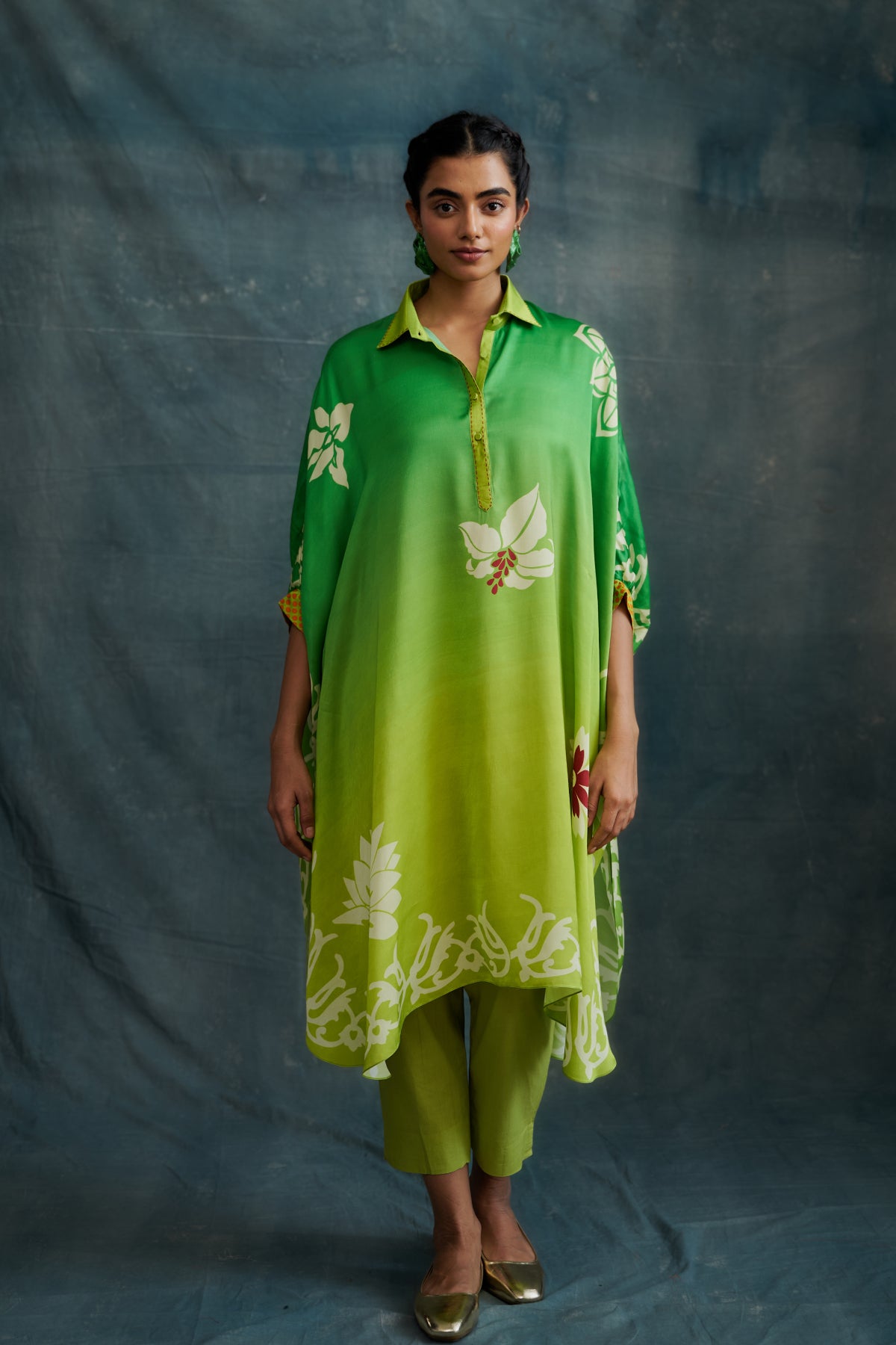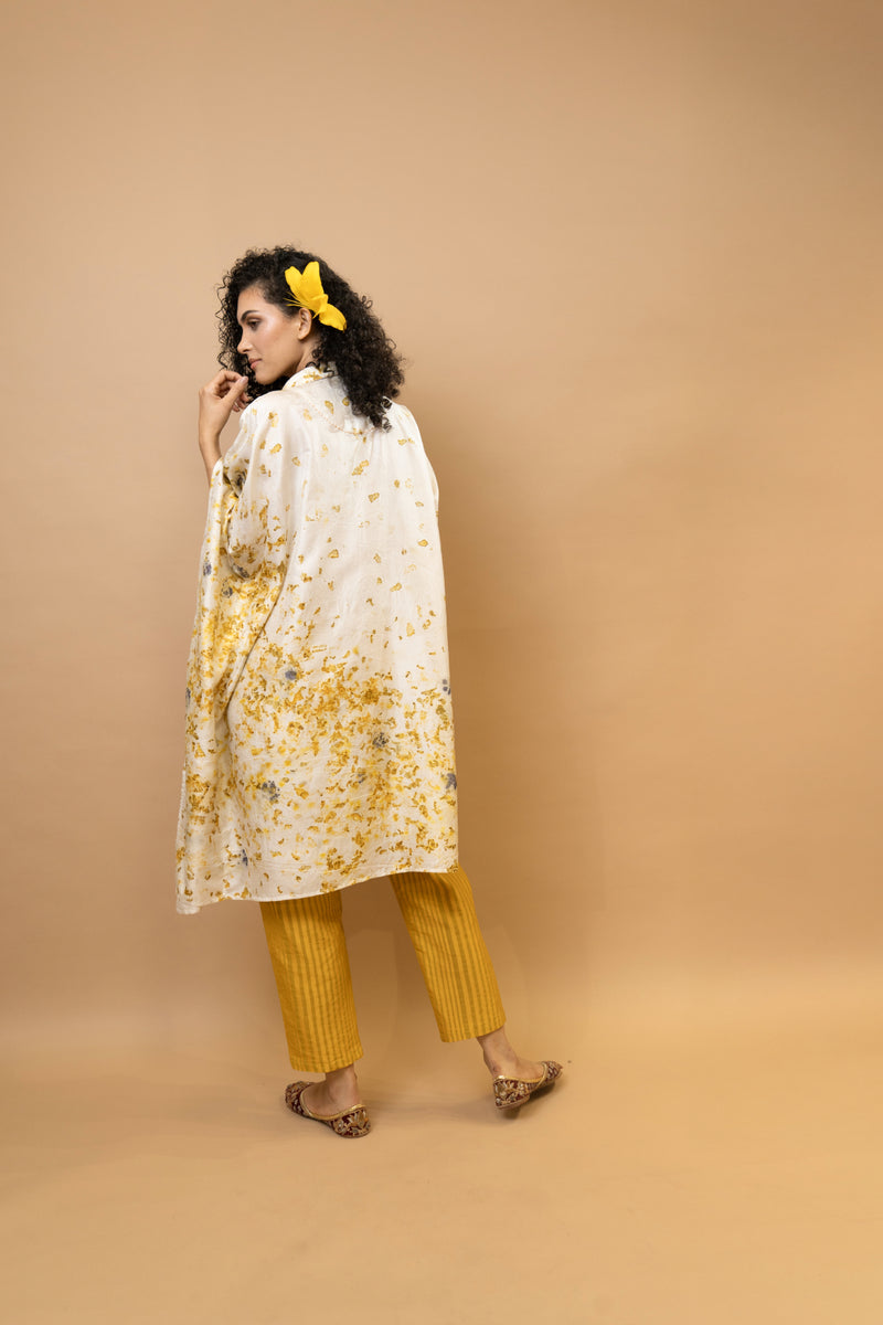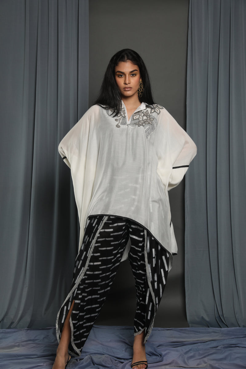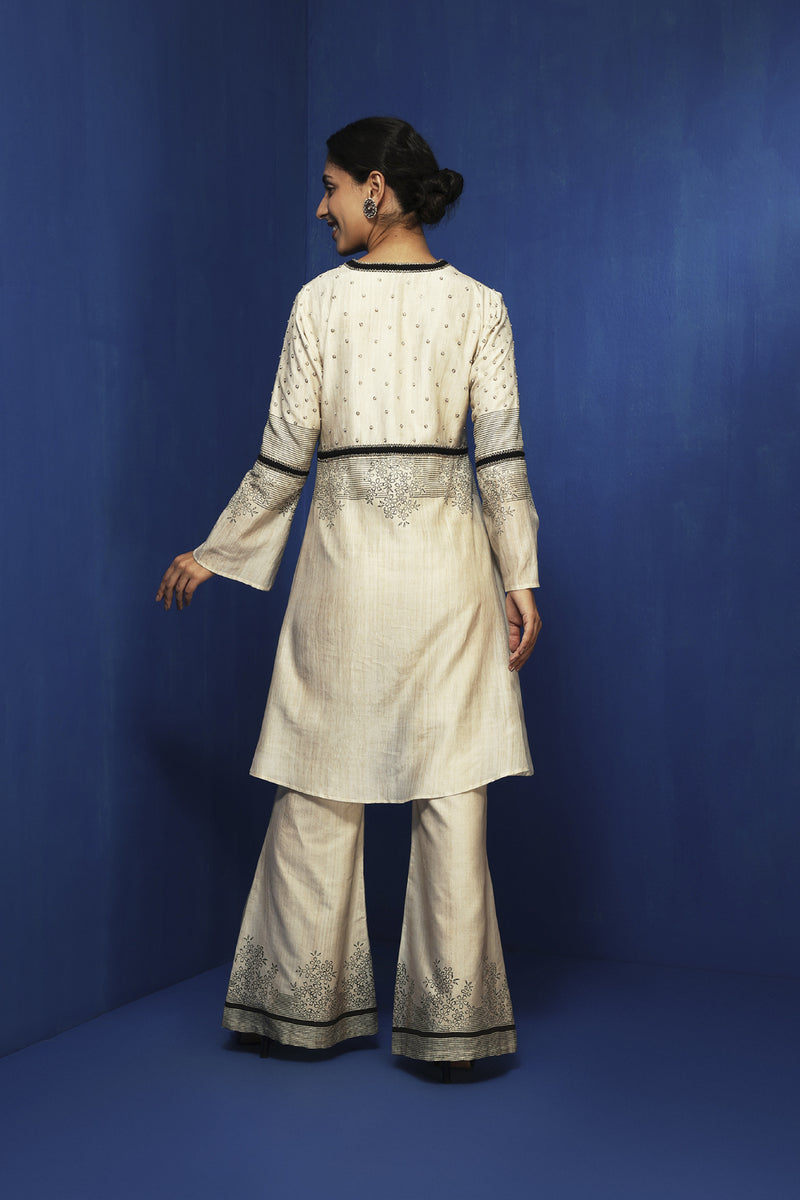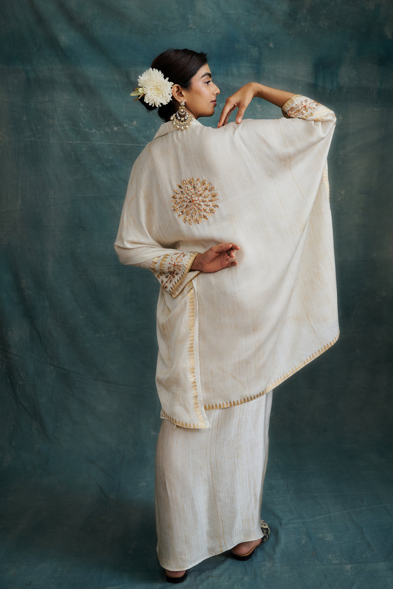Ivory Pure Silk & Cotton Silk Printed Long Kaftan Set