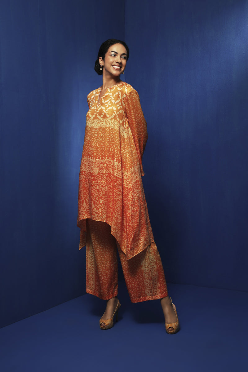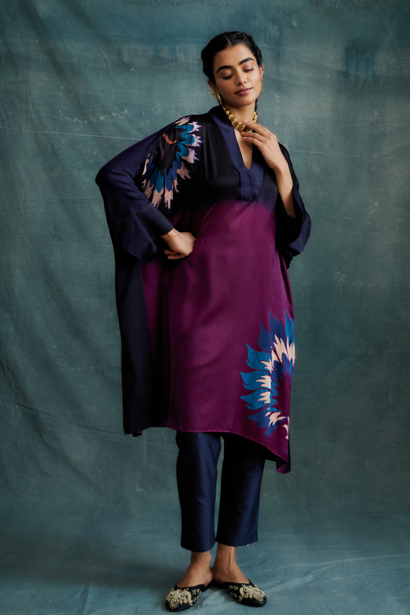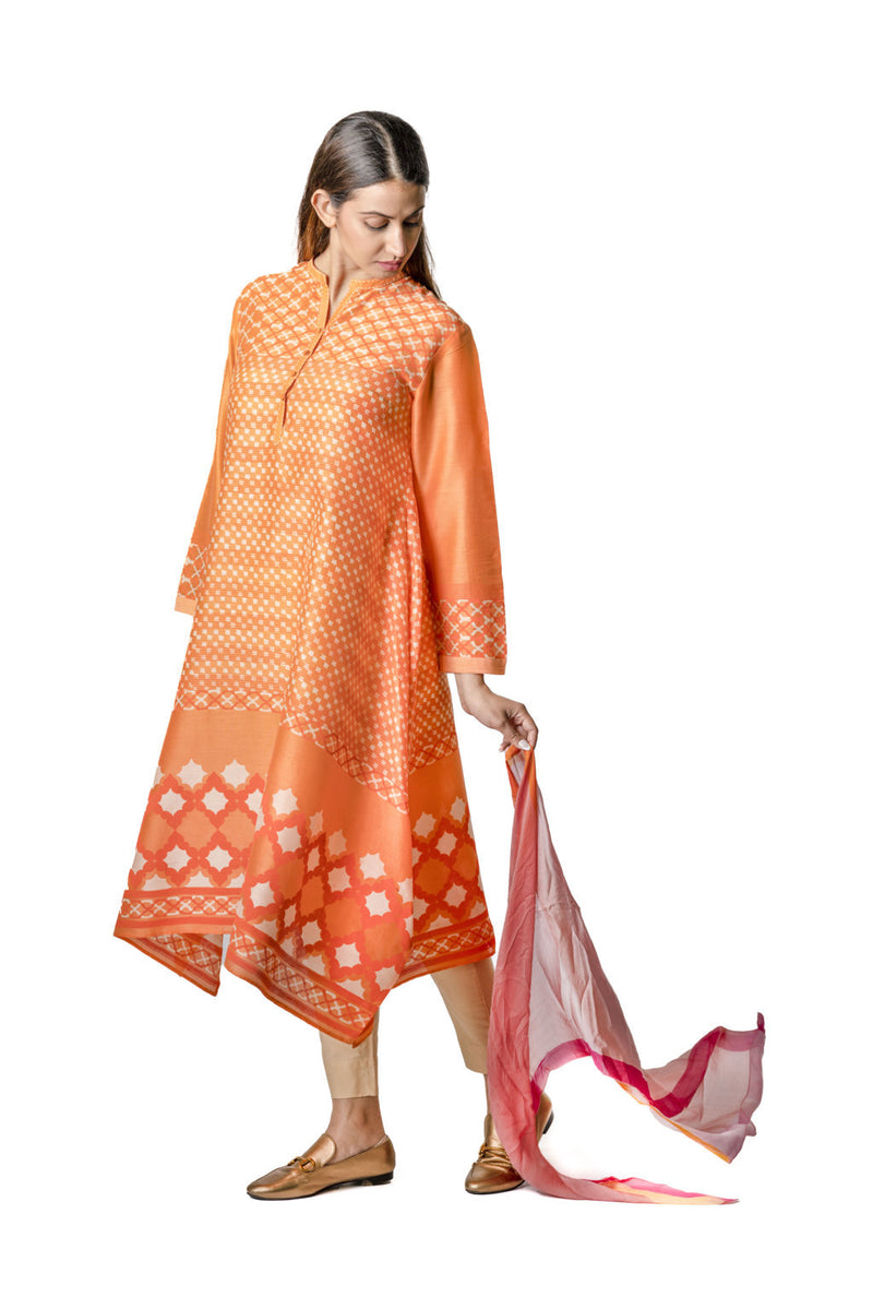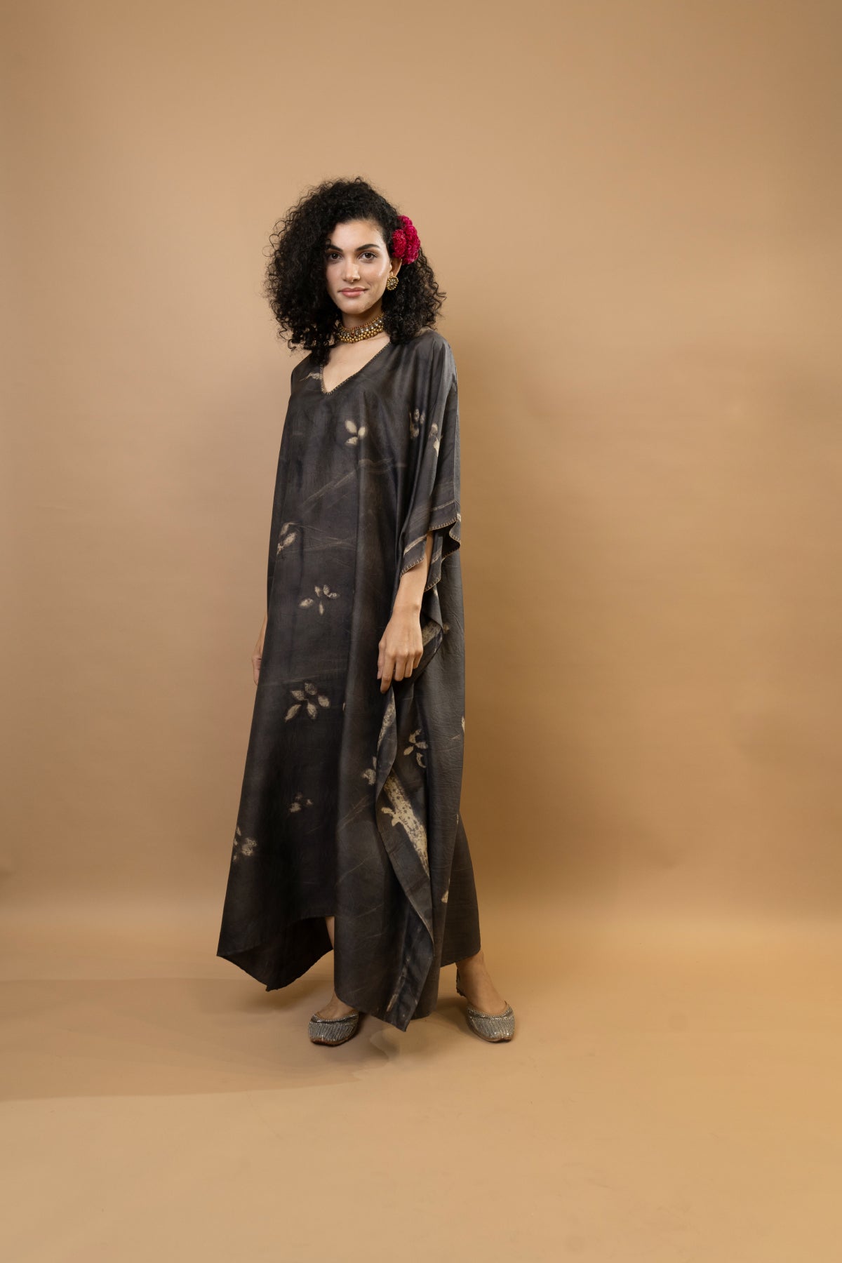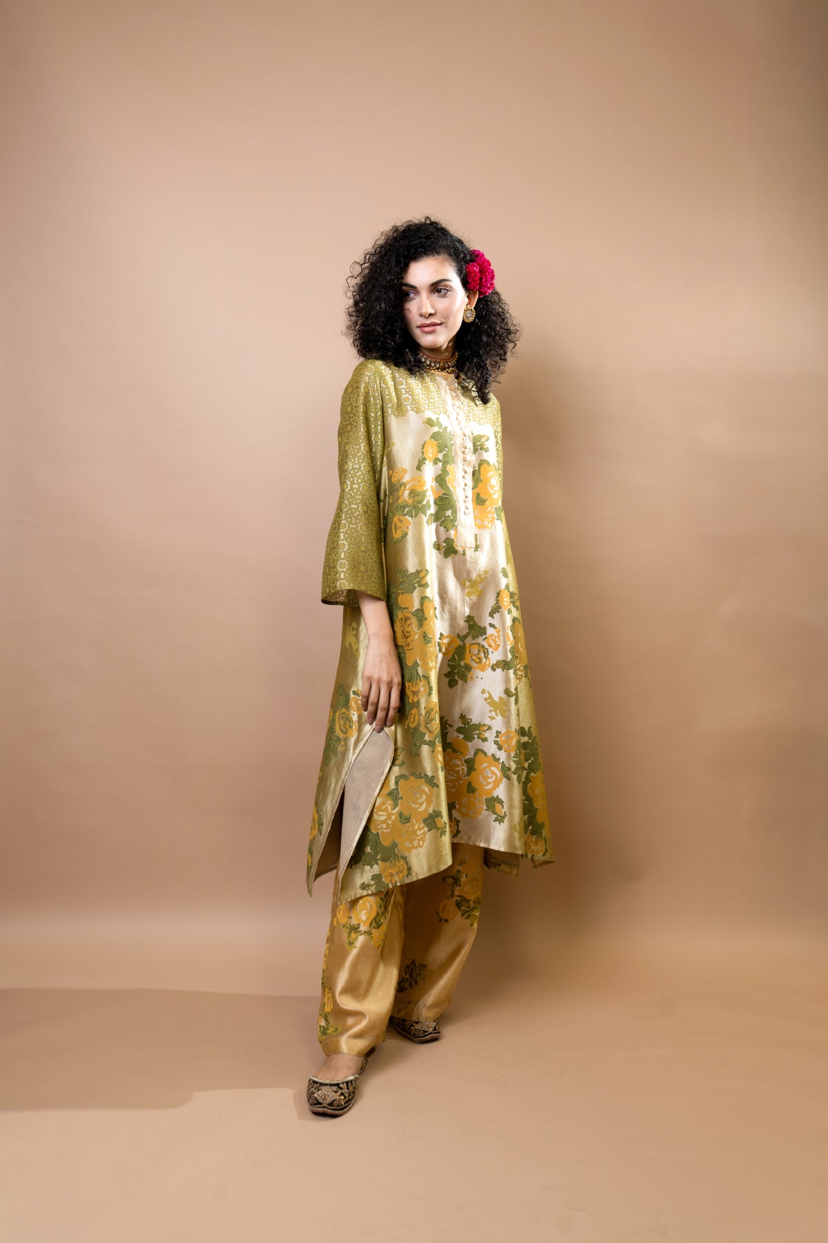 Ivory Pure Silk & Cotton Silk Printed Long Kaftan Set