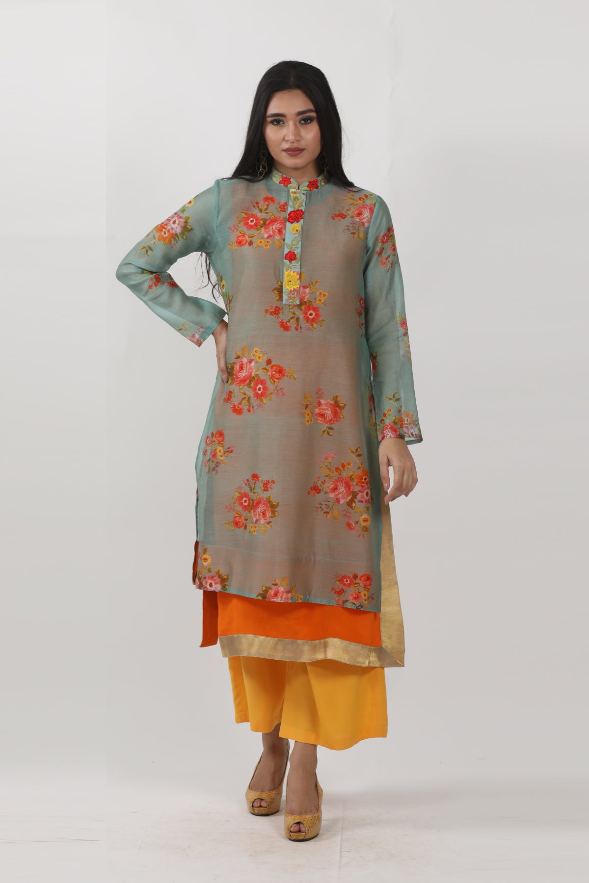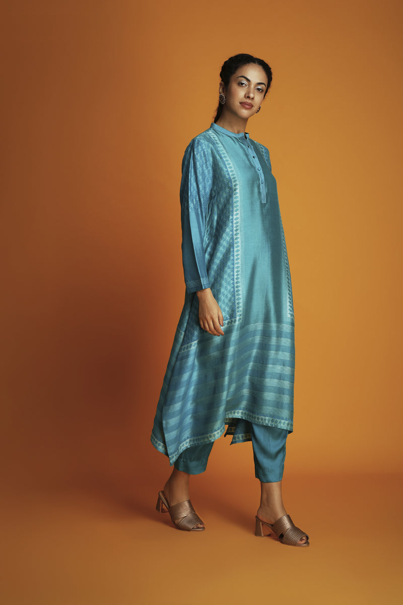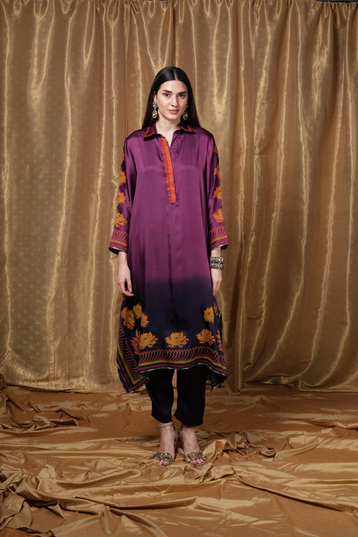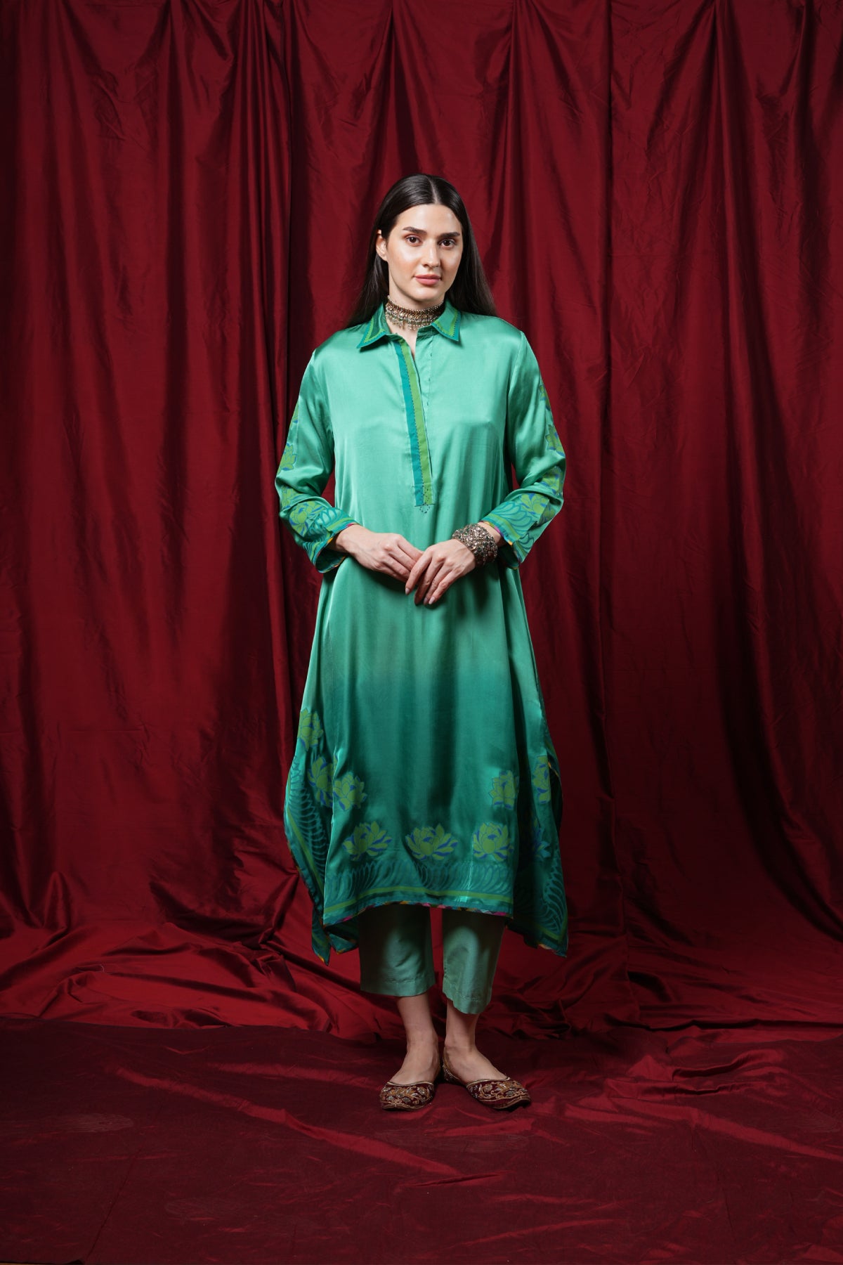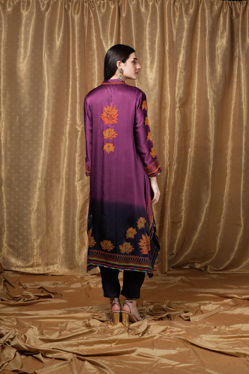 Ivory Pure Silk & Cotton Silk Printed Long Kaftan Set