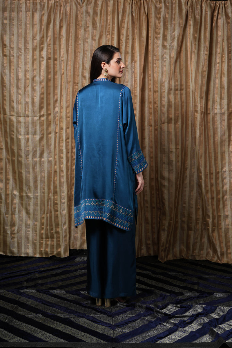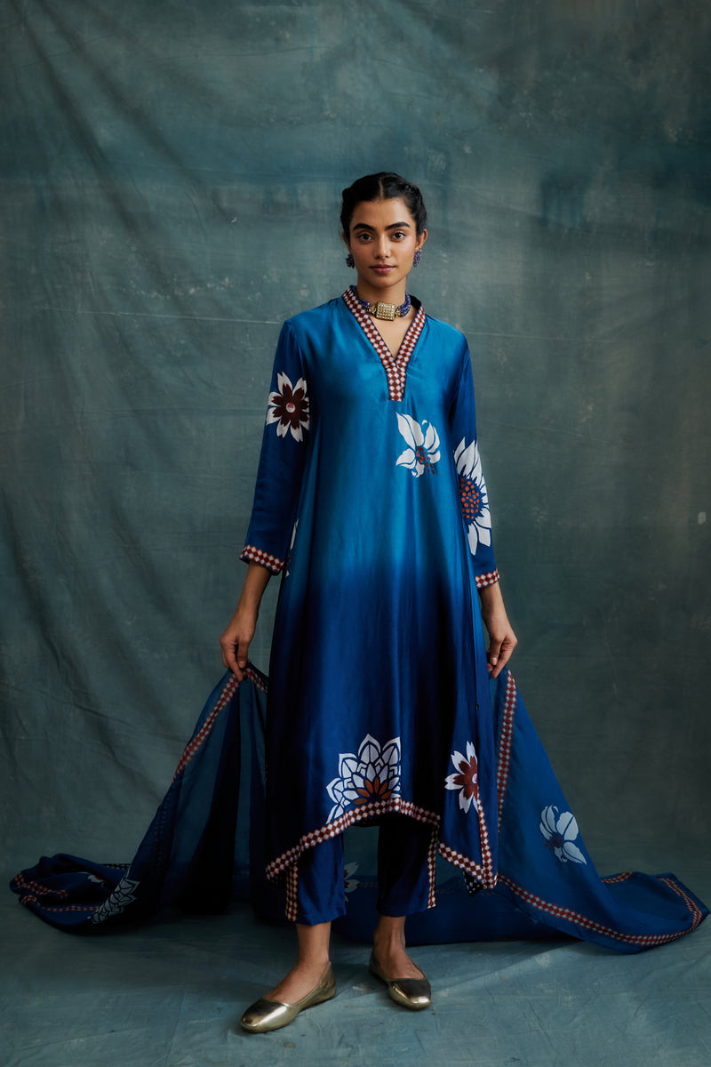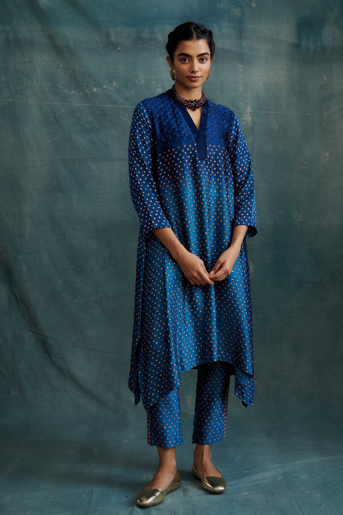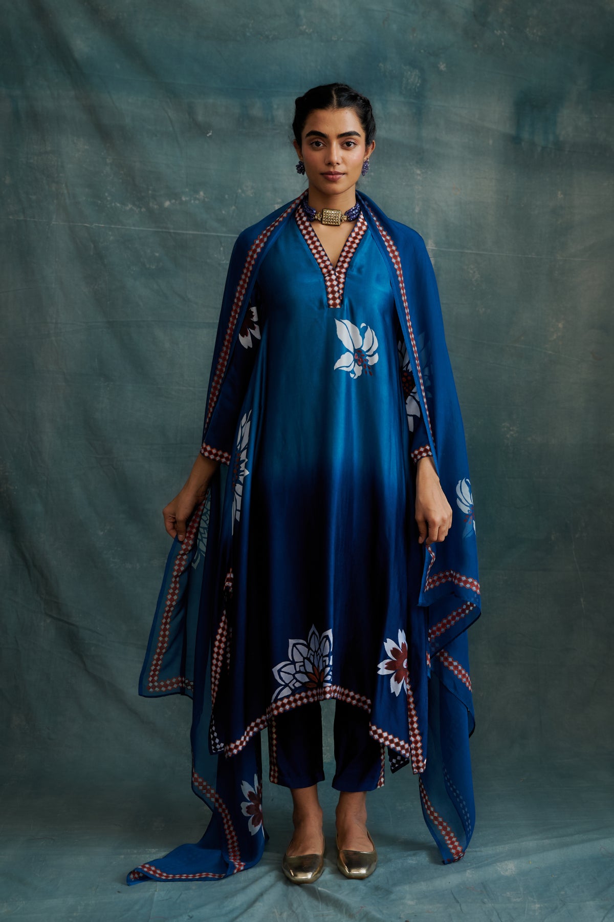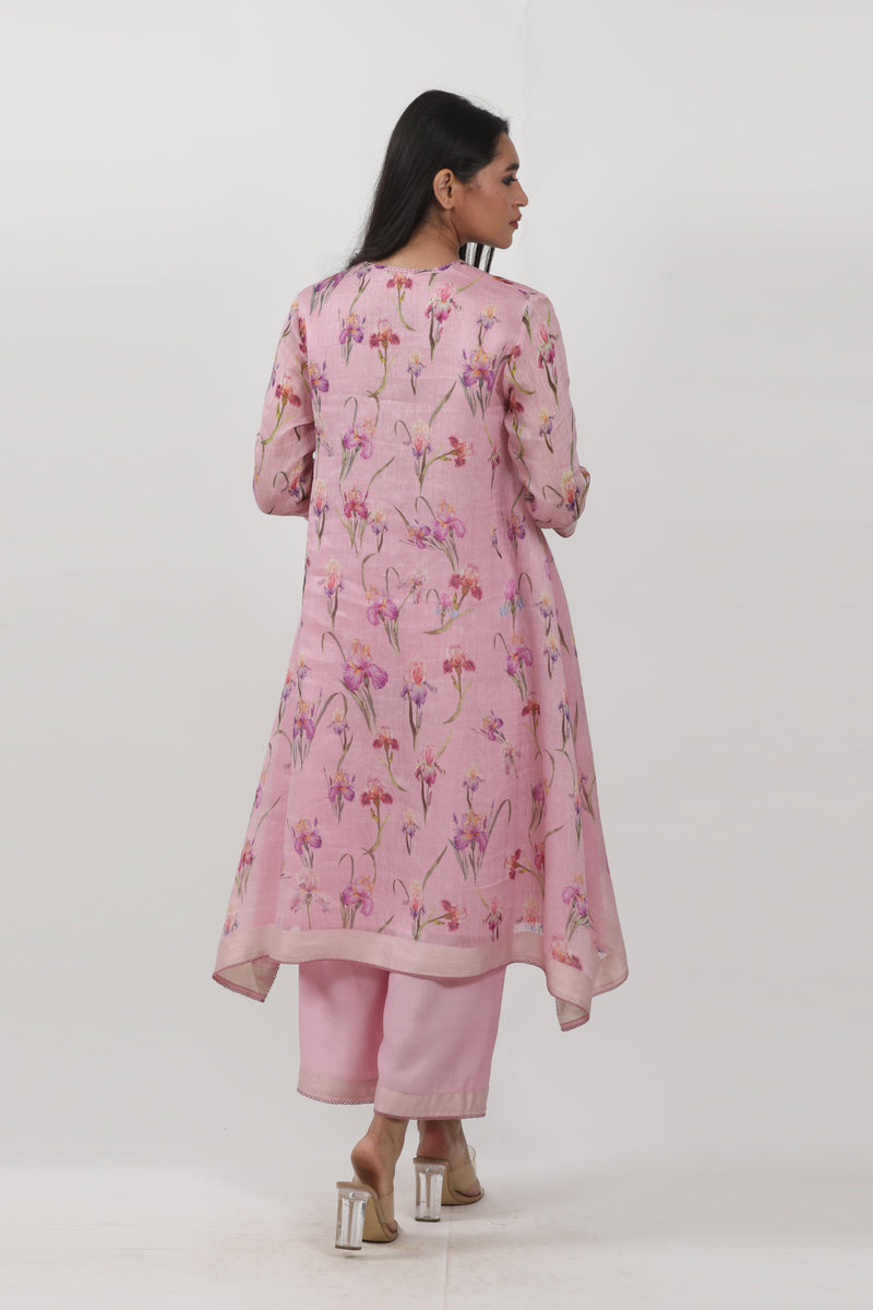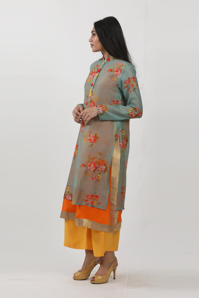 Ivory Pure Silk & Cotton Silk Printed Long Kaftan Set