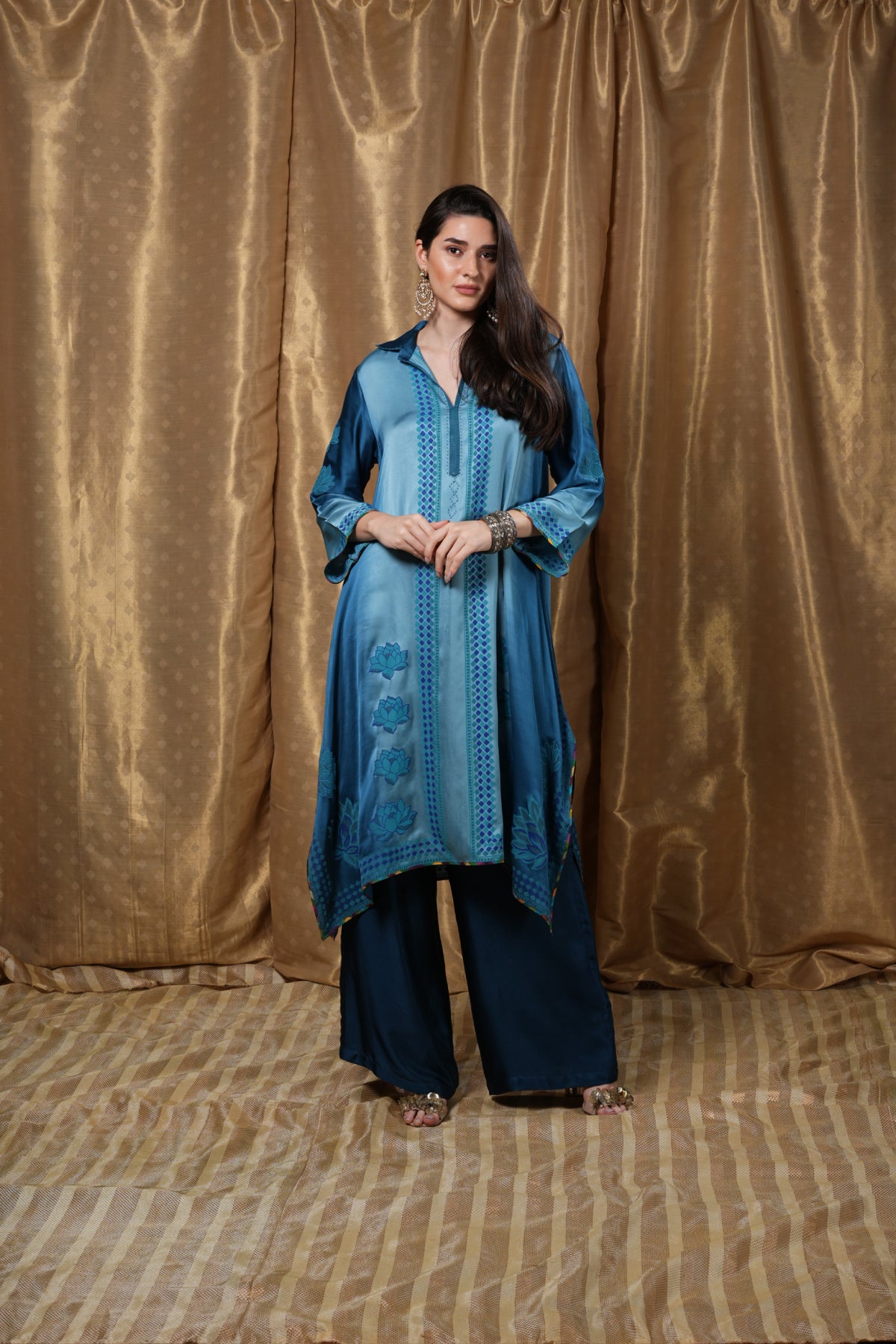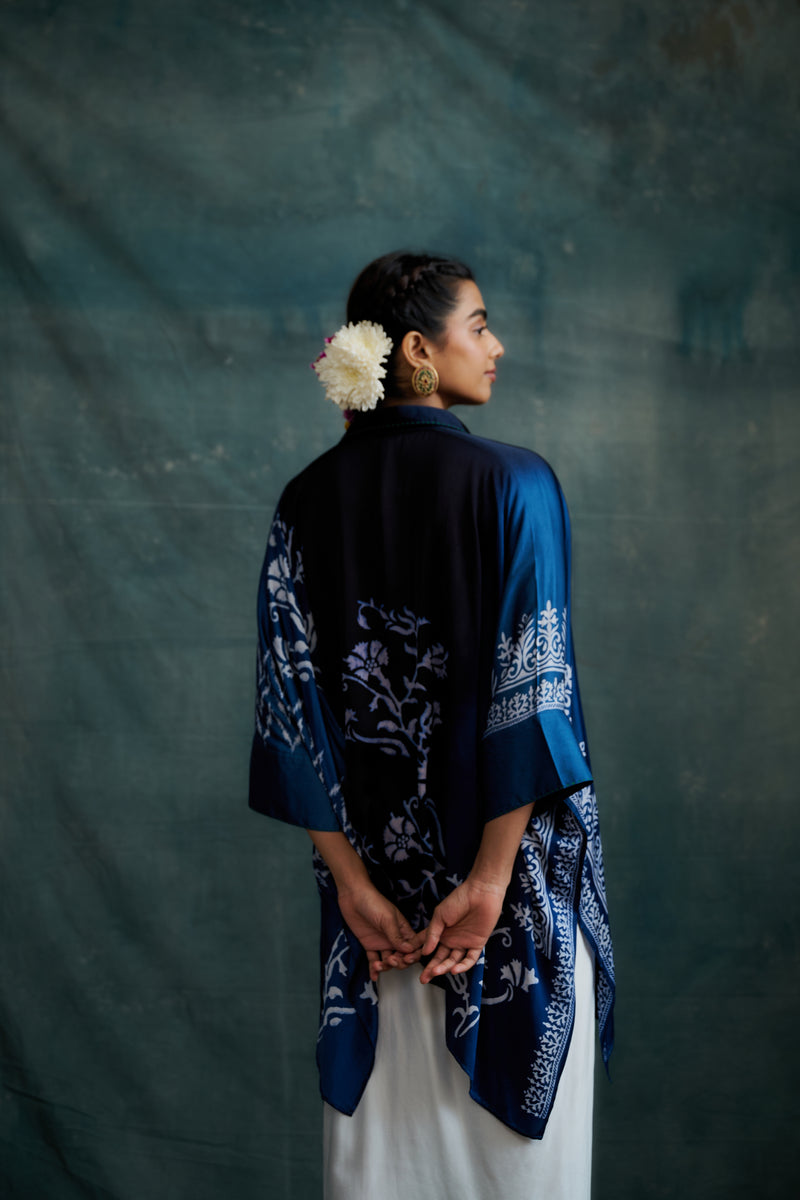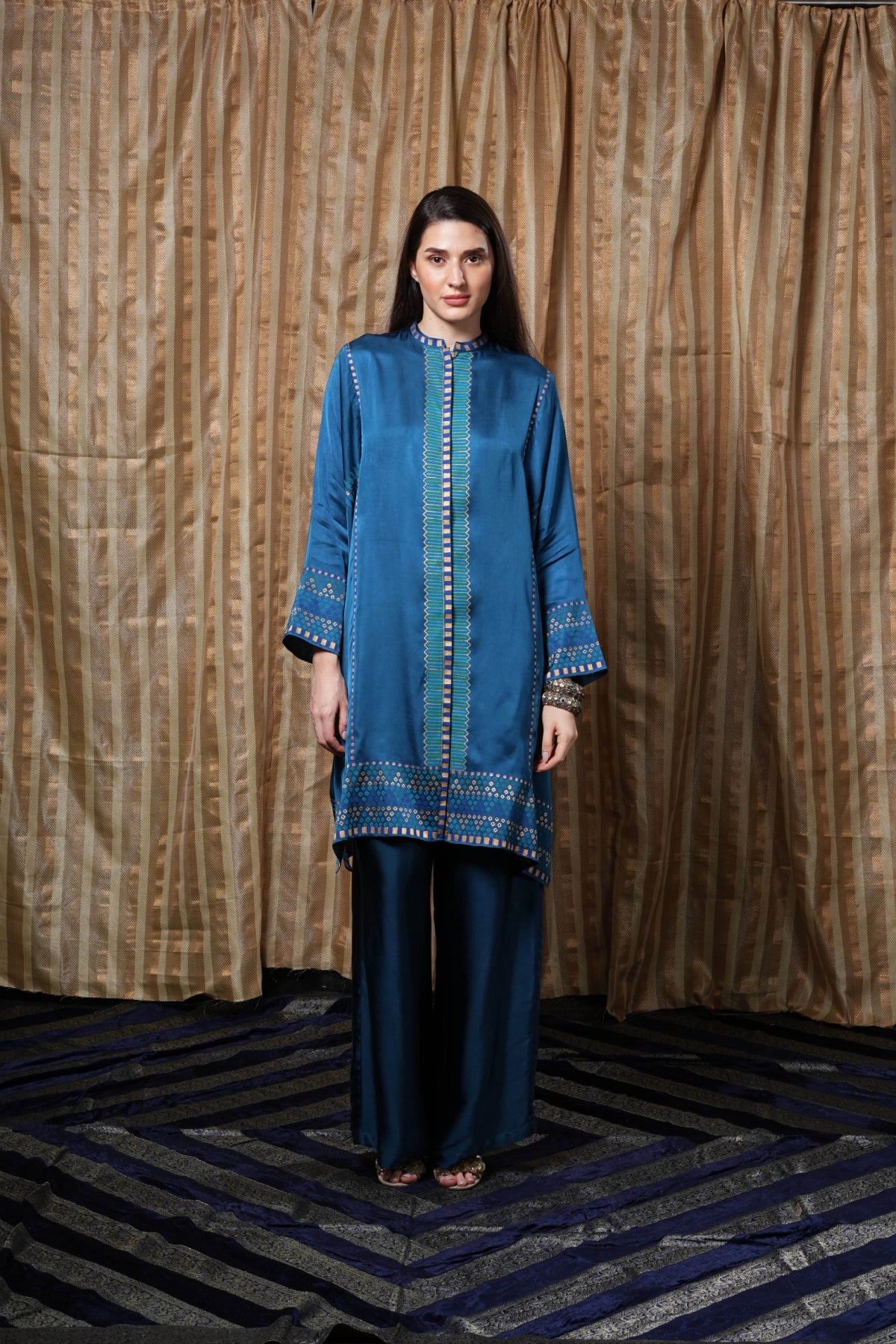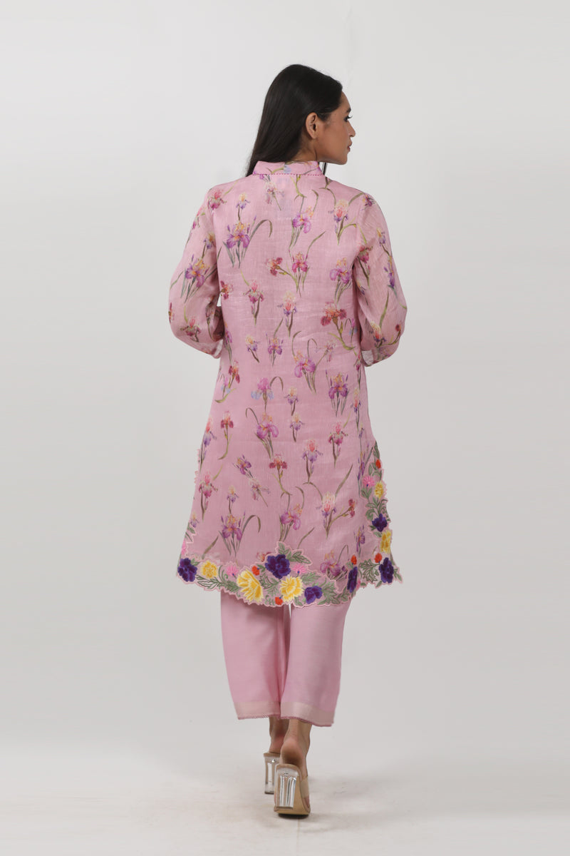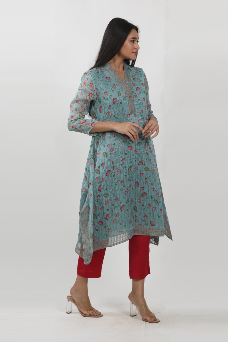 Ivory Pure Silk & Cotton Silk Printed Long Kaftan Set