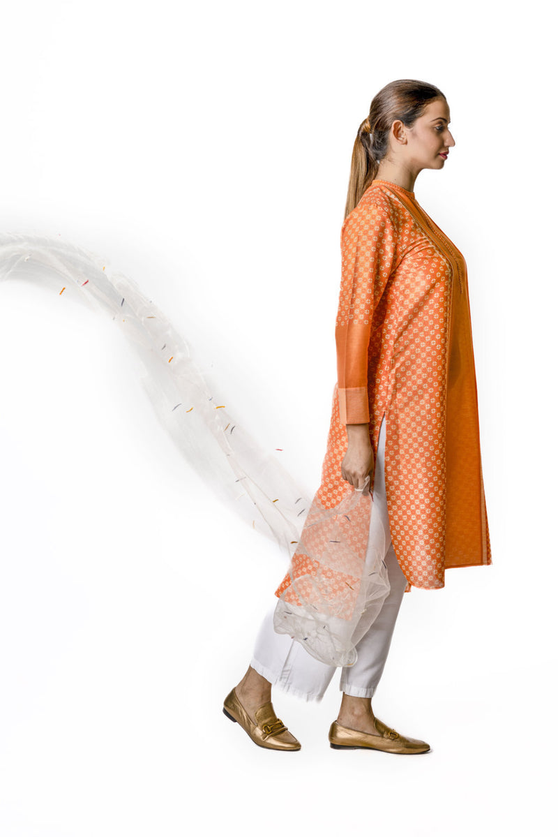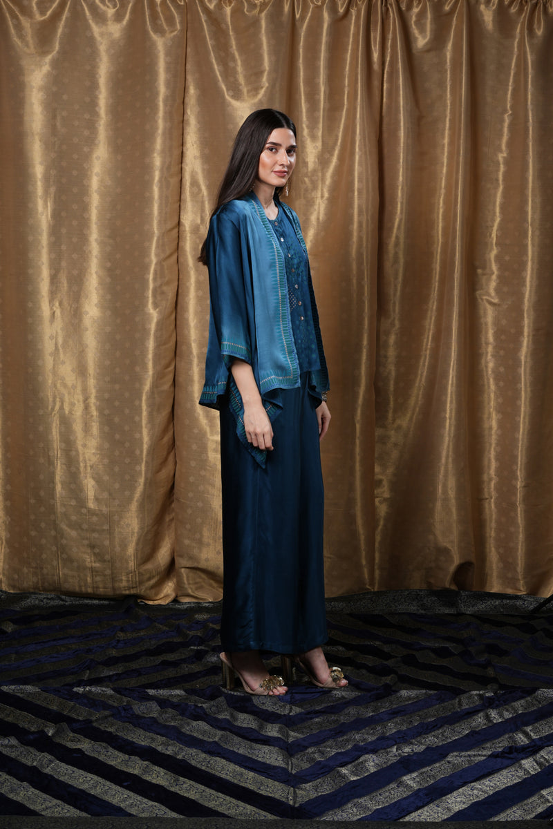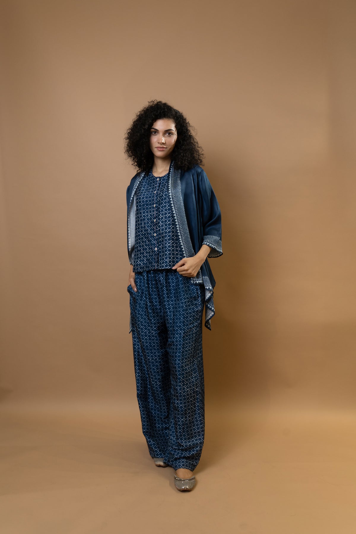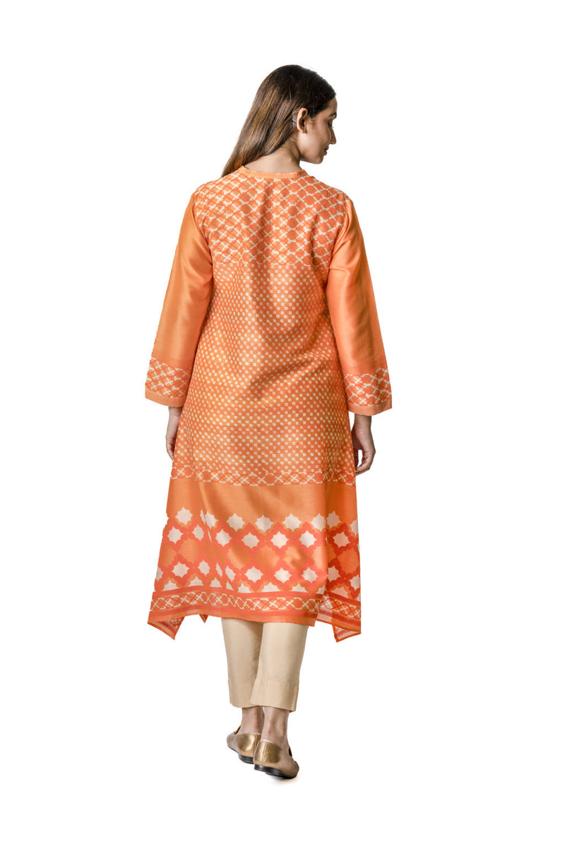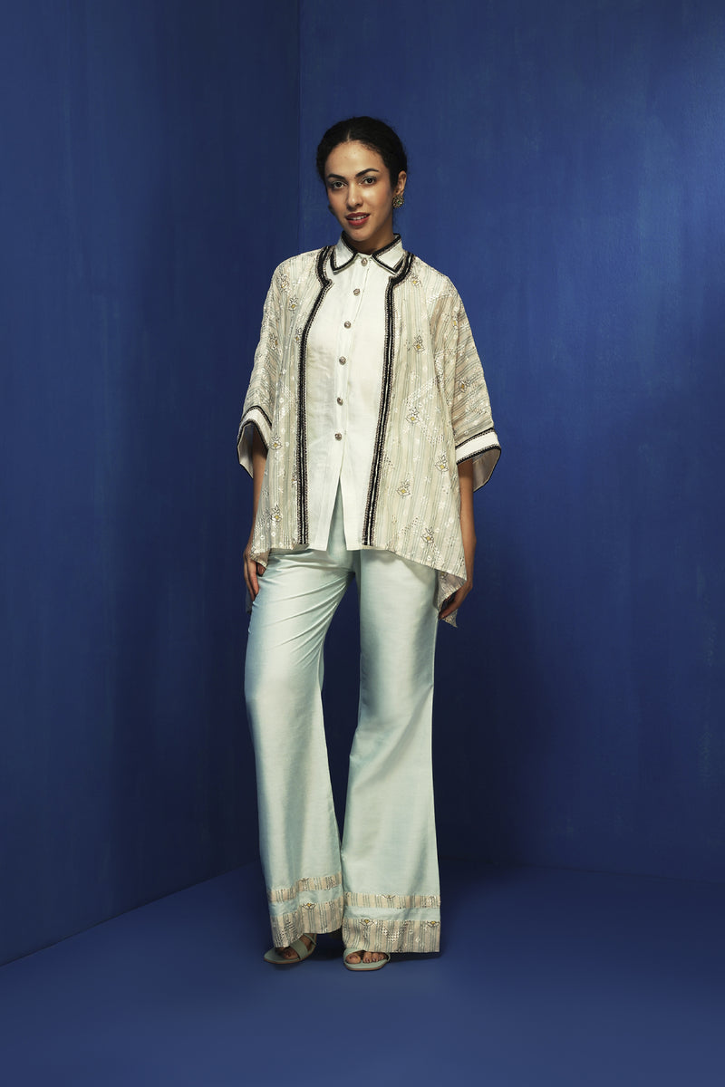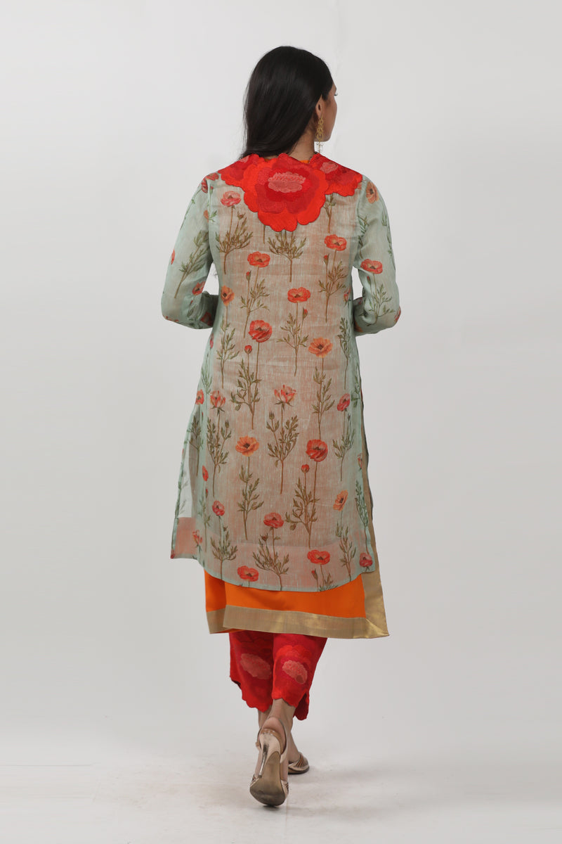 Ivory Pure Silk & Cotton Silk Printed Long Kaftan Set