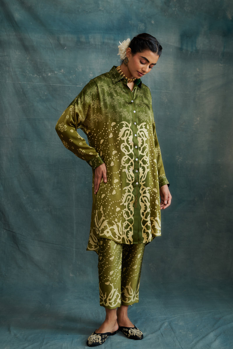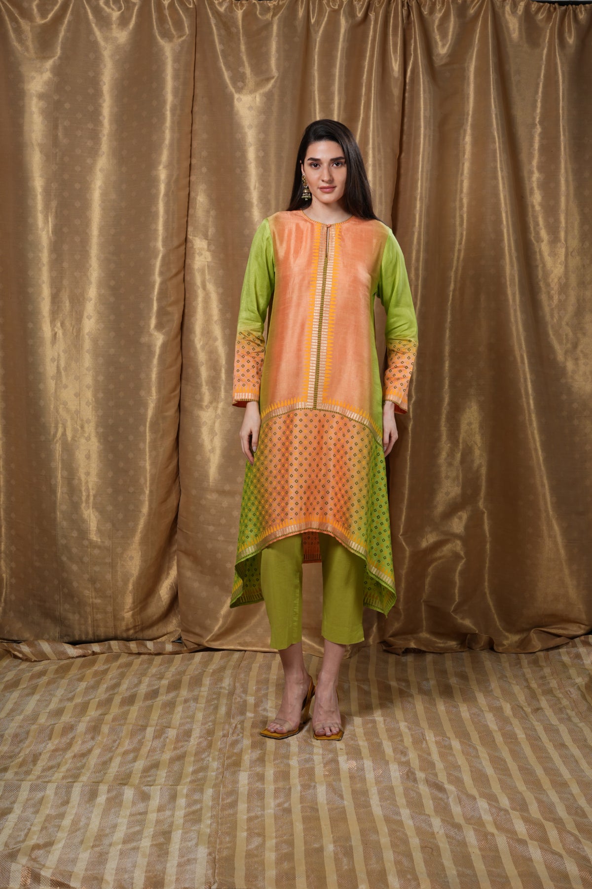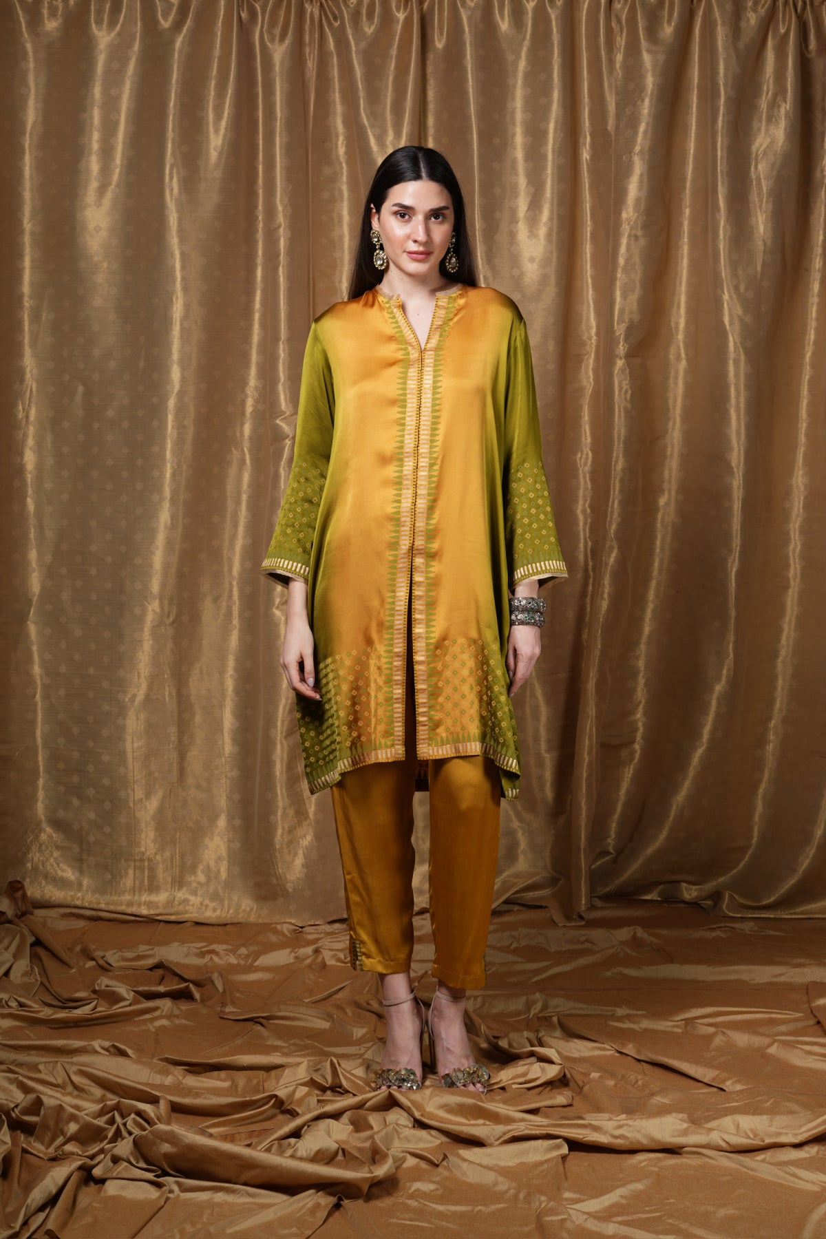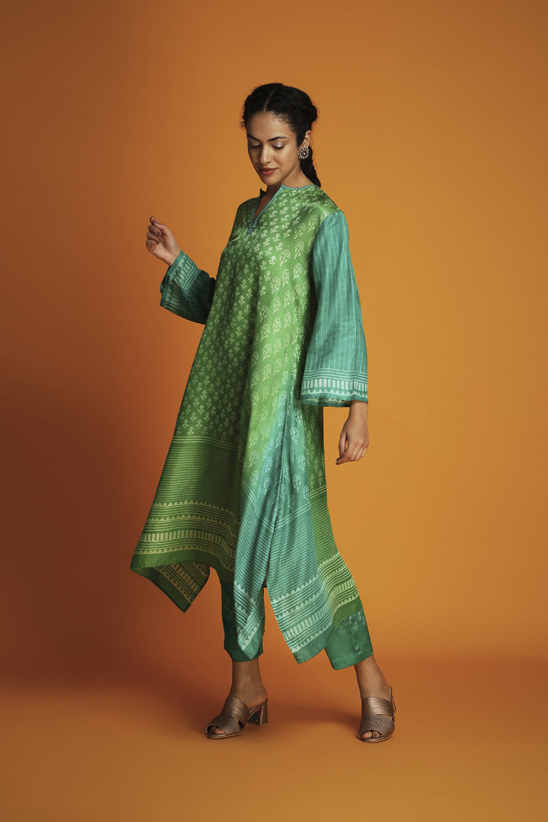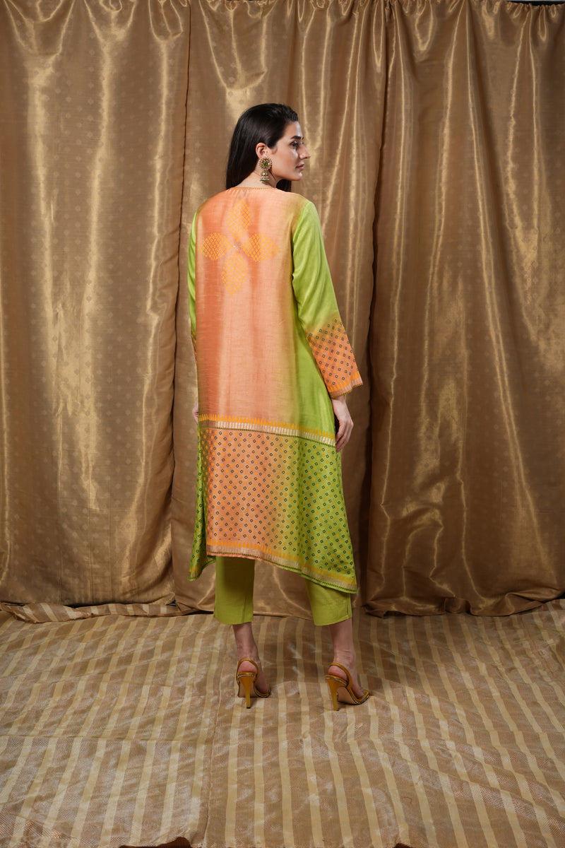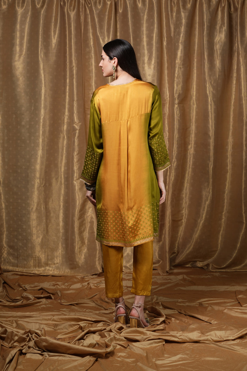 Olive Ombre Chanderi & Silk Block Printed Tunic Set