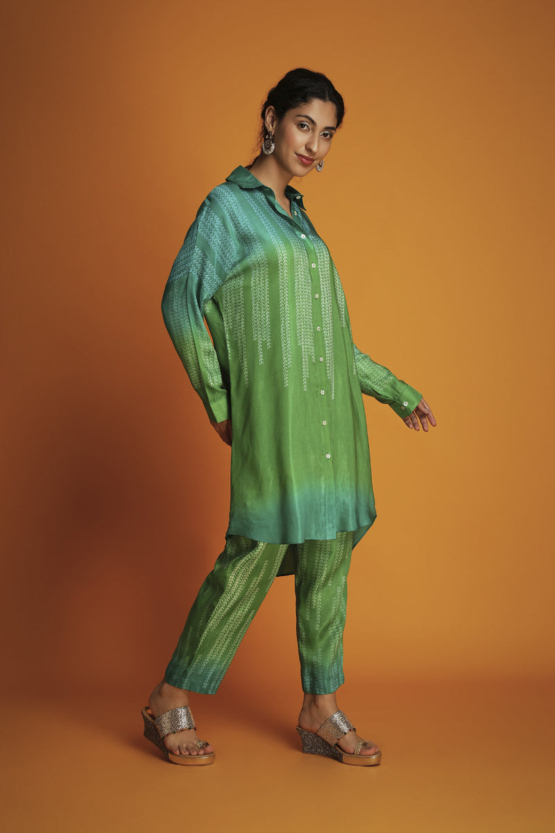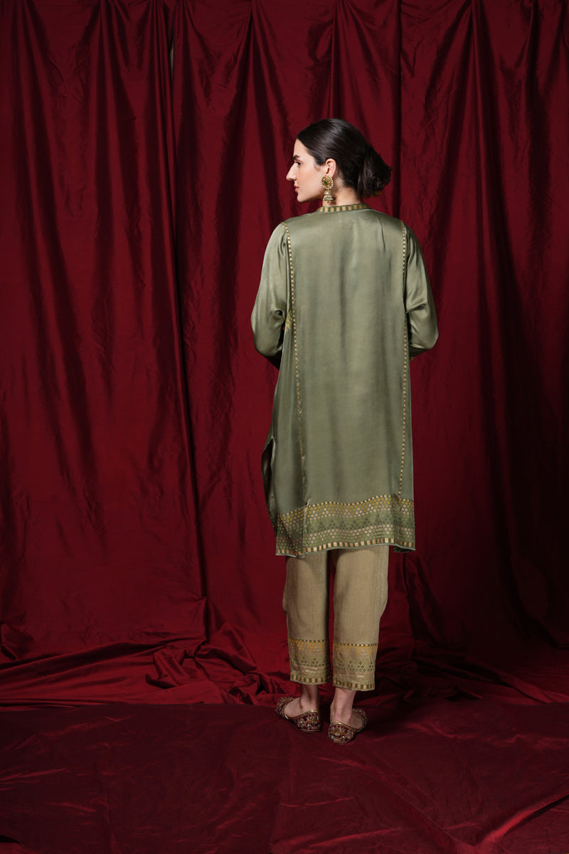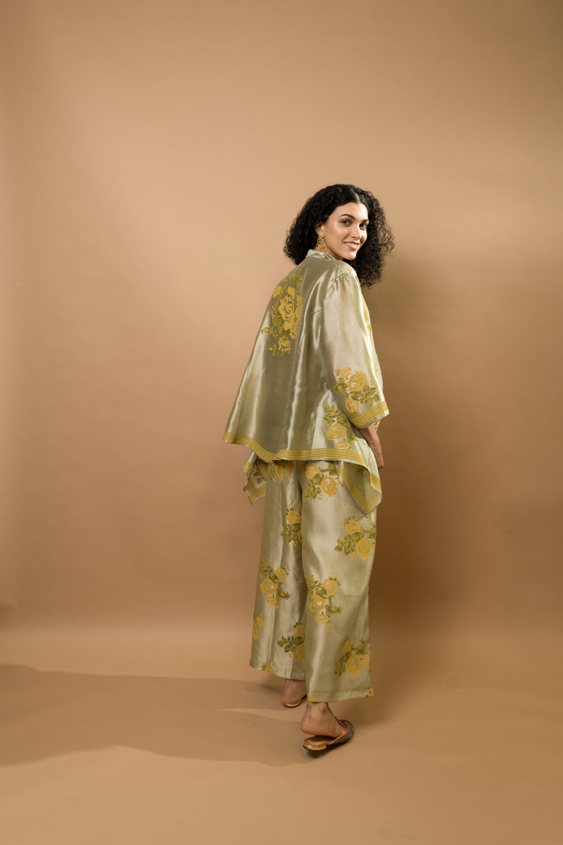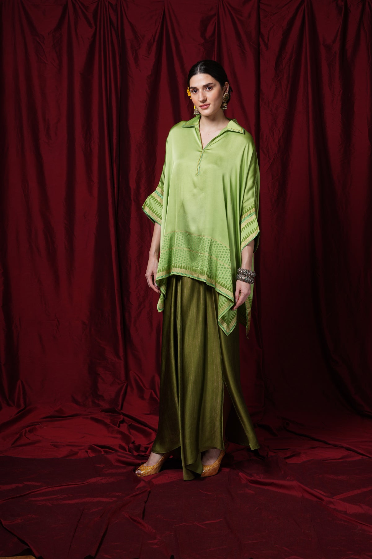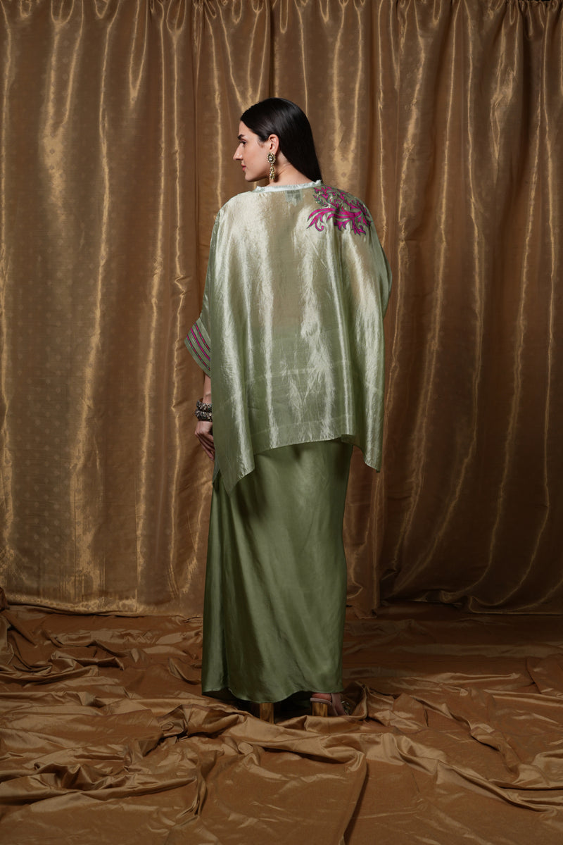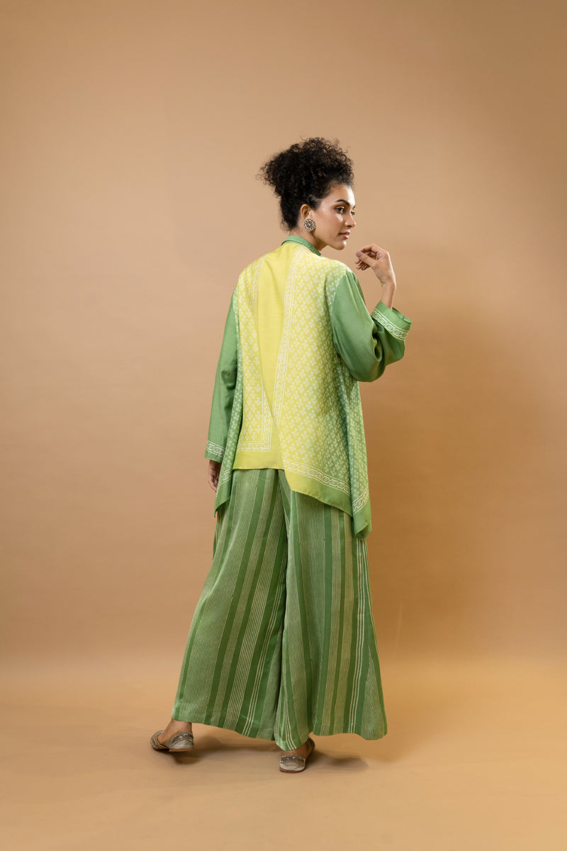 Olive Ombre Chanderi & Silk Block Printed Tunic Set