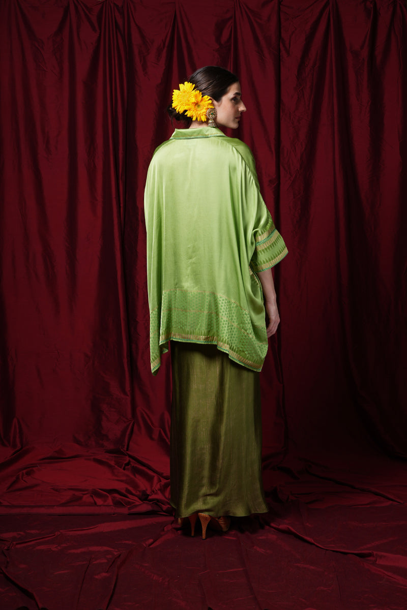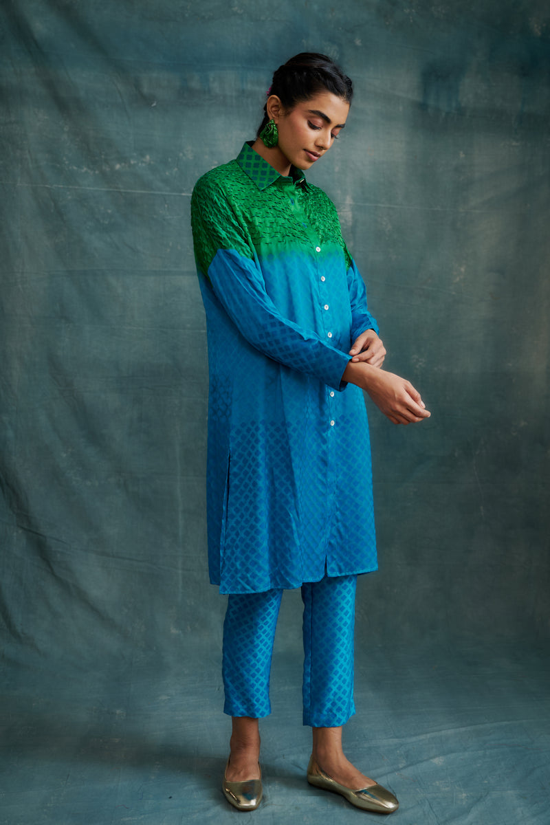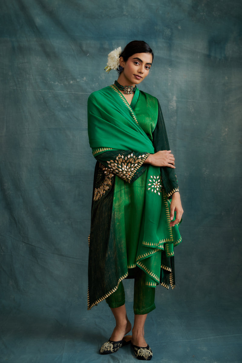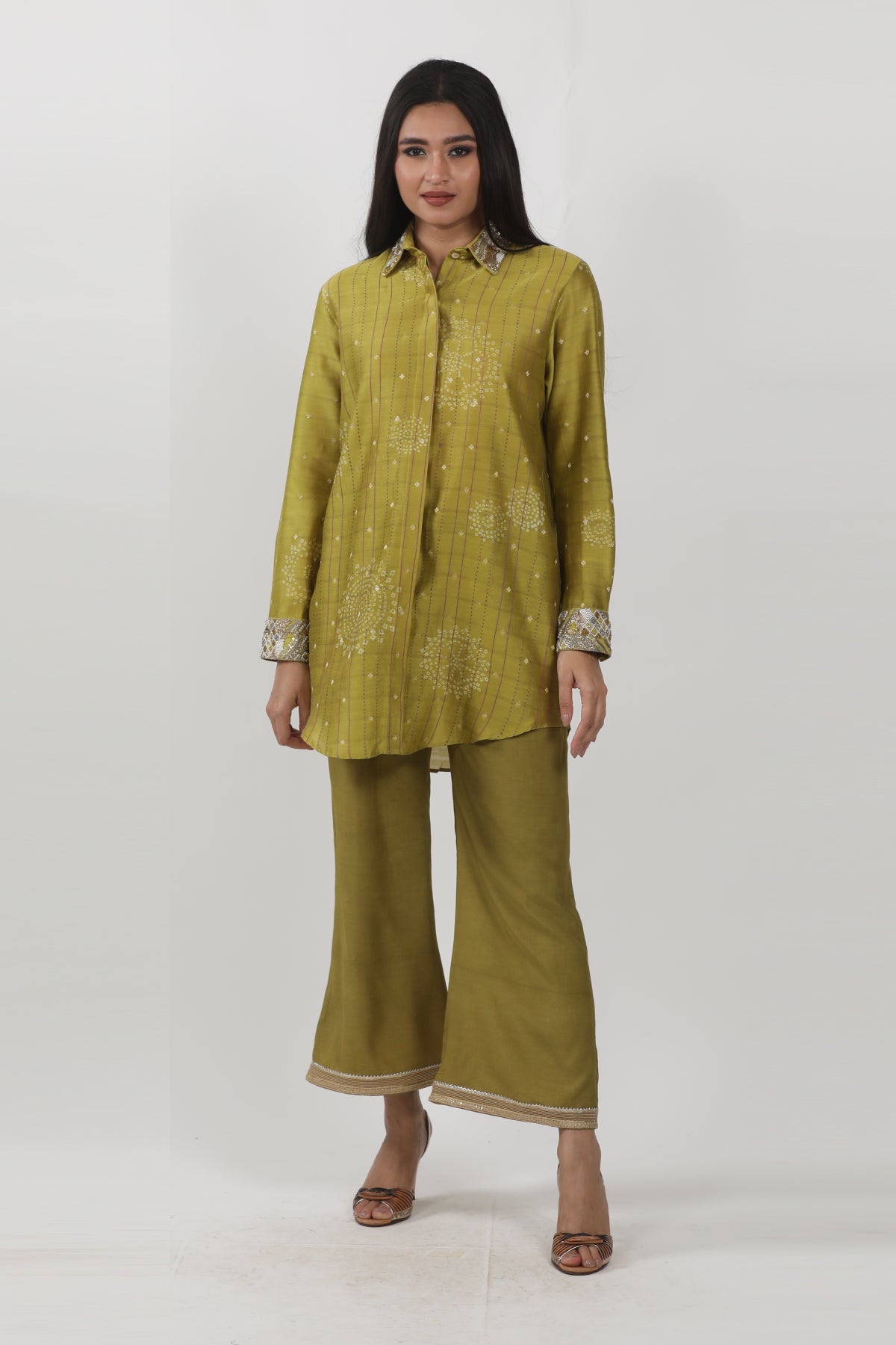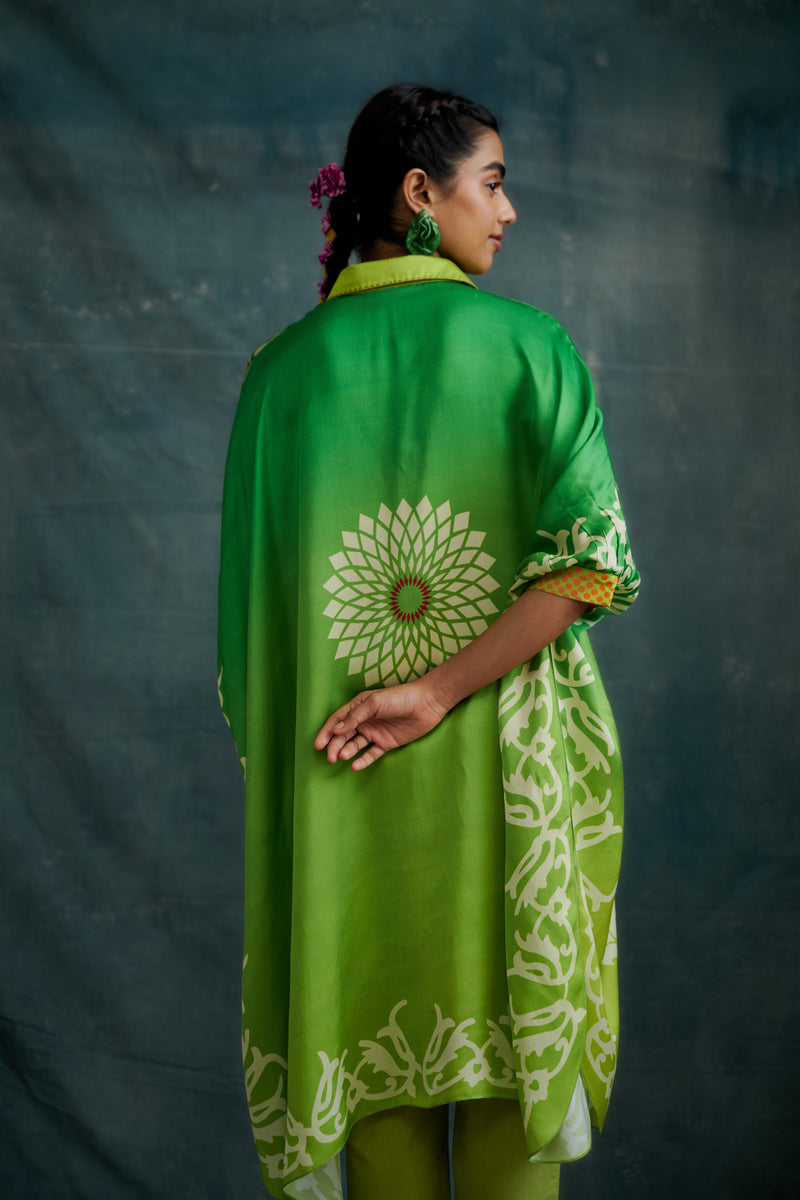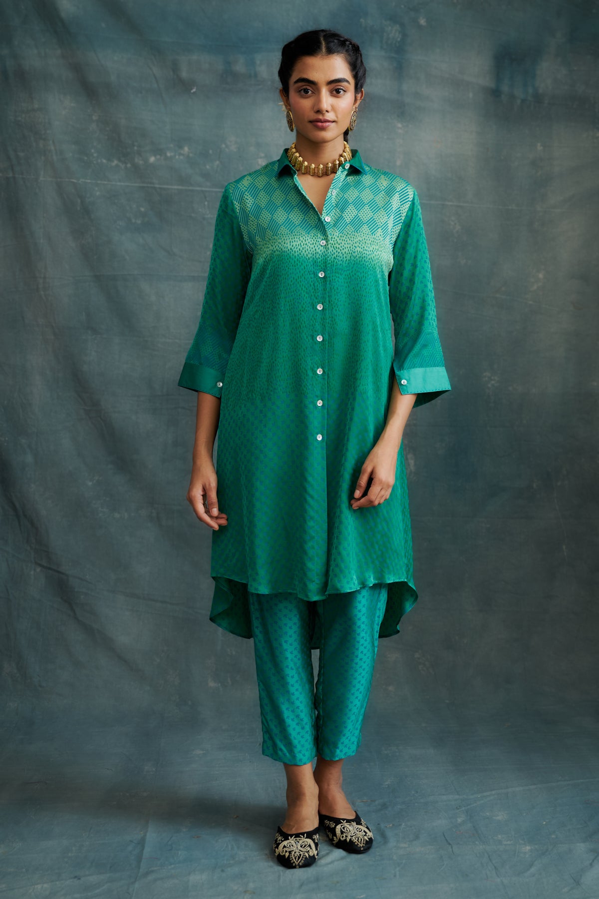 Olive Ombre Chanderi & Silk Block Printed Tunic Set