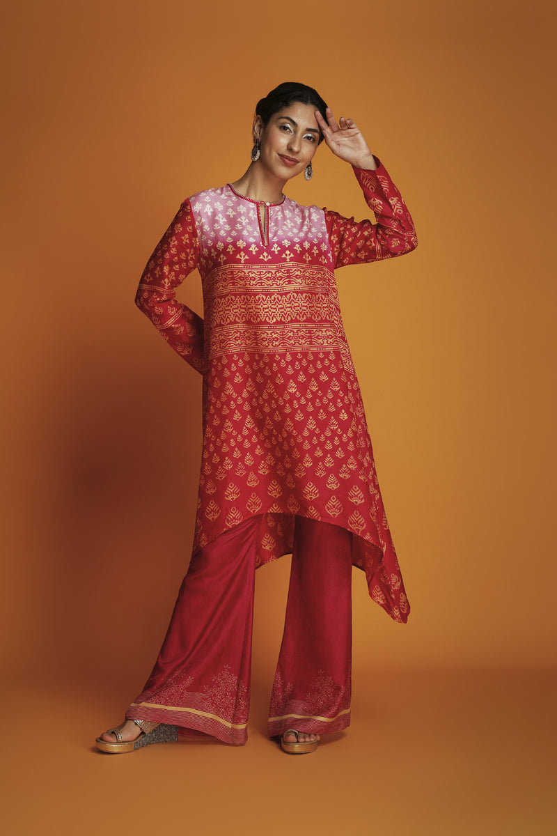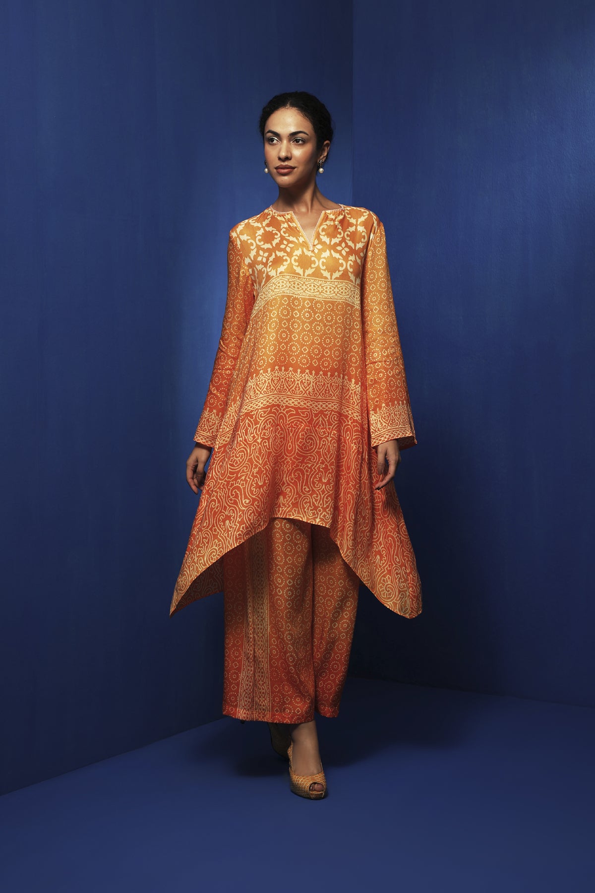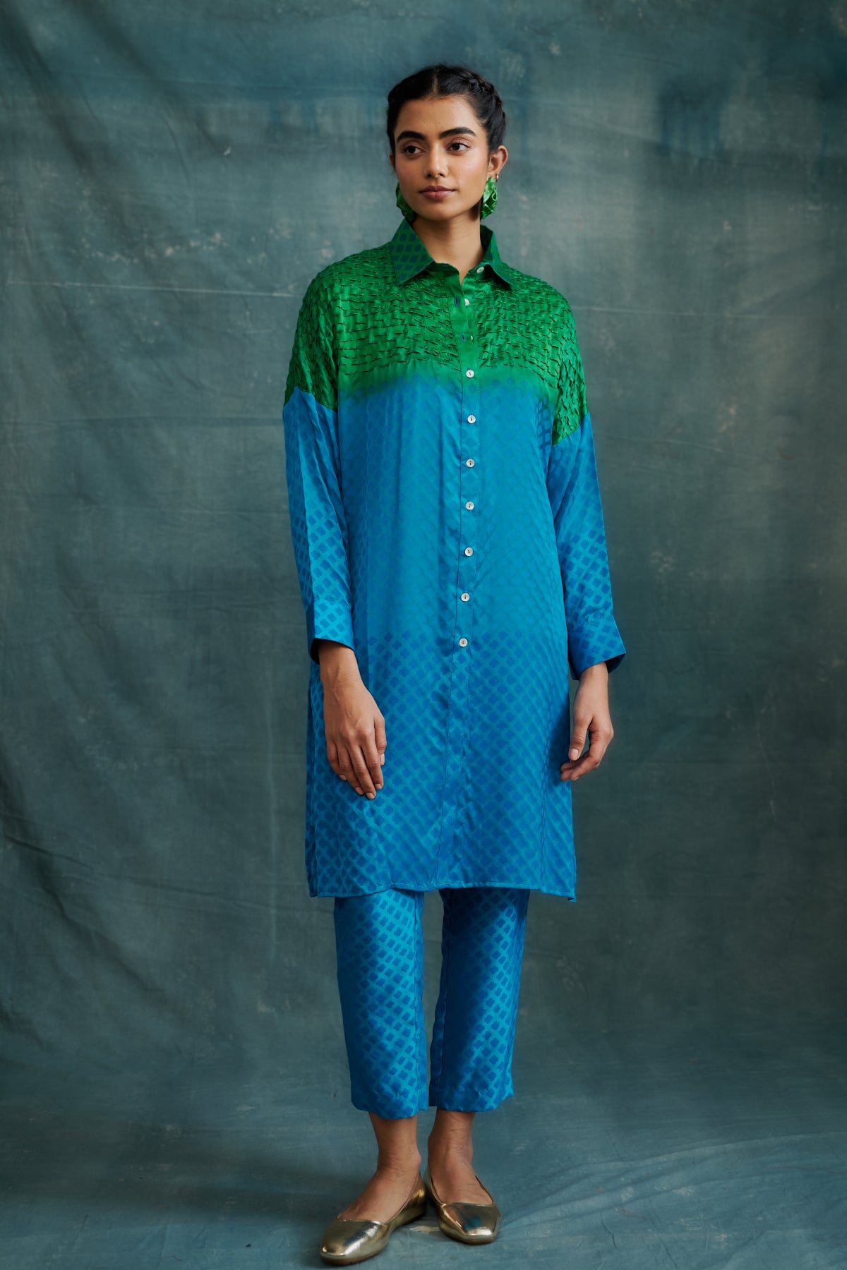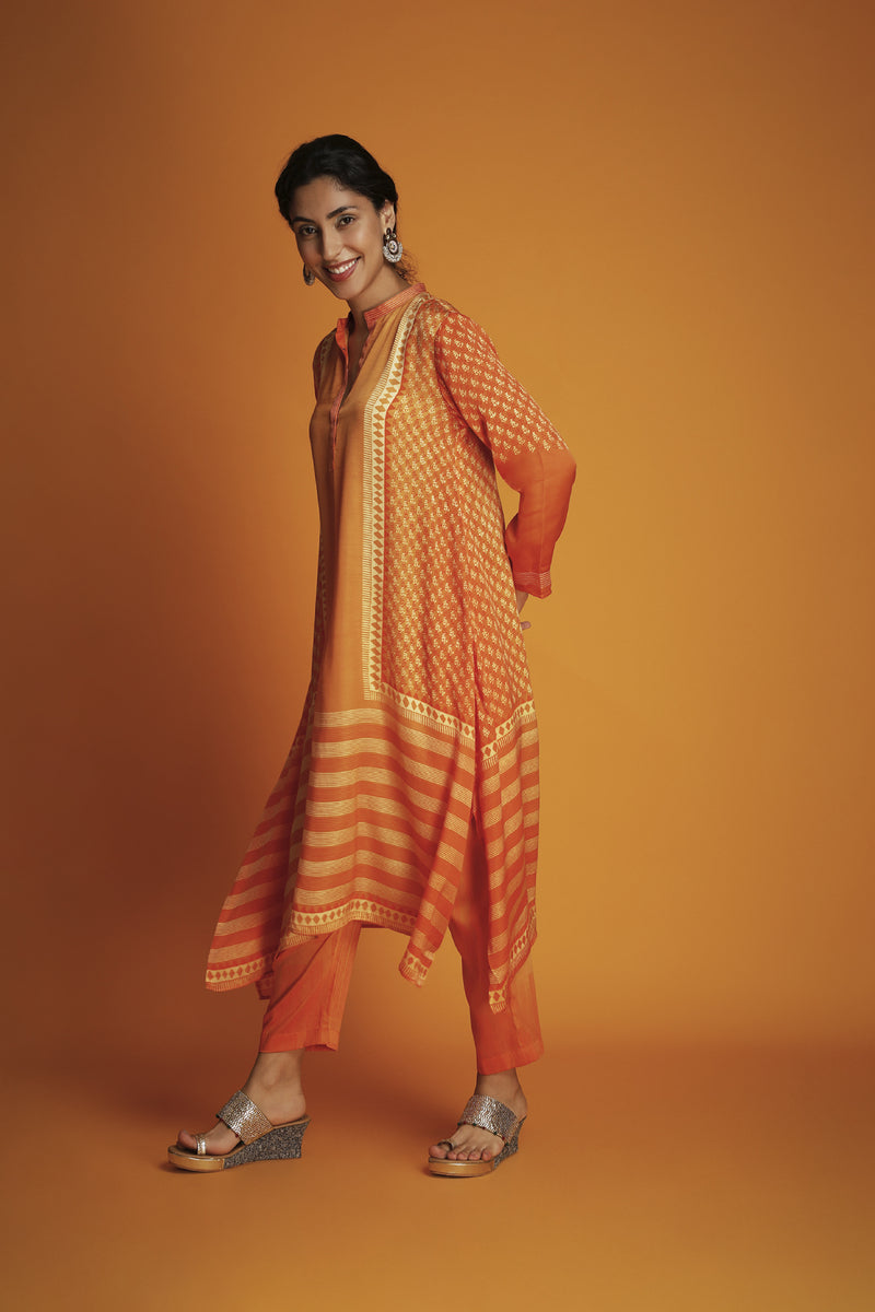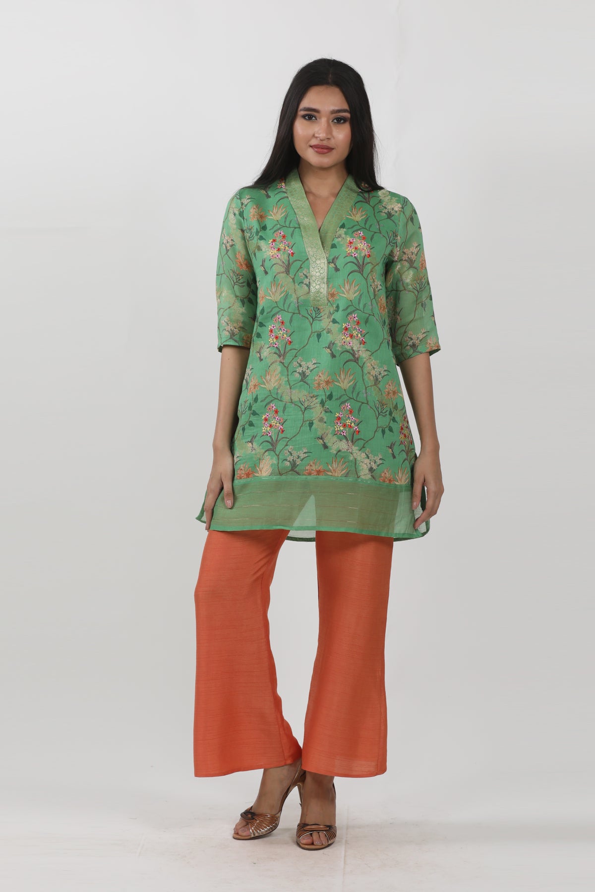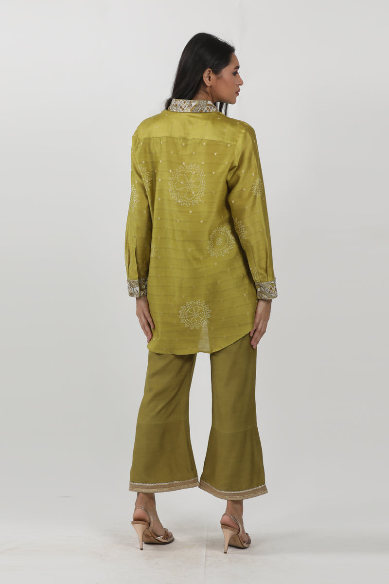 Olive Ombre Chanderi & Silk Block Printed Tunic Set