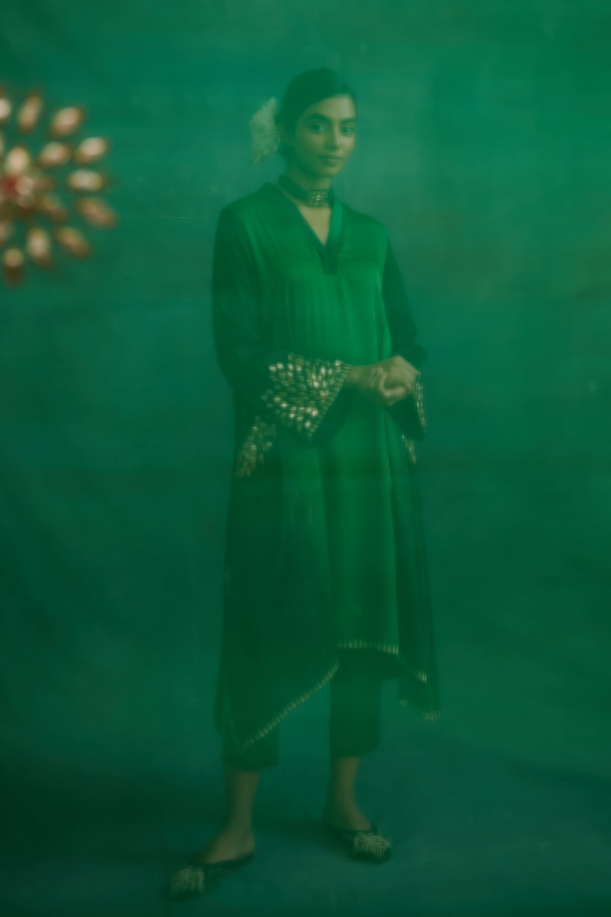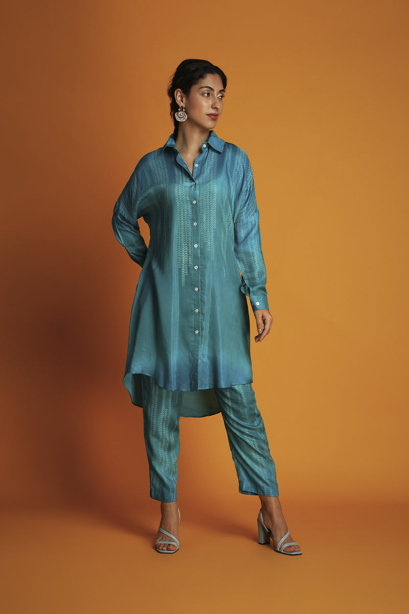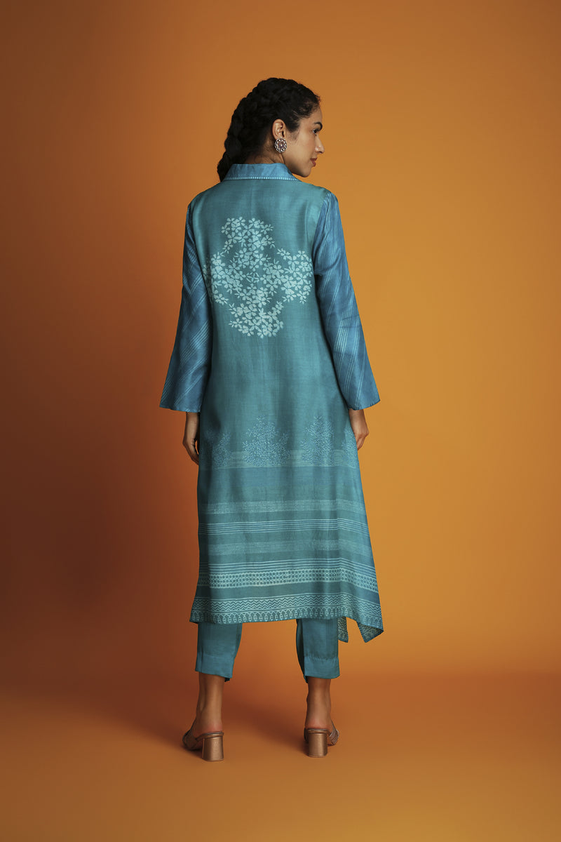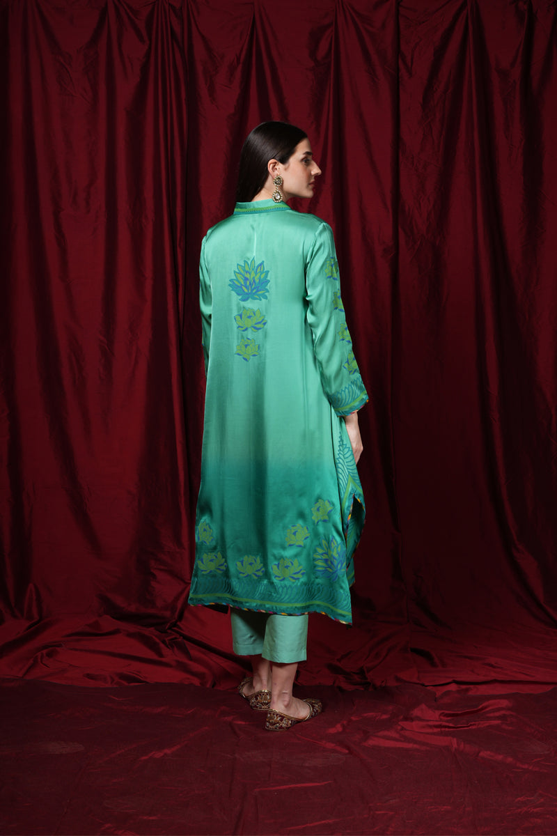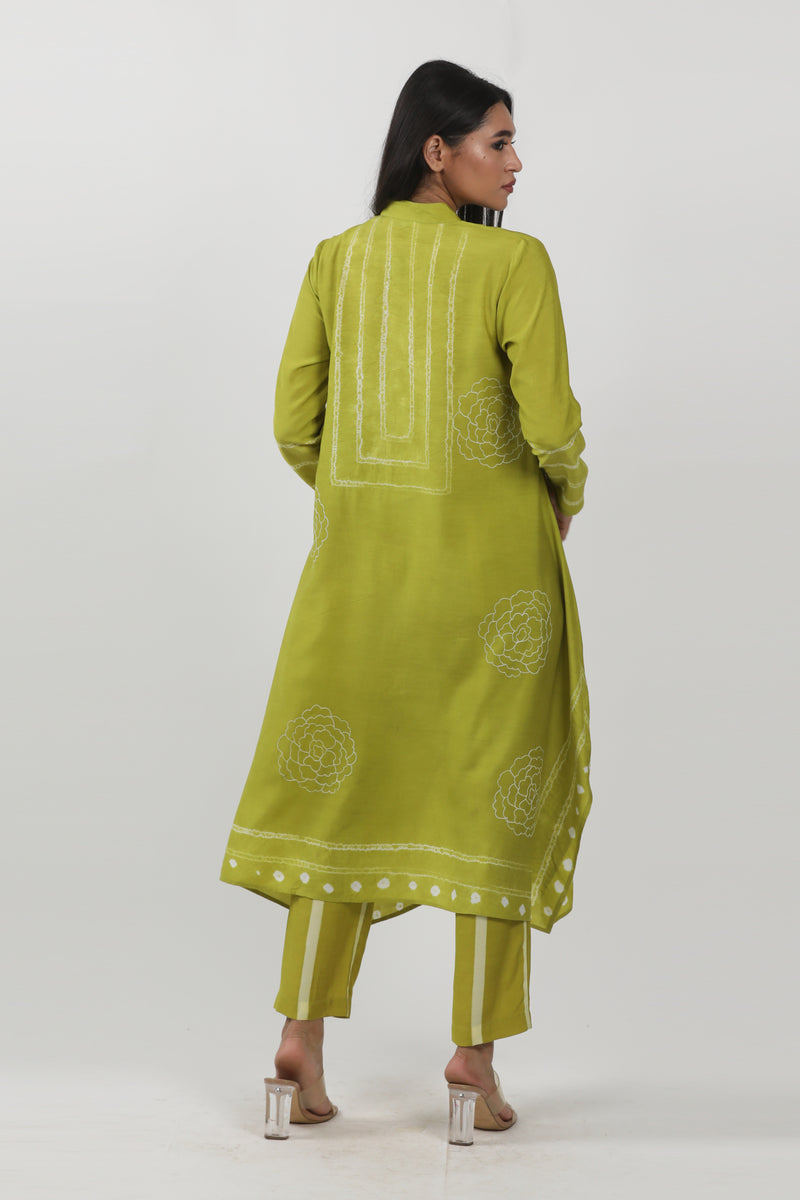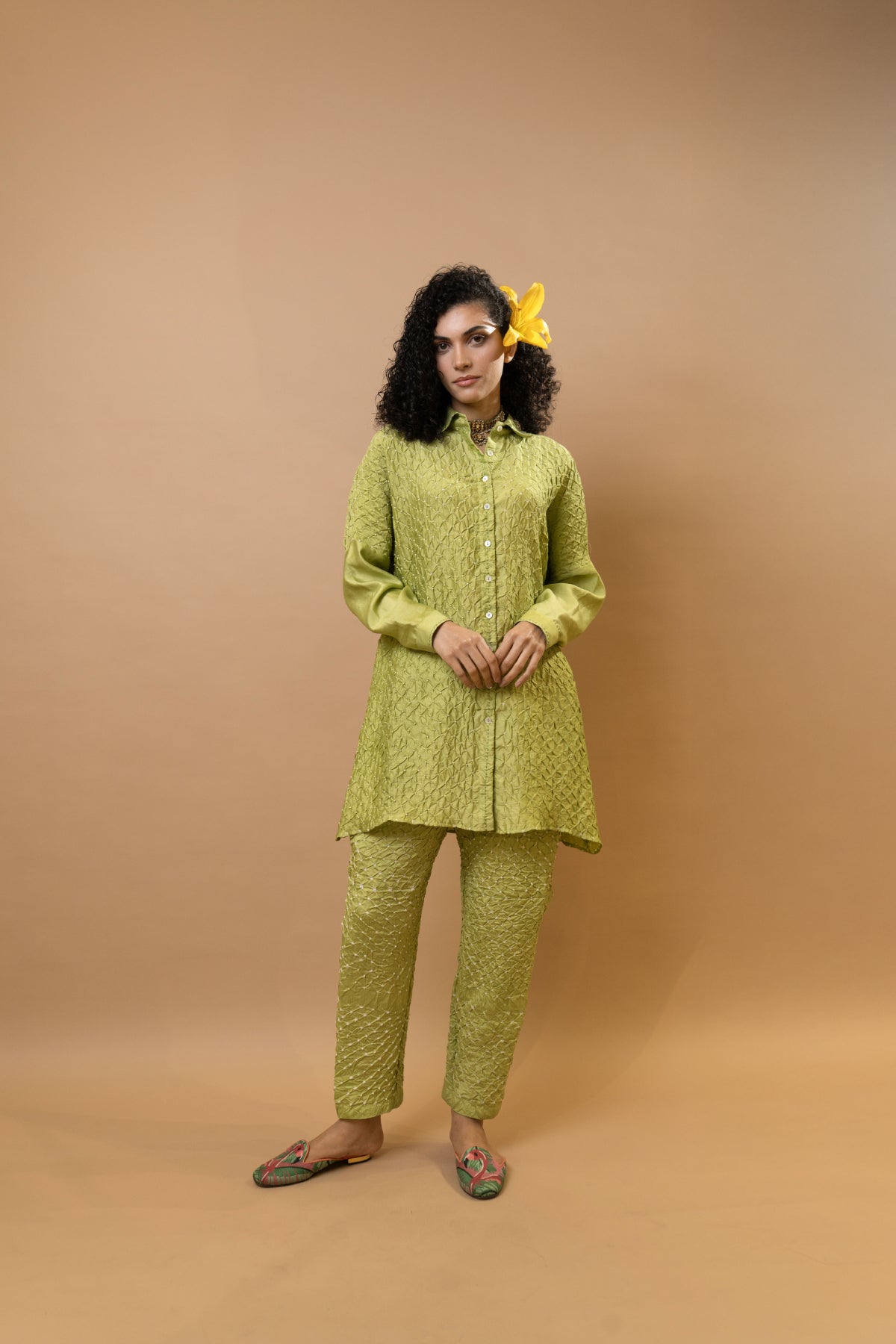 Olive Ombre Chanderi & Silk Block Printed Tunic Set