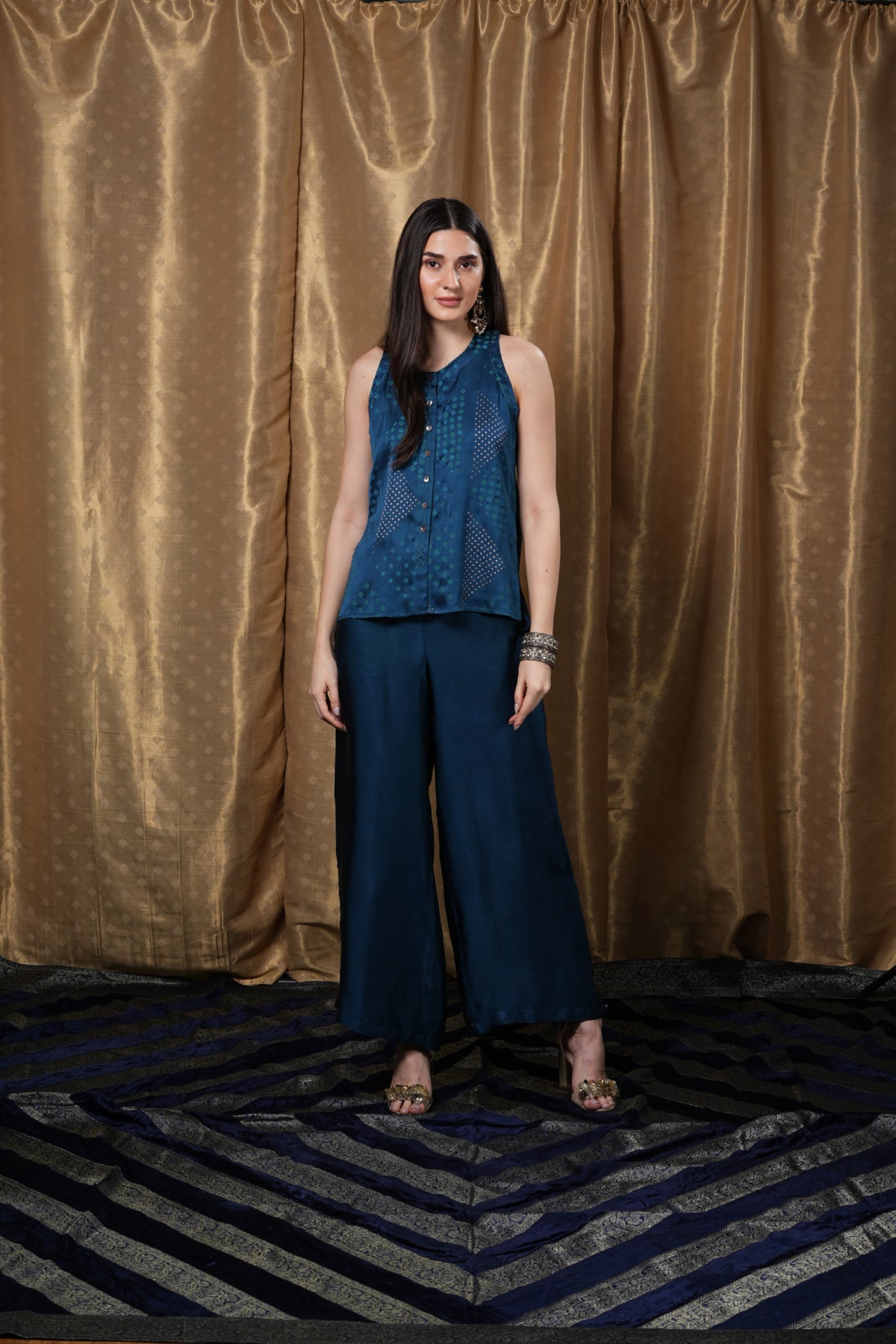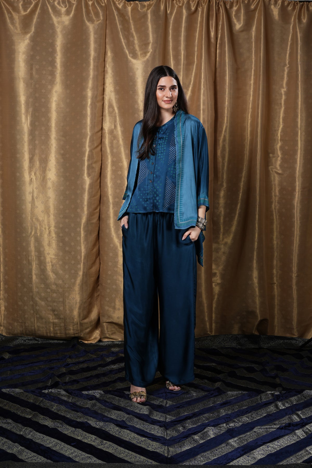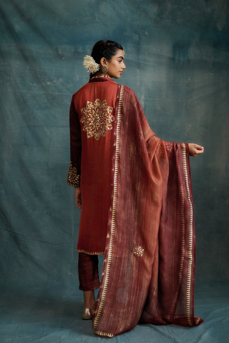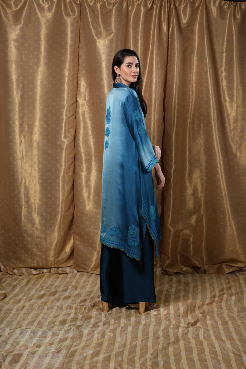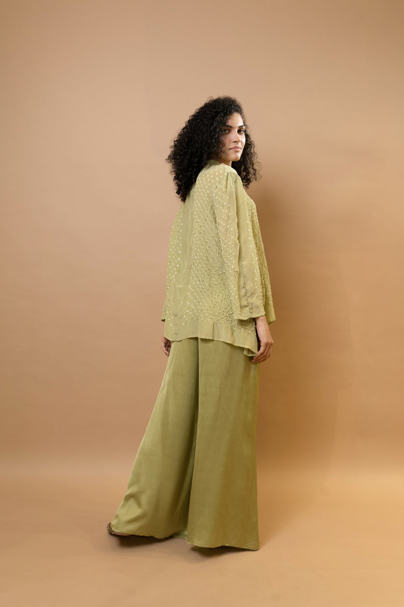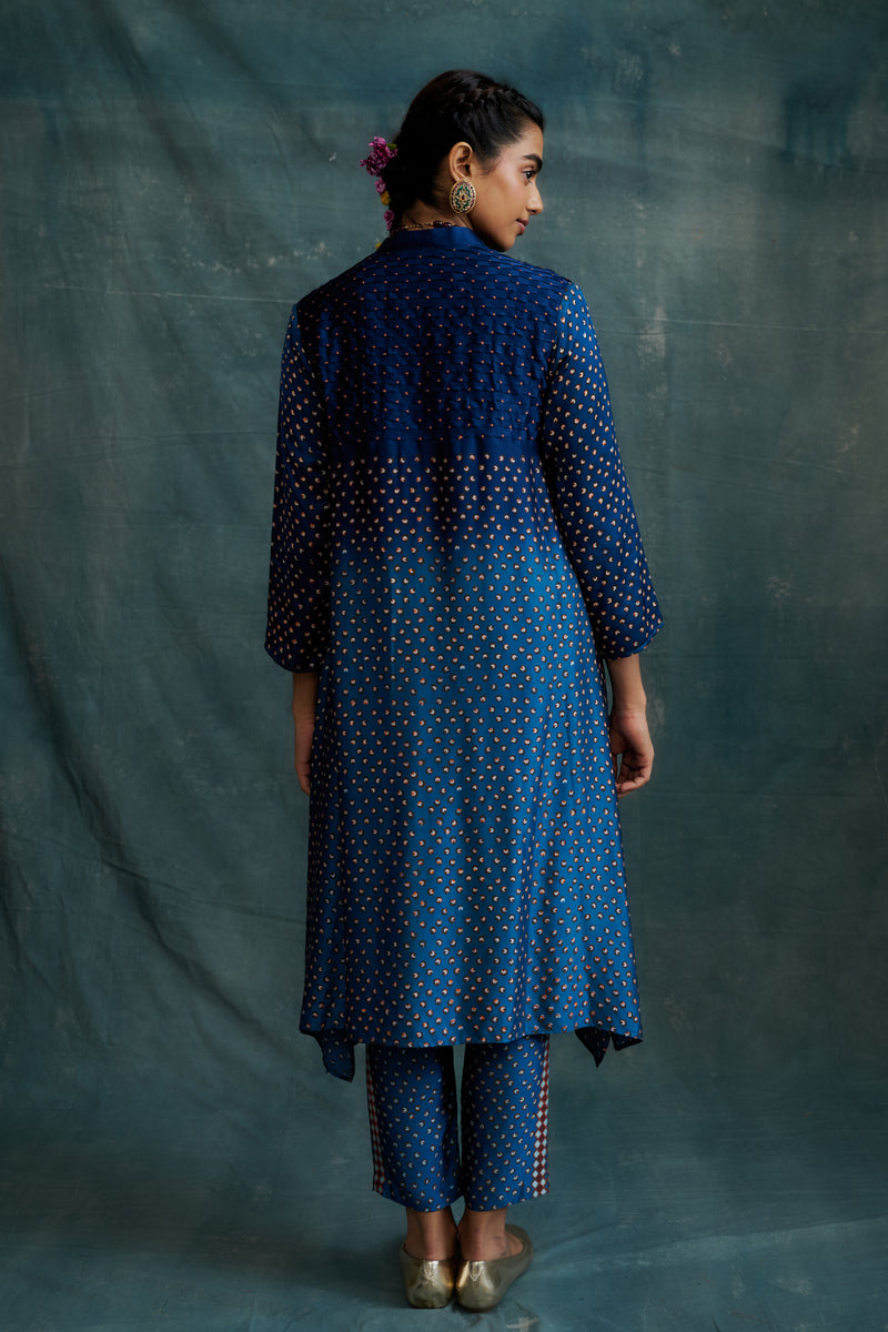 Olive Ombre Chanderi & Silk Block Printed Tunic Set