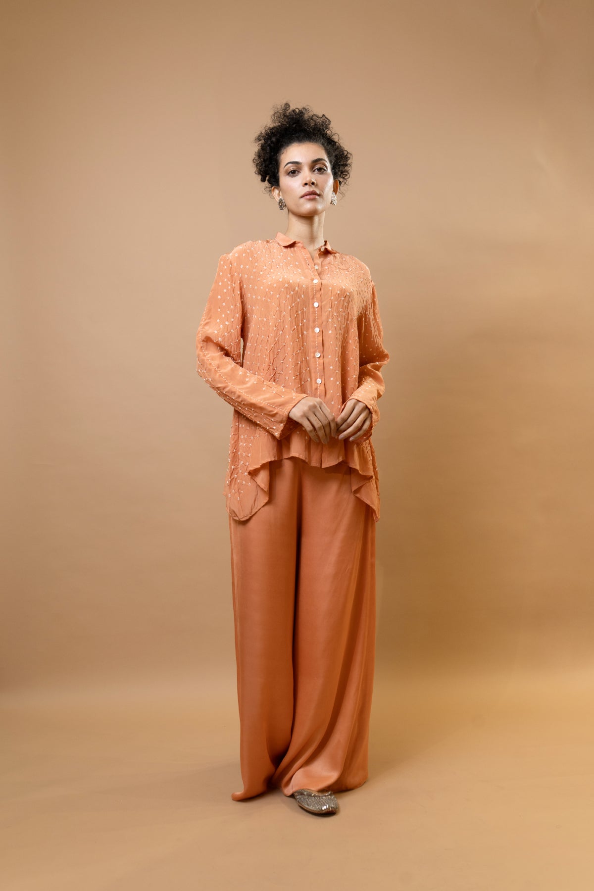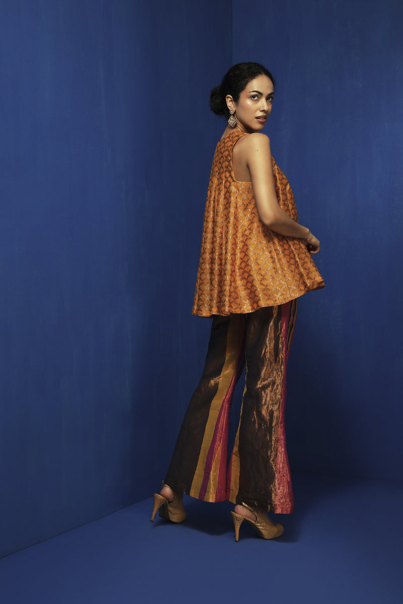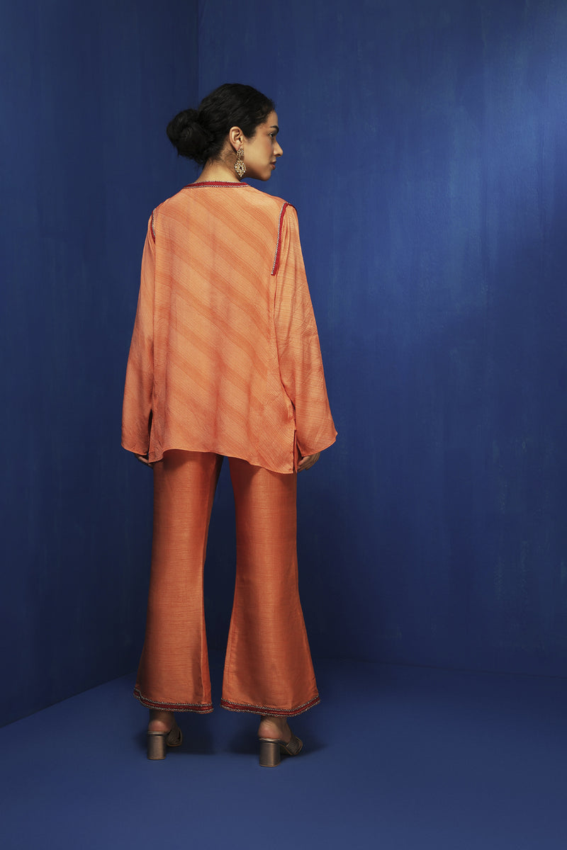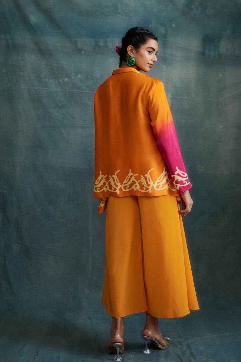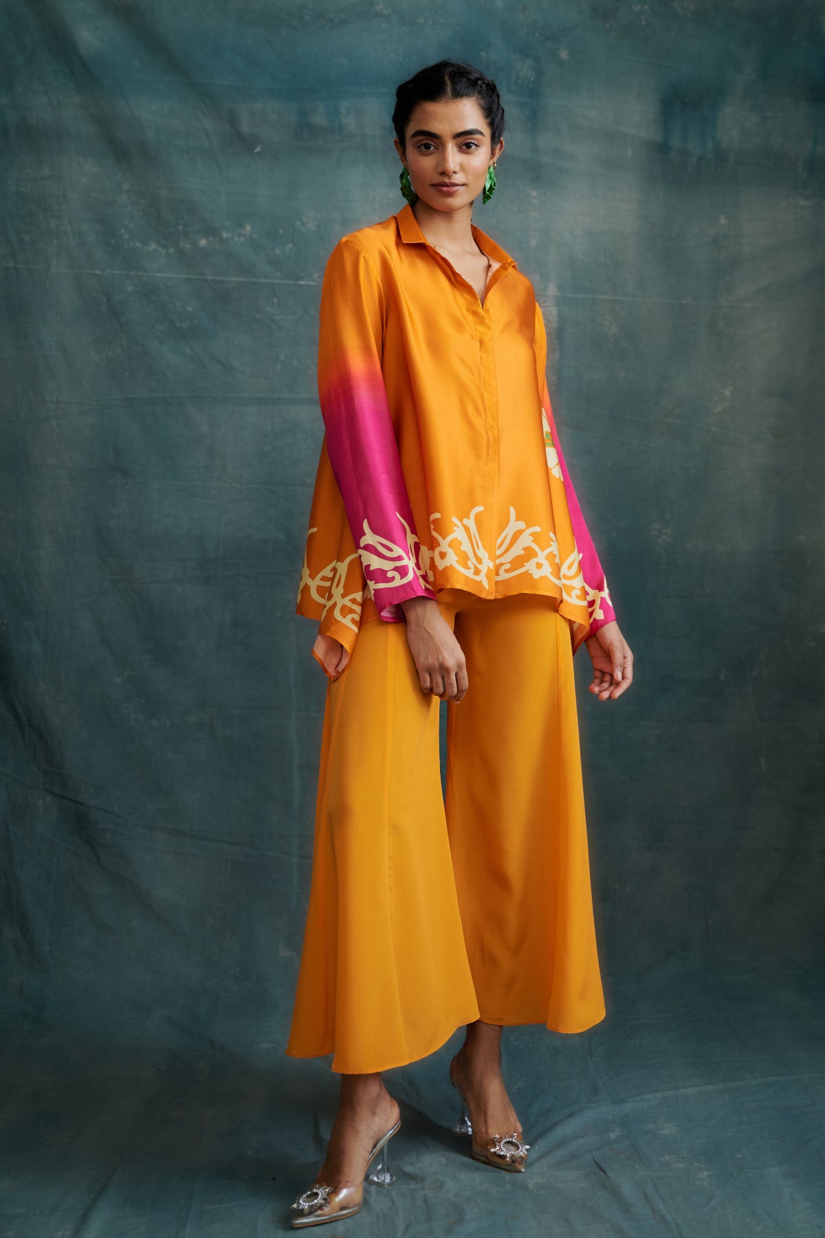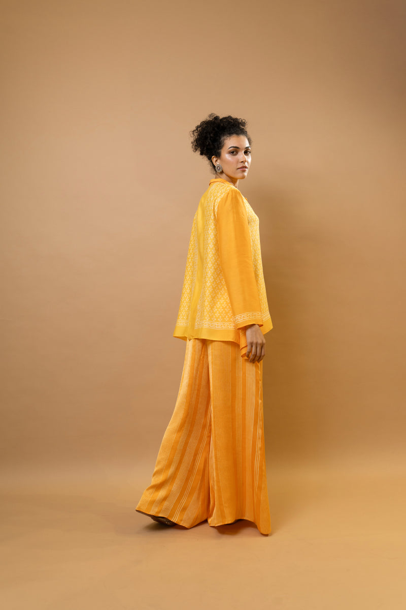 Yellow - orange Ombre Stripe printed bell bottom pant