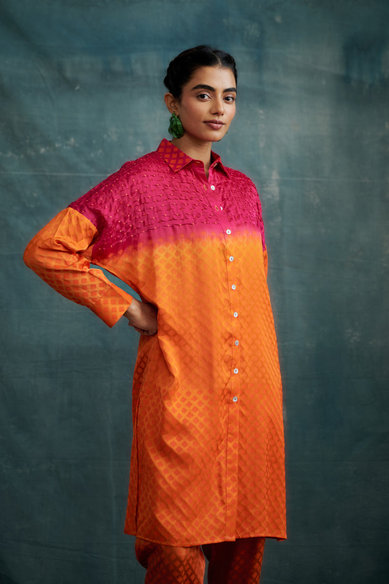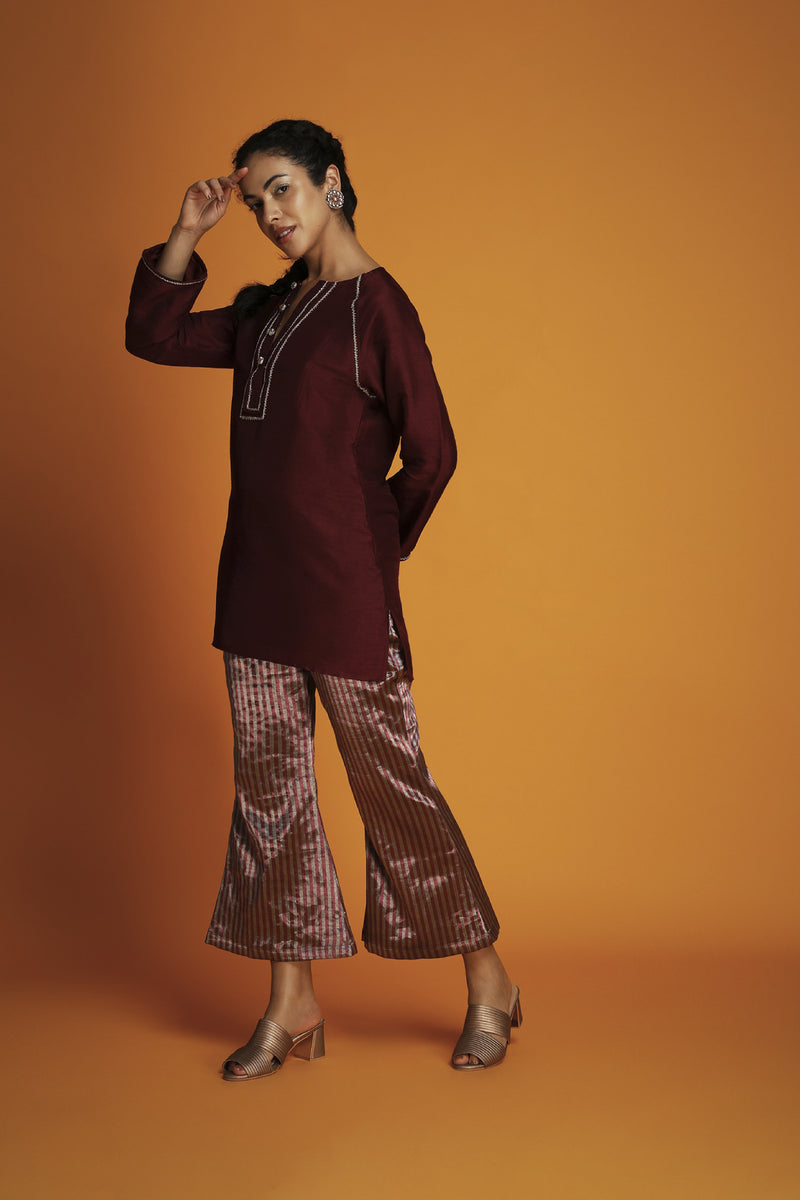 Choco-Natural Pure Silk & Cotton Silk Shirt Tunic
