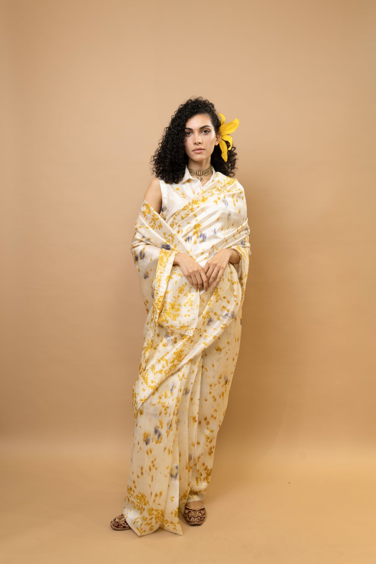 Ivory & Marigold Yellow Pure Silk Floral Printed