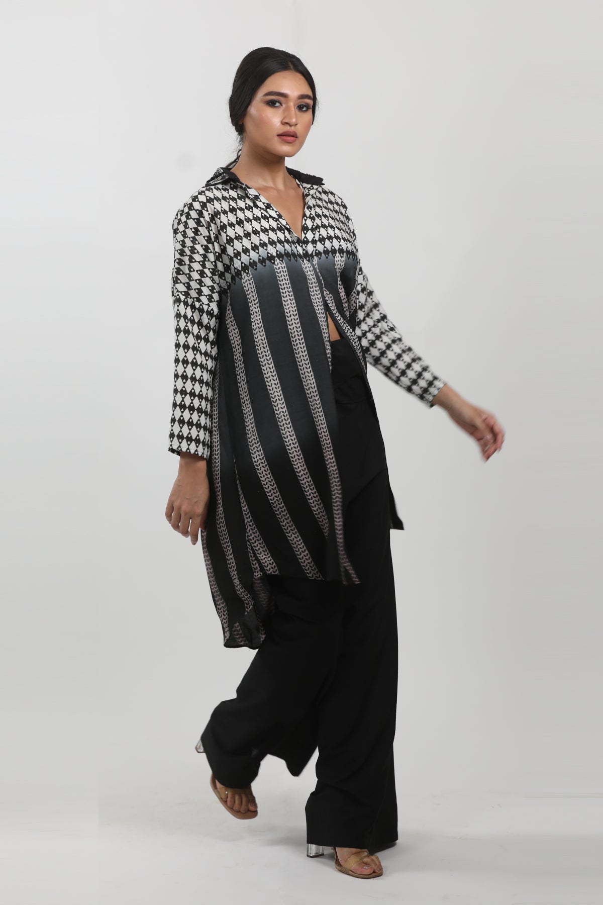 Black/White Shaded Block Printed & Embroidered Shirt Tunic