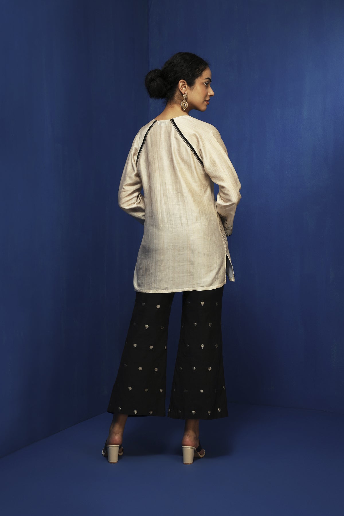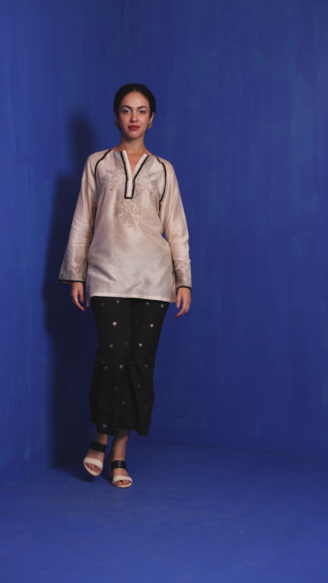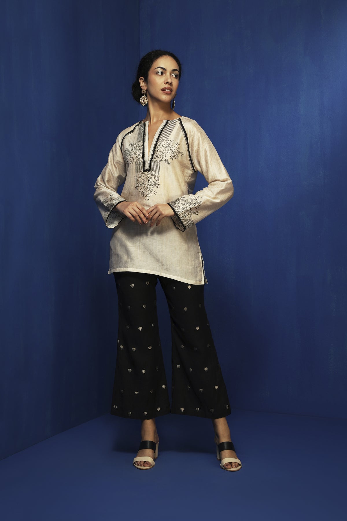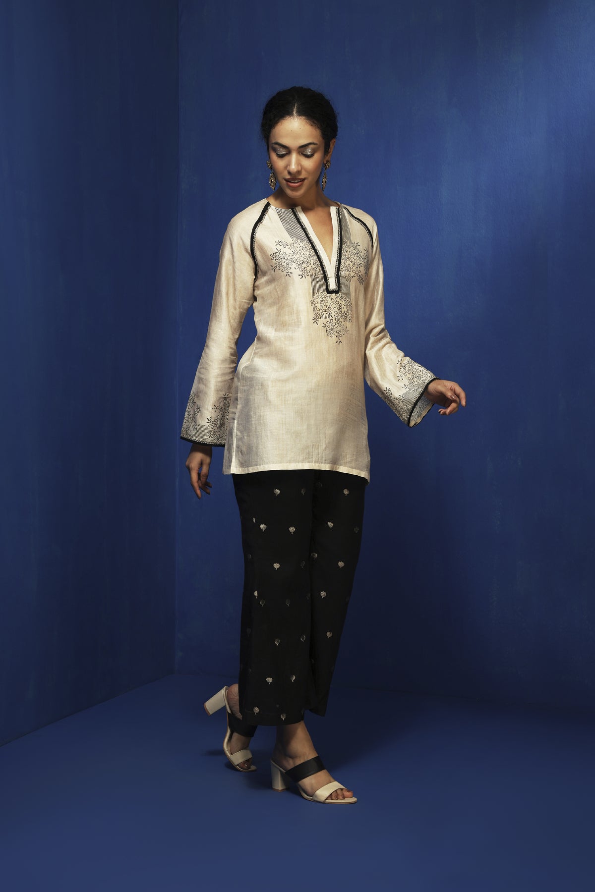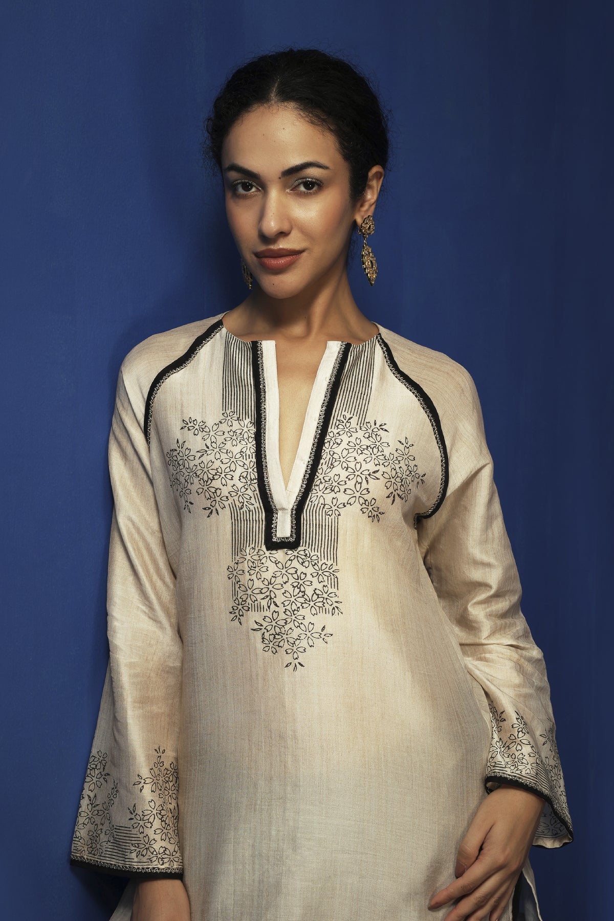 Ecru Cotton Viscose Handblock Printed & Zardosi Embellished Tunic