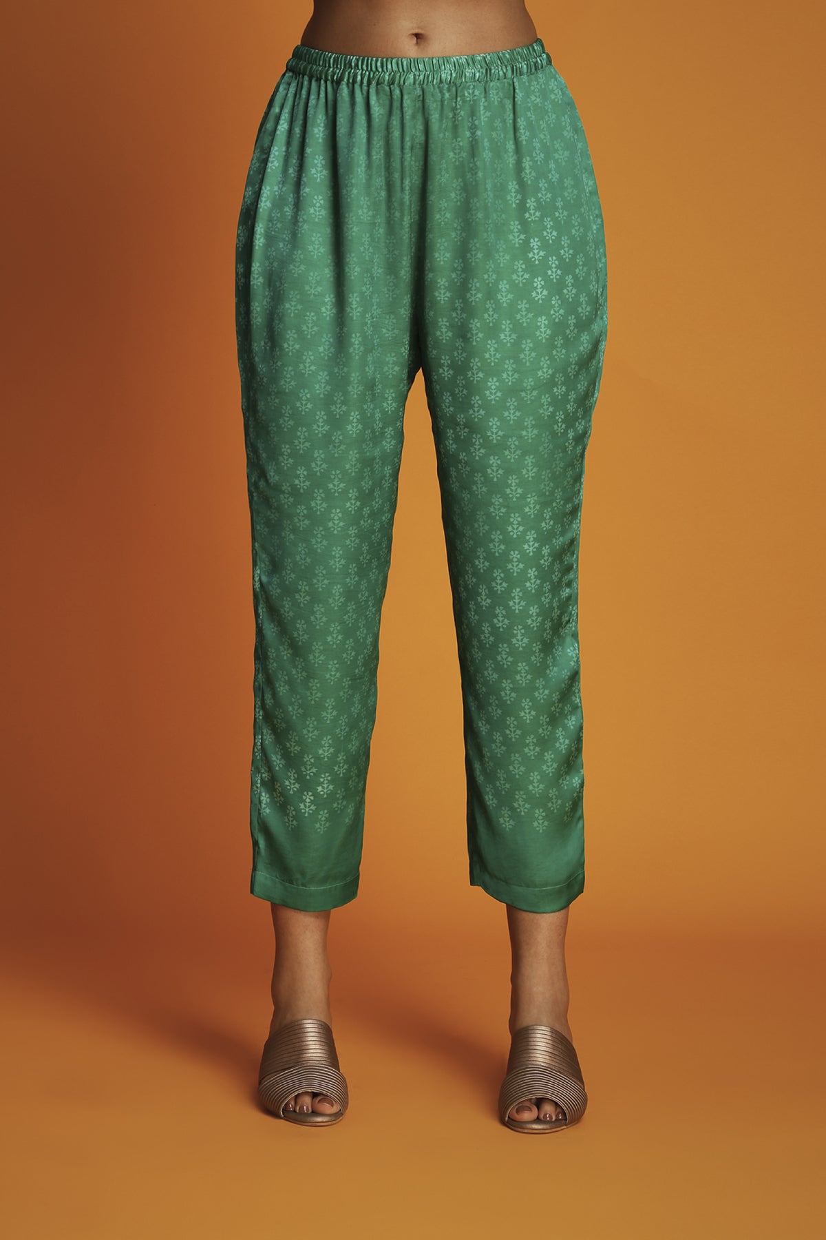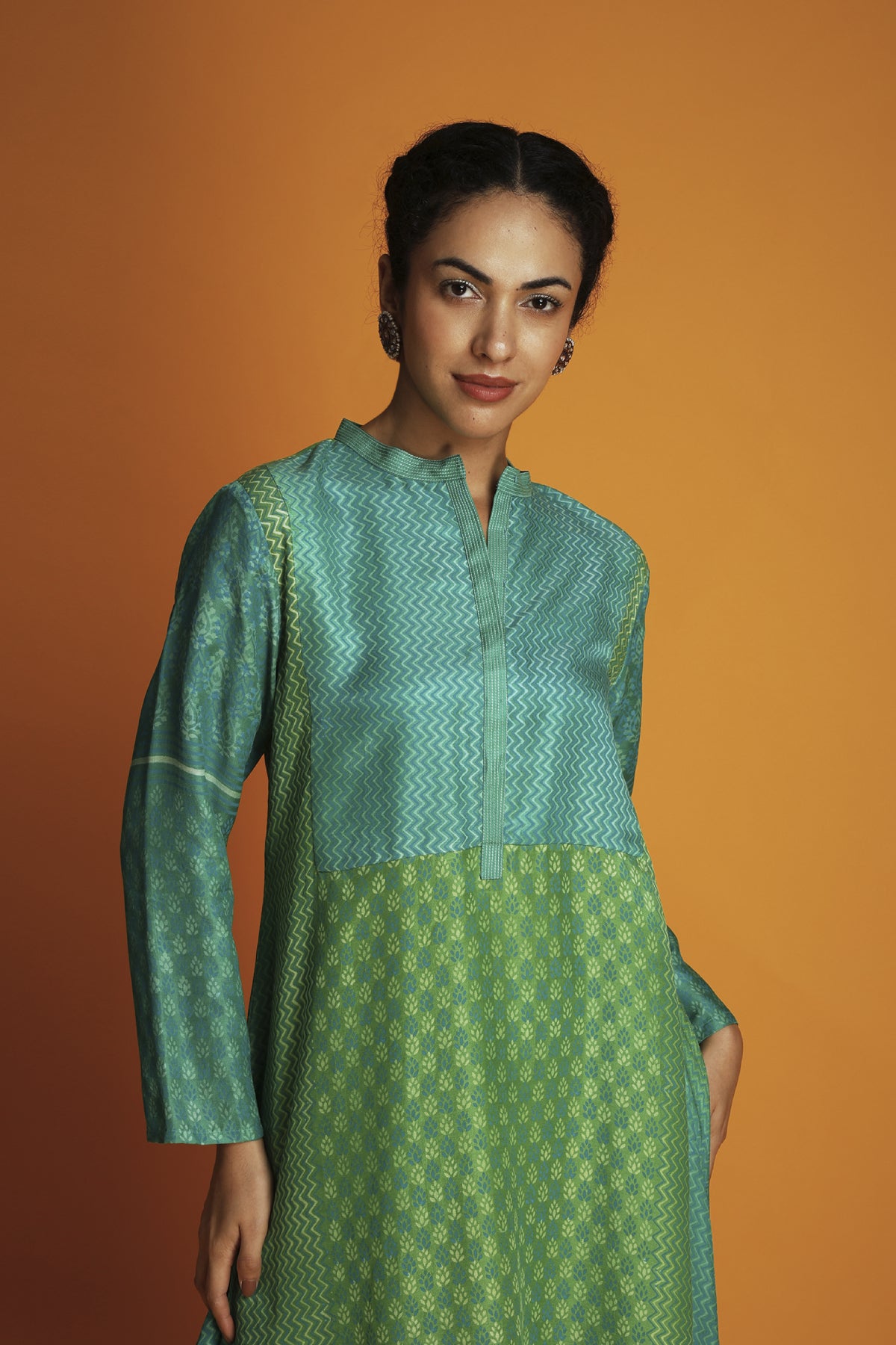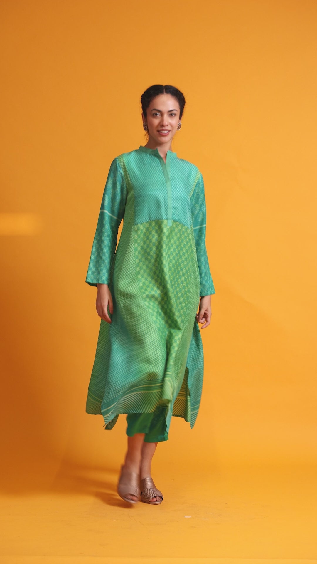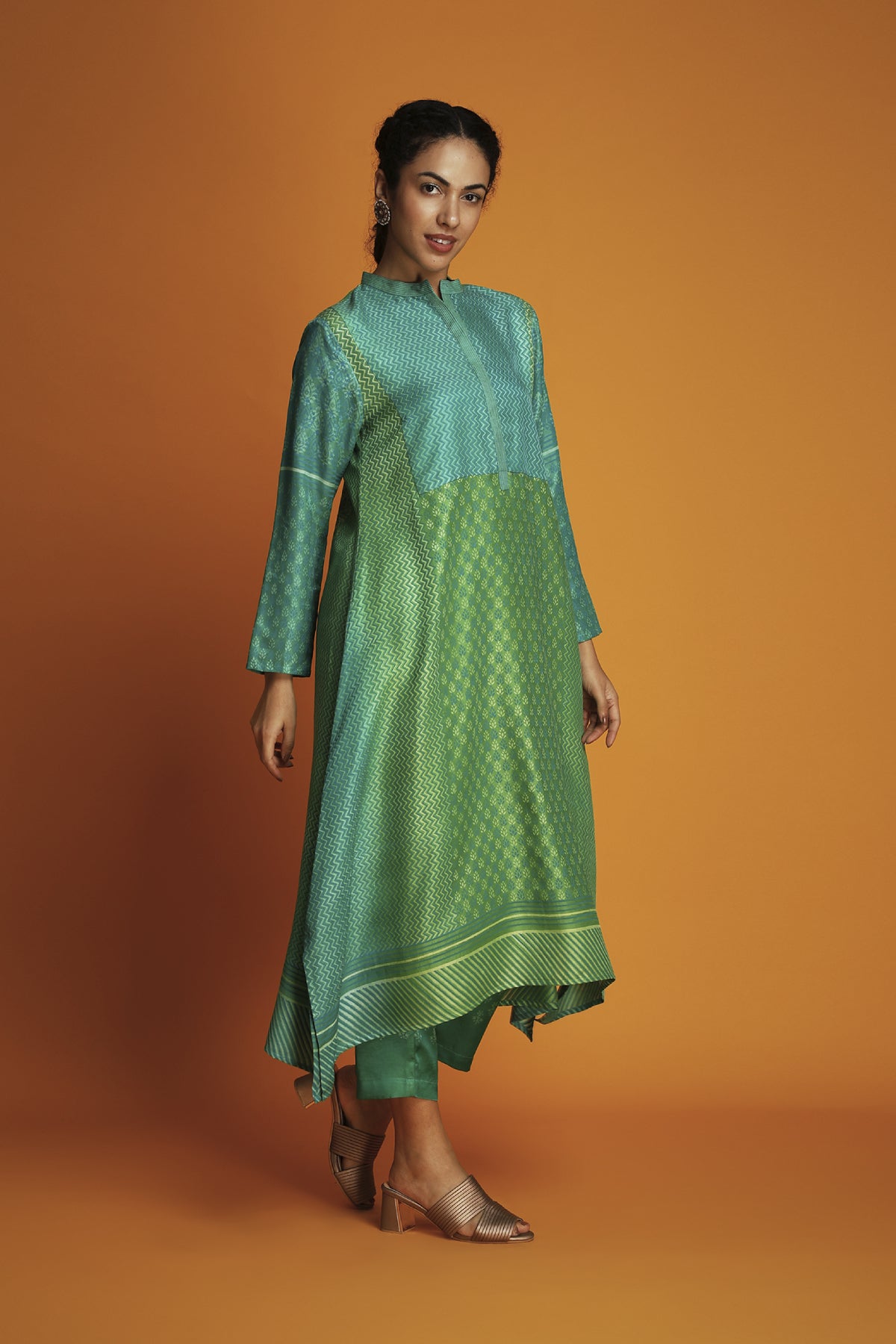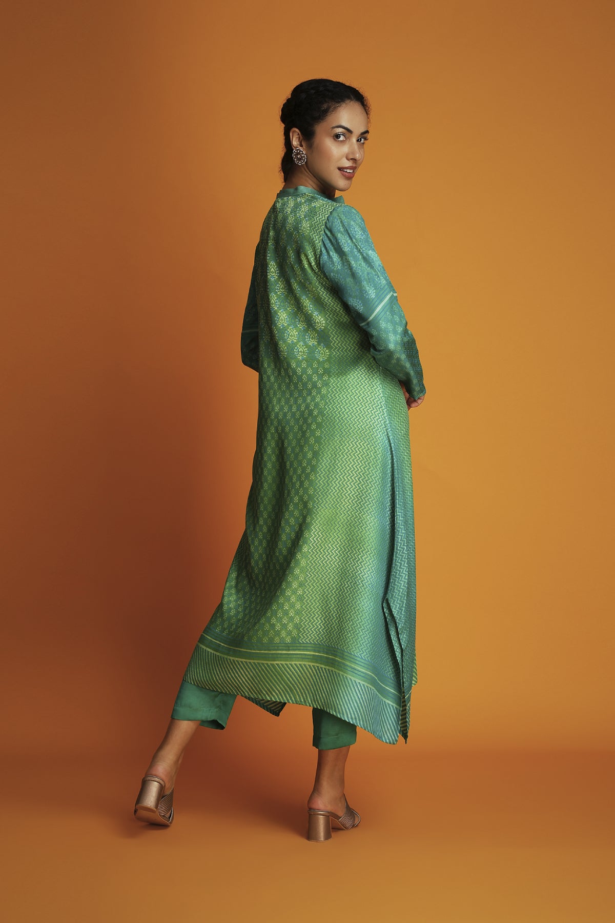 Green Ombre Modal Hand-Block Printed Asymmetric Tunic Set
