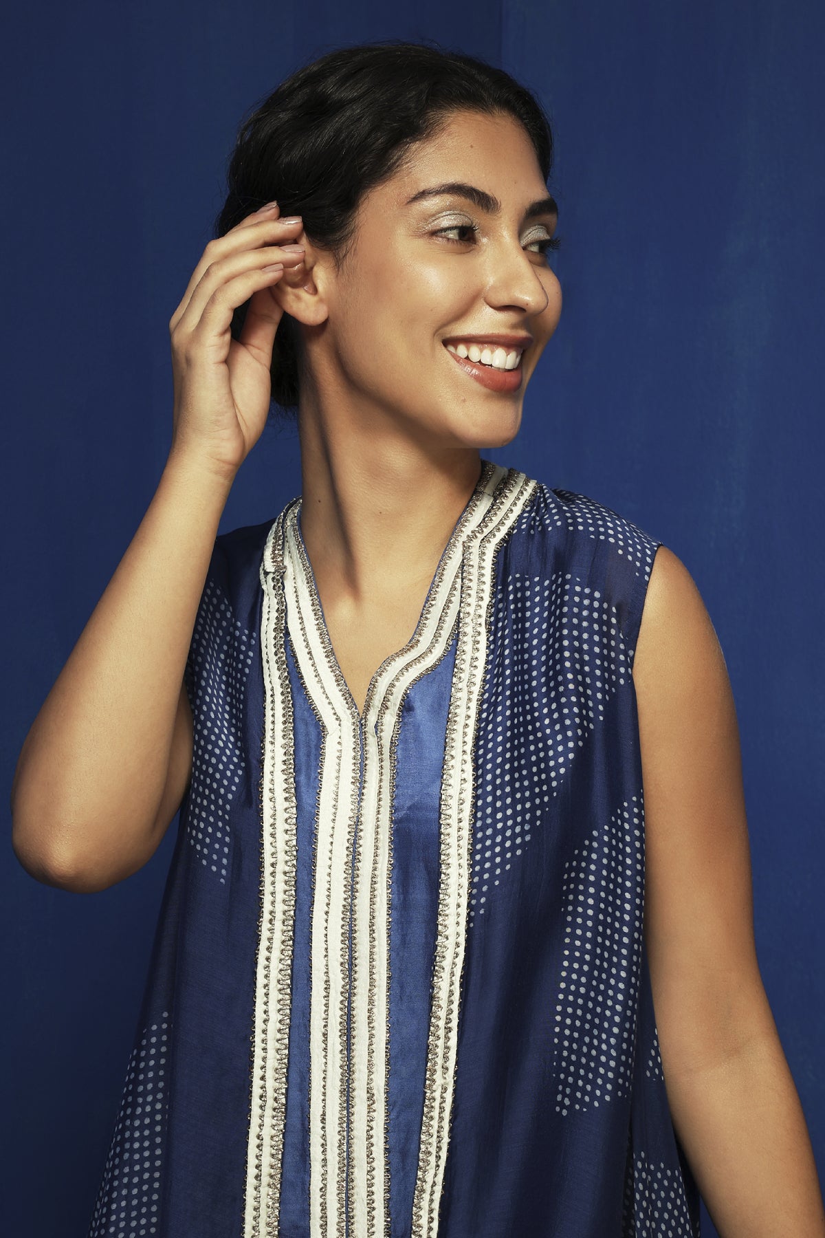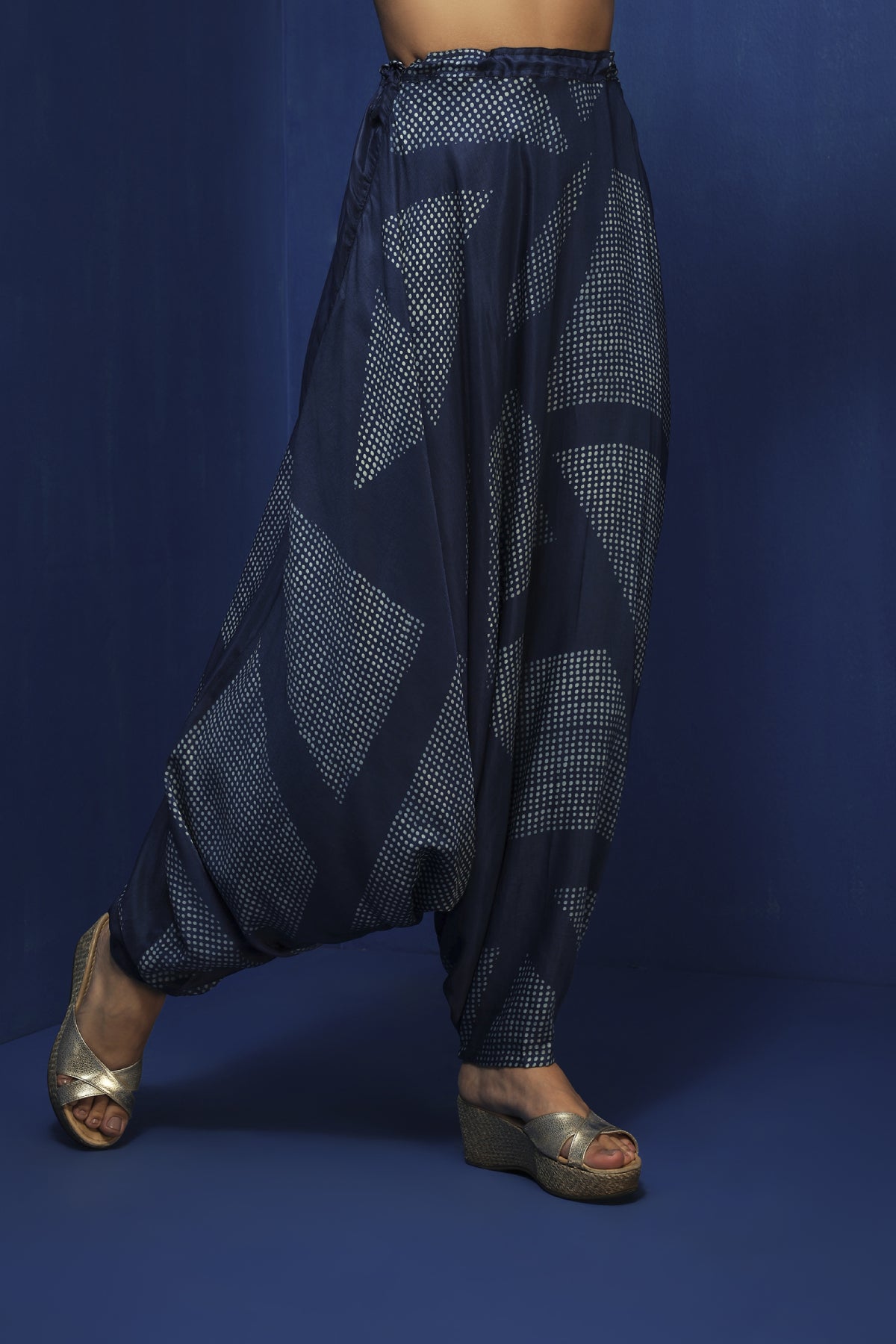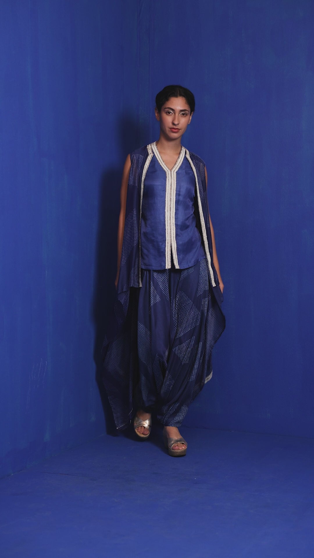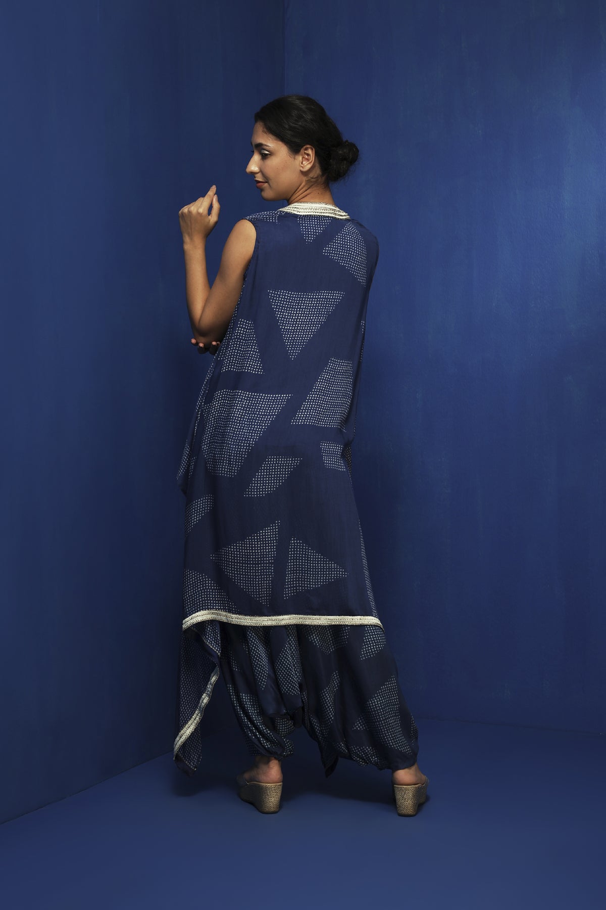 Indigo Chanderi Handblock Printed Asymmetric Cape Set